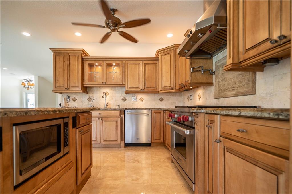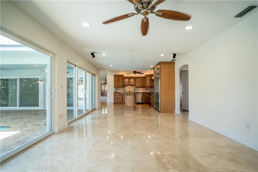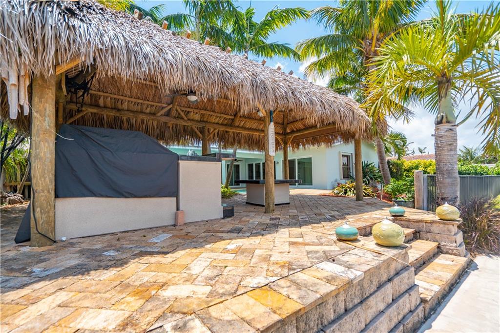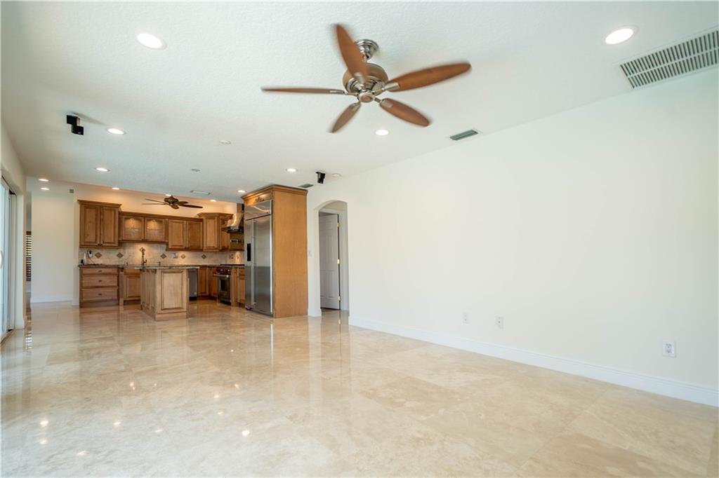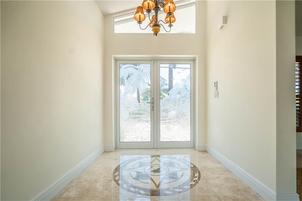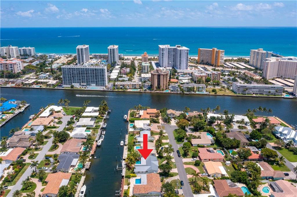 Beautifully remodeled waterfront home with private pool and dock. Choice location with 80 feet of waterfrontage, minutes to the Intracoastal and no fixed bridges. Open floor plan with volume ceilings, marble flooring, 3 split bedrooms and 2 baths. Great entertaining home, walls of glass looking out to the sparkling pool and canal views. Kitchen features a large island, granite countertops, wood cabinetry, stainless steel appliances and a Chef's gas stove. Kitchen is open to the living and family rooms. Master bedroom features walk-in closet and bamboo flooring. Newer dock, seawall and 16,000lb boat lift. 2-car garage plus circular driveway.