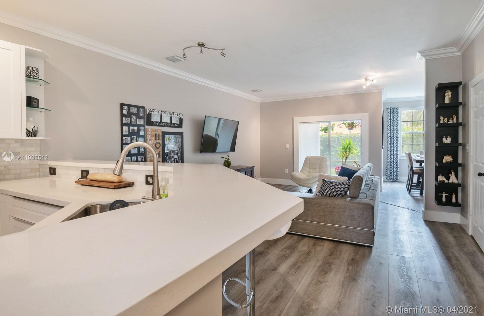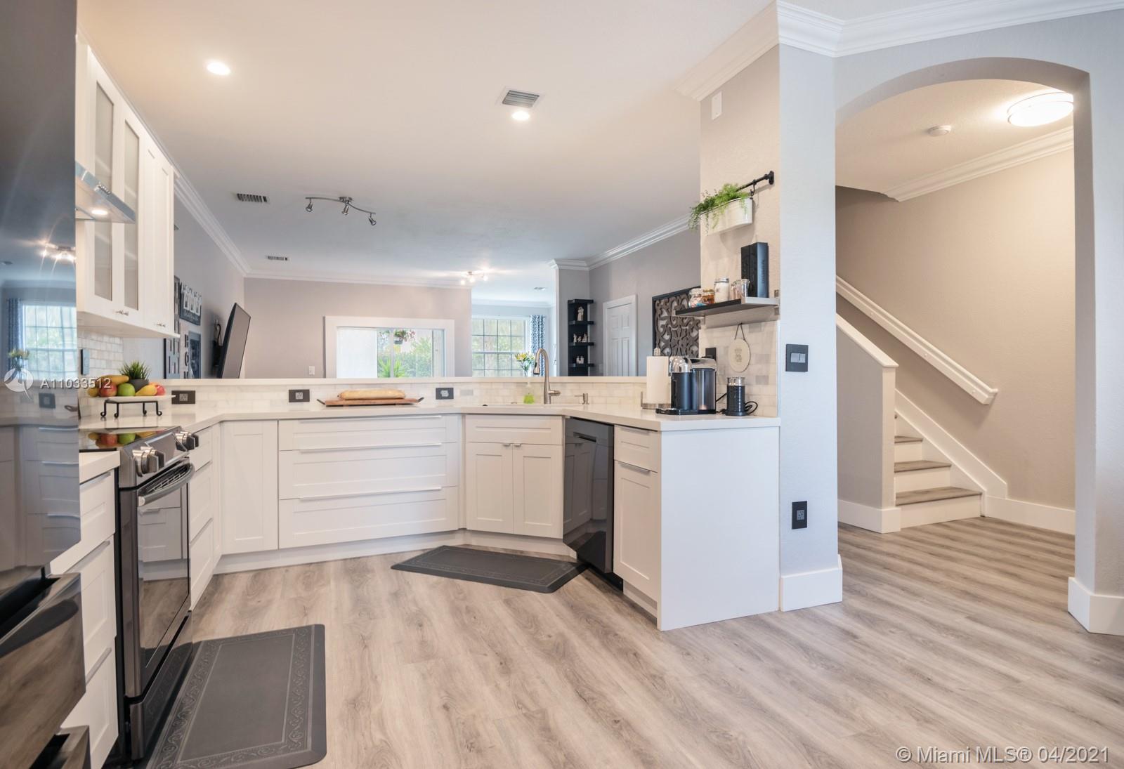 Tastefully & thoughtfully remodeled townhome 'with a garage' that feels like a single family home! Light, Bright, Oversized, Open Kitchen is the center of the home! Gorgeous white quartz kitchen counters, shaker-style white wood cabinets & oversized drawers complimented with marble tile backsplash throughout the kitchen. Samsung black SS appliances & hood, plus wine refrigerator. 3 bedrooms, 2 1/2 bathrooms, plenty of room for everyone upstairs plus a bonus loft/nook at the landing. Wood look tile floors throughout & on stairs, new carpet in bedrooms. Beautiful custom main bedroom closet! Screened-in patio area with access to common area grass - perfect for pets. 24-hour guard-manned community. Amenities include tennis, fitness center, pool, parks, clubhouse, to name a few. Move-In ready!