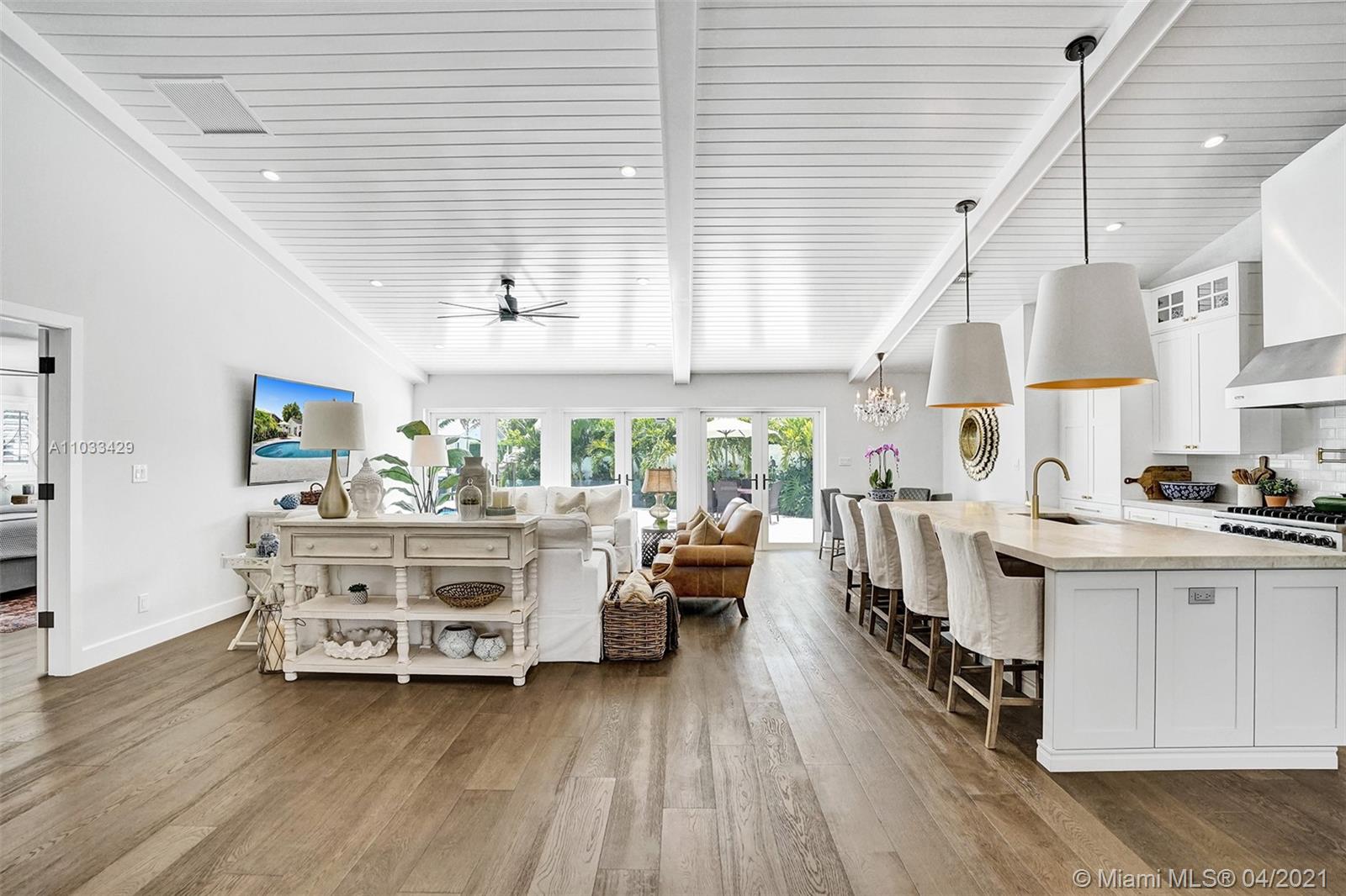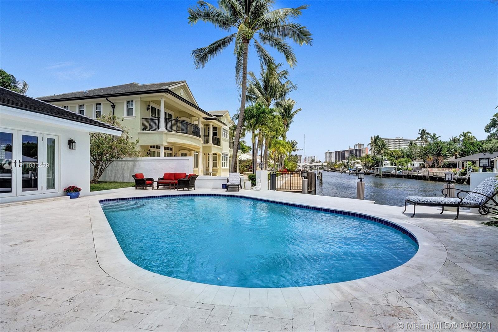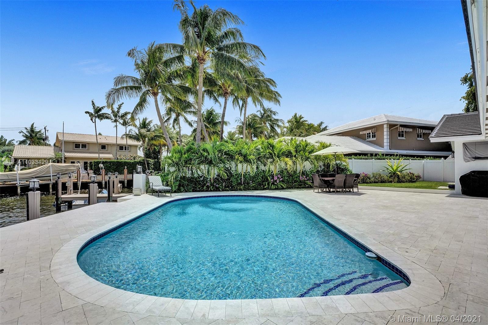 Completely remodeled single family residence with split bedroom plan. A true entertainer's dream home on deep water. Enjoy gorgeous sunrises and water views with your view straight down the canal to the ICW! Chef's Kitchen includes Viking stainless steel appliances. New vaulted ceilings with tongue and groove, impact windows and doors throughout, new impact garage door, new upgraded flat-tile roof, new marble circular driveway, remodeled pool, new marble pool deck, new dock and new two zone Trane AC units. Expansive master suite features two walk-in closets and spa-like bath with dual vanities, free-standing tub and double shower. New electrical and plumbing upgrades. 8 inch wide plank european white oak wood floors throughout and marble baths. Nice oversized private lot (12,346 sq ft).