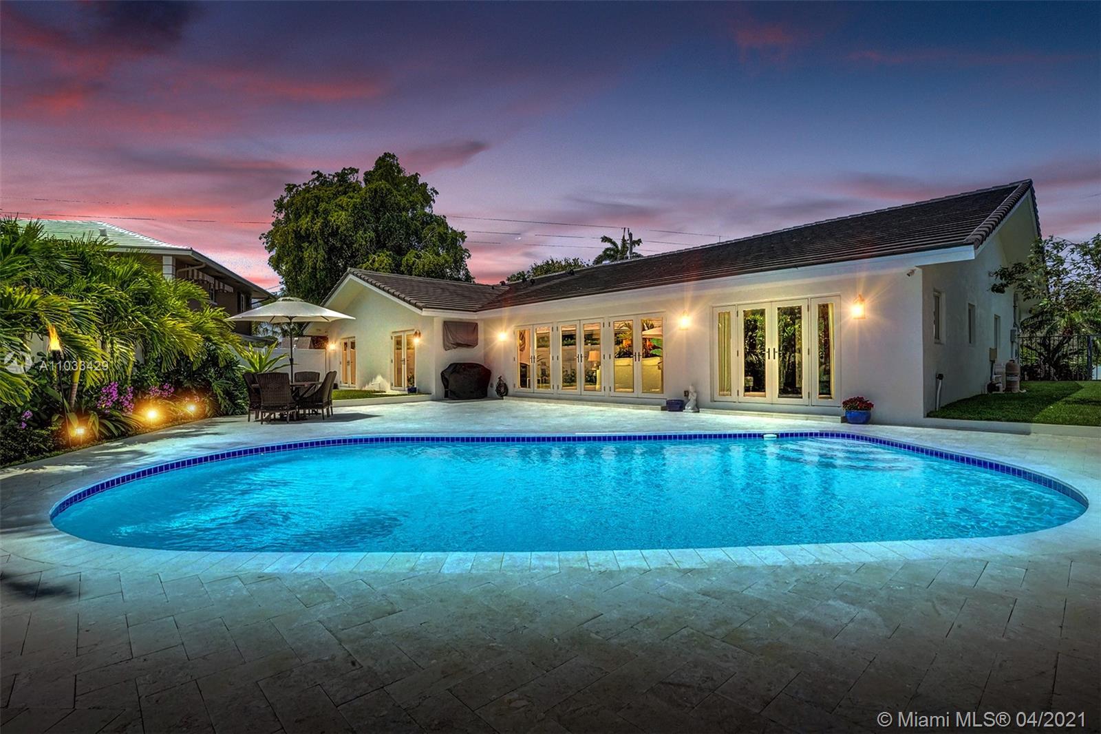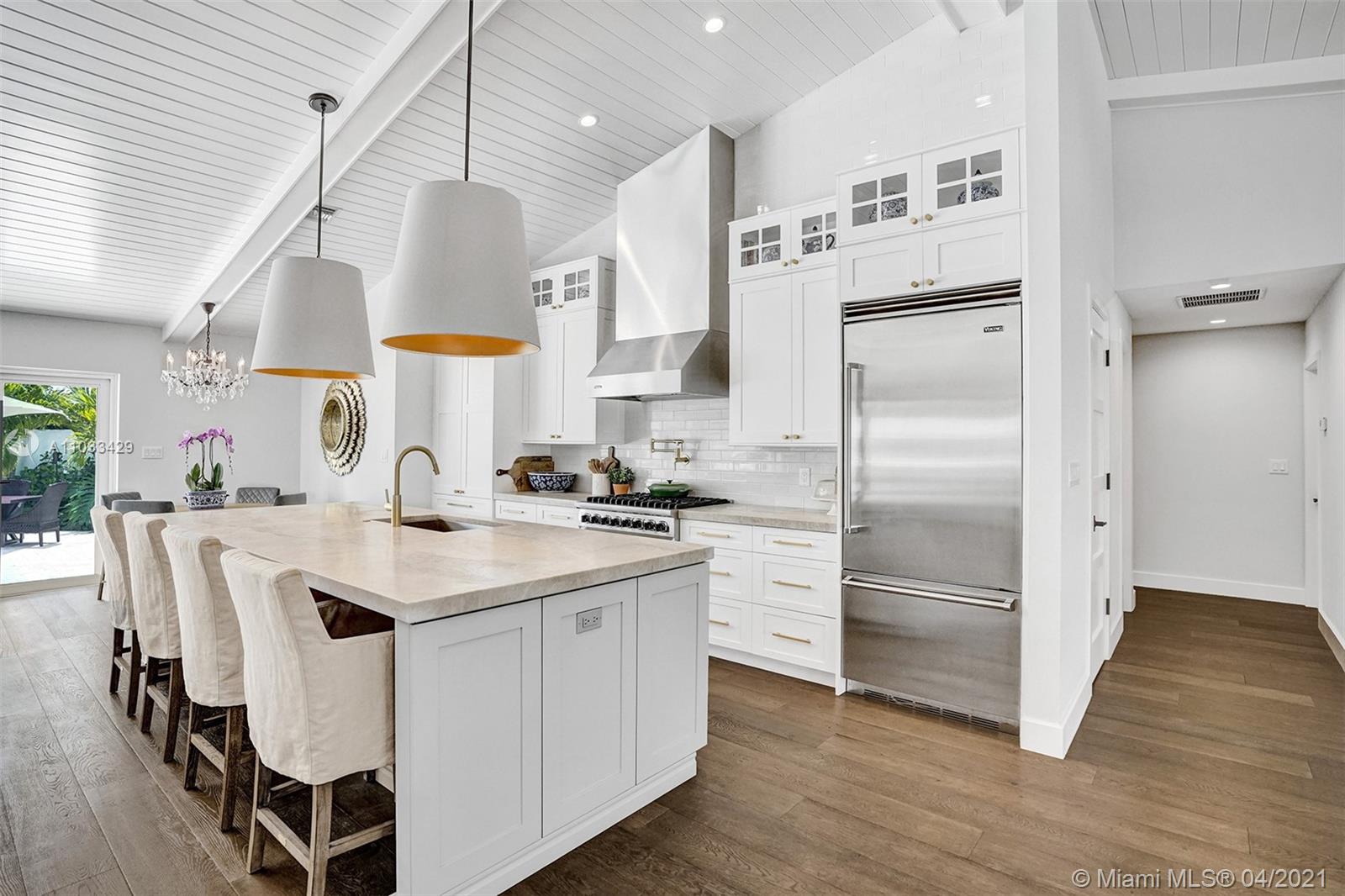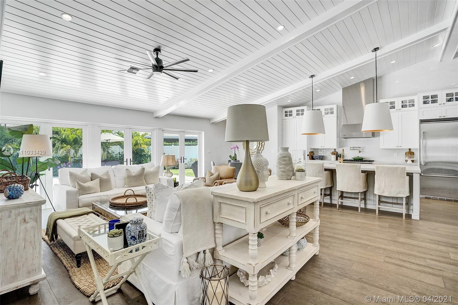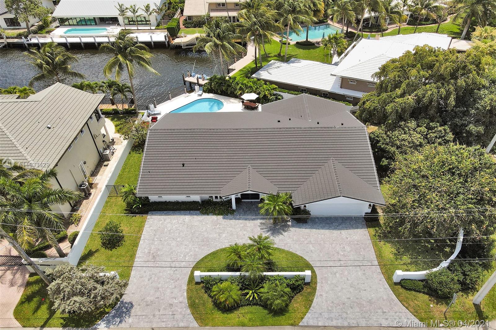 Completely remodeled single family residence with split bedroom plan. A true entertainer's dream home on deep water. Enjoy gorgeous sunrises and water views with your view straight down the canal to the ICW! Chef's Kitchen includes Viking stainless steel appliances. New vaulted ceilings with tongue and groove, impact windows and doors throughout, new impact garage door, new upgraded flat-tile roof, new marble circular driveway, remodeled pool, new marble pool deck, new dock and new two zone Trane AC units. Expansive master suite features two walk-in closets and spa-like bath with dual vanities, free-standing tub and double shower. New electrical and plumbing upgrades. 8 inch wide plank european white oak wood floors throughout and marble baths. Nice oversized private lot (12,346 sq ft).