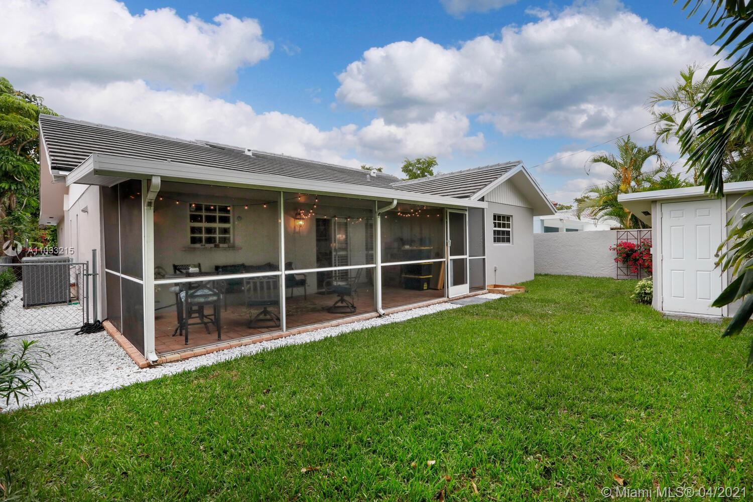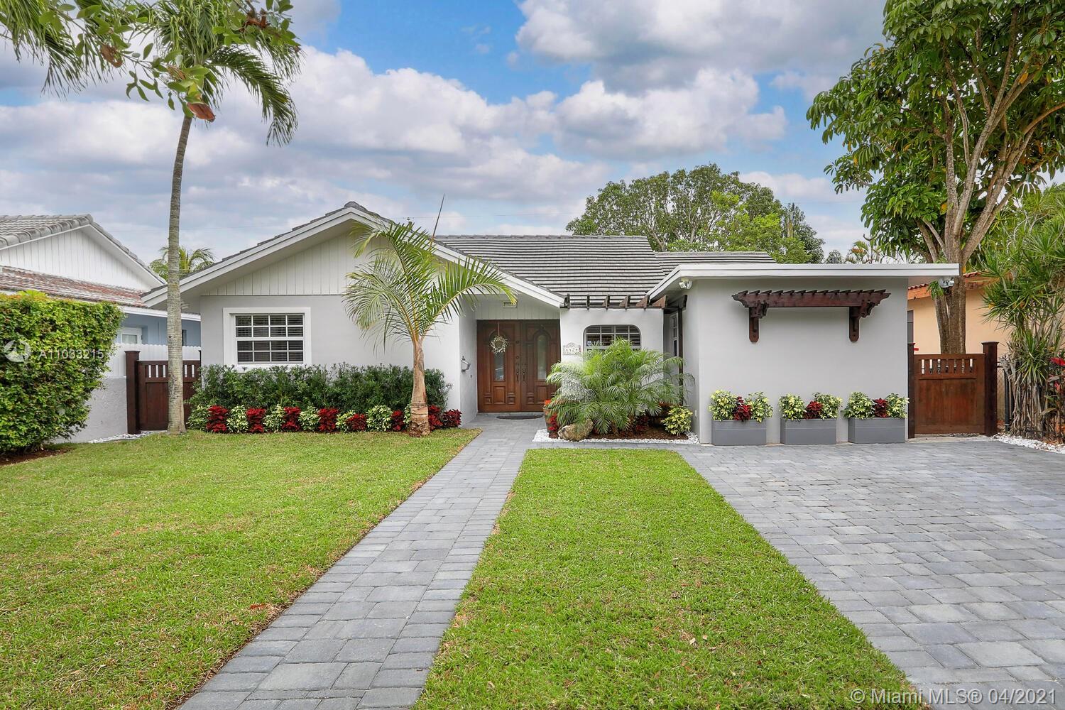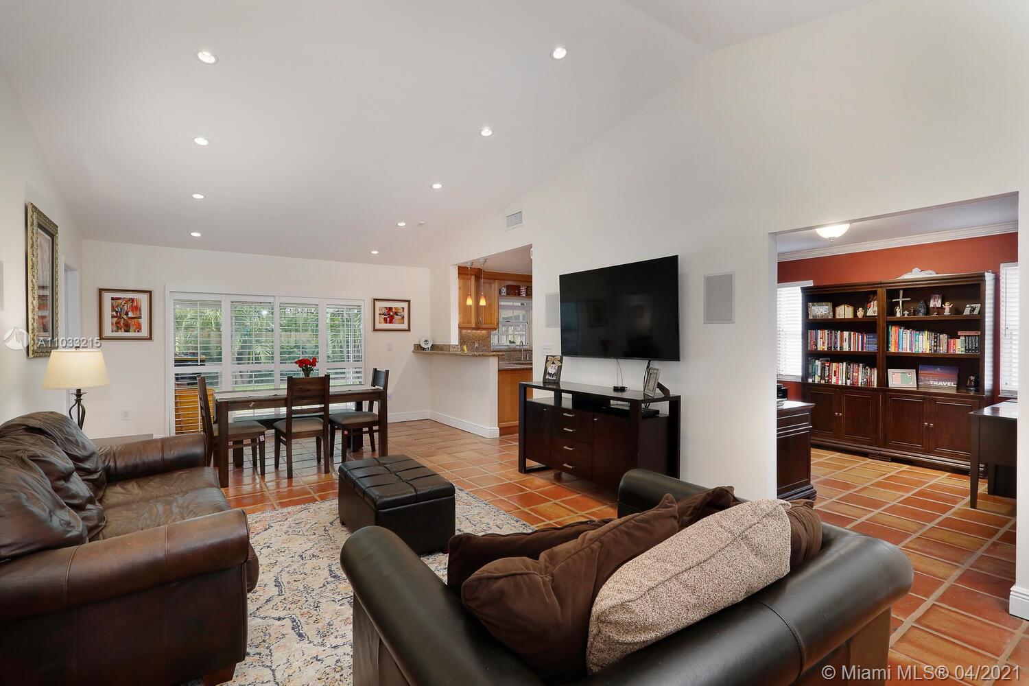 Lovely “Little Gables” home on a quiet tree-lined street & ideally located just minutes to world-class shopping & dining on Miracle Mile, Miami International Airport, Downtown/Brickell, Key Biscayne and the Beaches. Light-filled, open living spaces feature vaulted ceilings, tile flooring & plantation shutters throughout. Updates include renovated baths, 2 yr old roof & new HVAC. Custom kitchen with wood cabinetry, granite countertops, stainless appliances & a breakfast bar. 4 BR’s/ 3 BA’s + den/office & laundry room. Detached CBS shed w/electric. Enjoy outdoor living & entertaining on the large screened porch overlooking the garden with potential to add a pool. Located in the highly rated Coral Gables Preparatory Academy school district.