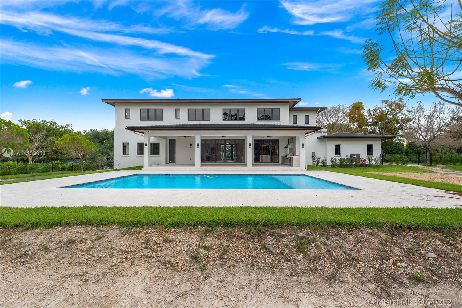 Brand new construction(To be completed Mid-June). Distinctive & stunning Plantation style custom home on builder's acre sits on high ridge, gated estate w/modern & sleek open floor plan. Formal living & dining rooms! Imposing entry! Hi-volume ceilings, designer porcelain flooring, detailed finest finishes throughout. Gourmet dream kitchen w/ double islands, top-of-line appliances. built-in Bar, split large guest quarter, elevator, hi-impact glass and doors! Additional media/library. Lavish master suite with luxurious & gorgeous bath, huge walk-in closet & sitting room. All large ensuite bedrooms. Two utility rooms for both up and downstairs, Large roofed patio w/built-in summer kitchen. Sparkling saline pool! Extras! Excellent Pinecrest schools! Fabulous! See Broker's remark for showings.