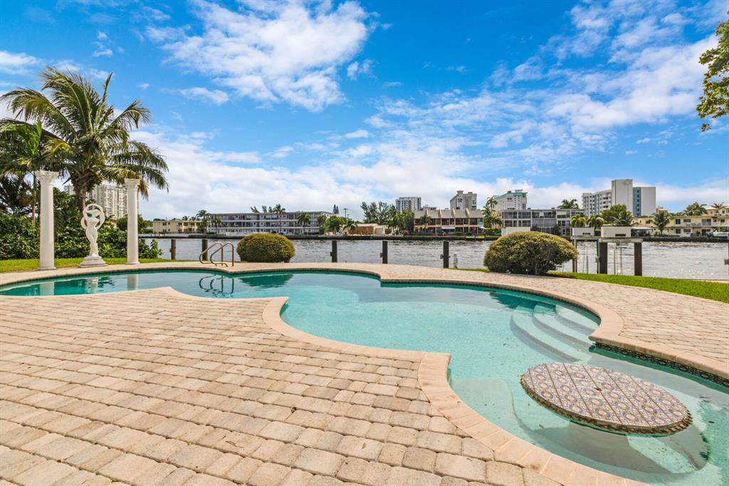 131' DIRECTLY ON THE INTRACOASTAL WATERWAY. OVERSIZED LOT ON COVETED SE 28TH AVE -- 40k# BOAT LIFT-- gorgeous views from almost every room. Gracious home/Estate Size Lot. Vaulted ceilings, kitchen eating area w/glass slider wall to the pool & I/C. Summer Kitchen/BBQ covered area, huge pool, private yard, gated drive, TWO CAR GARAGE. Premium furnishings. Private master suite w/balcony upstairs, 2nd master down, 3rd bedroom w/bath and 4th bedroom can be den/office/tv room. The 4th bedroom/den/office is located at the front of the home right by the foyer/front door entrance & restroom if clients visit. Spectacular living on the Water. Walk to the beach, nightlife, clubs, shopping & dining. COMPLETE PRIVACY inside this luxurious gated home in multi-million $ upscale neighborhood. Pompano is