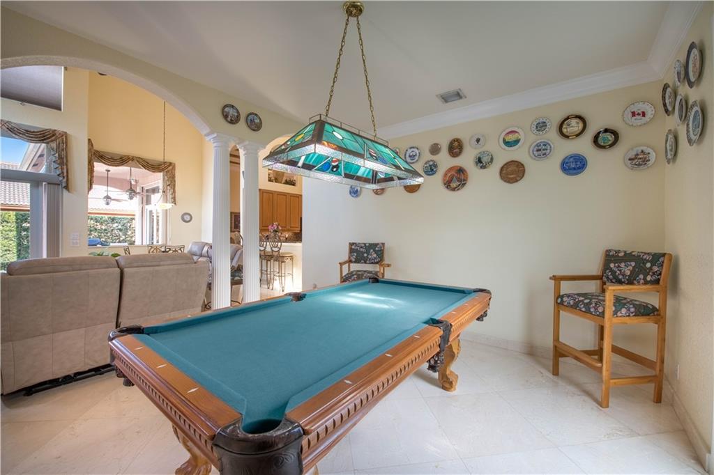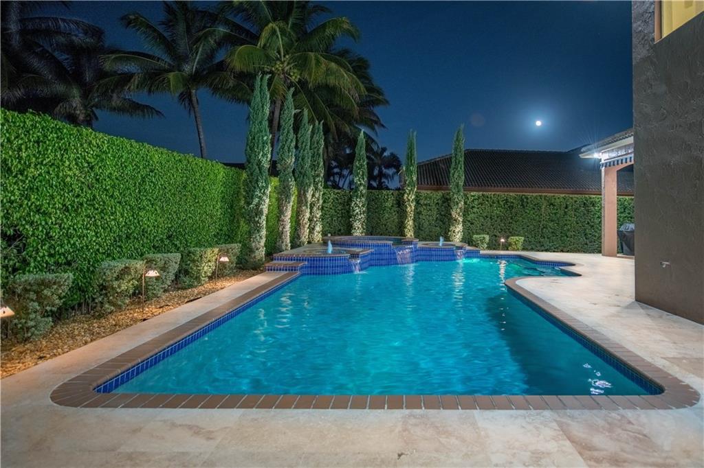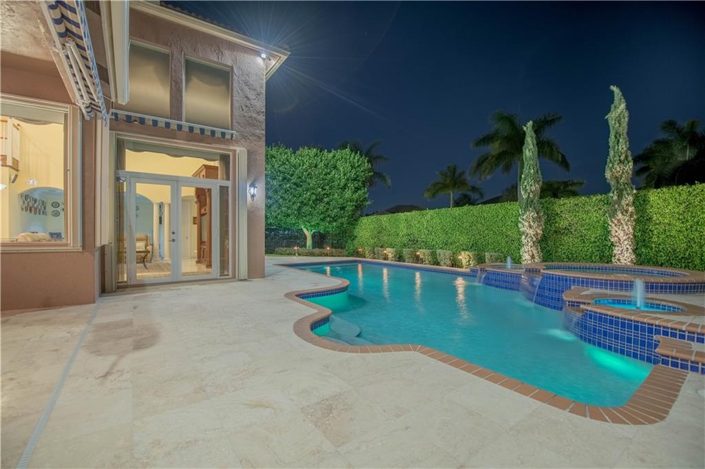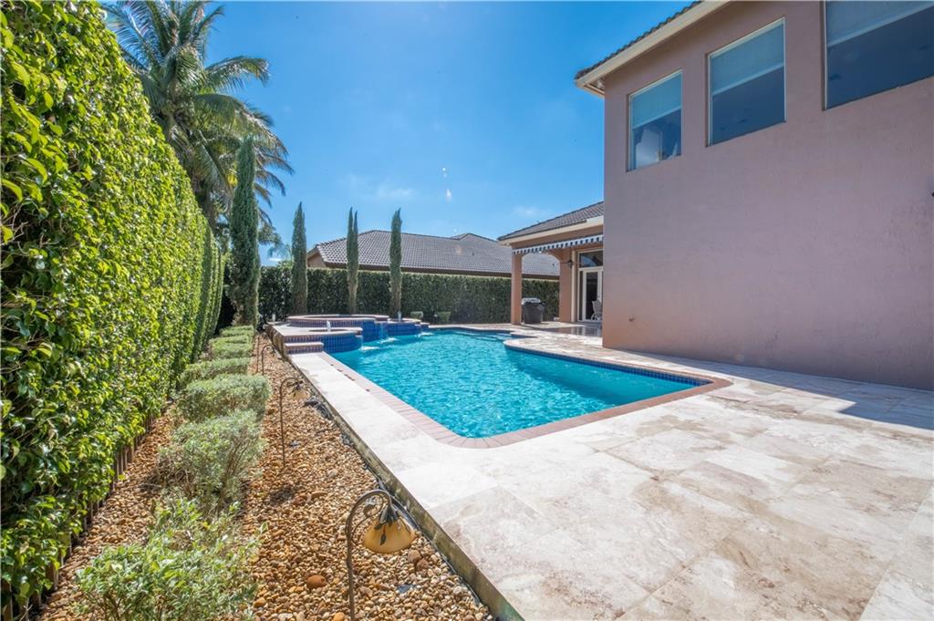 Stunning 6 BR / 5 bathrooms semi-custom, one of a kind, home in oversized corner lot with oversized 32x22 custom heated pool and spa. Beautiful 24" x 24" diamond set crema marfil marble throughout the 1st floor common area and in the master bathroom. 3 bedrooms, including the master bedroom suite, on 1st floor. Separate dedicated in-law quarters or office wing with it's own full bathroom and independent entrance and A/C. 3 car oversized garage. All solid wood custom kitchen cabinets with pullout drawers, granite counter tops ,SS appliances and huge pantry. Impact windows and accordion shutters, generator with electrical panel connection