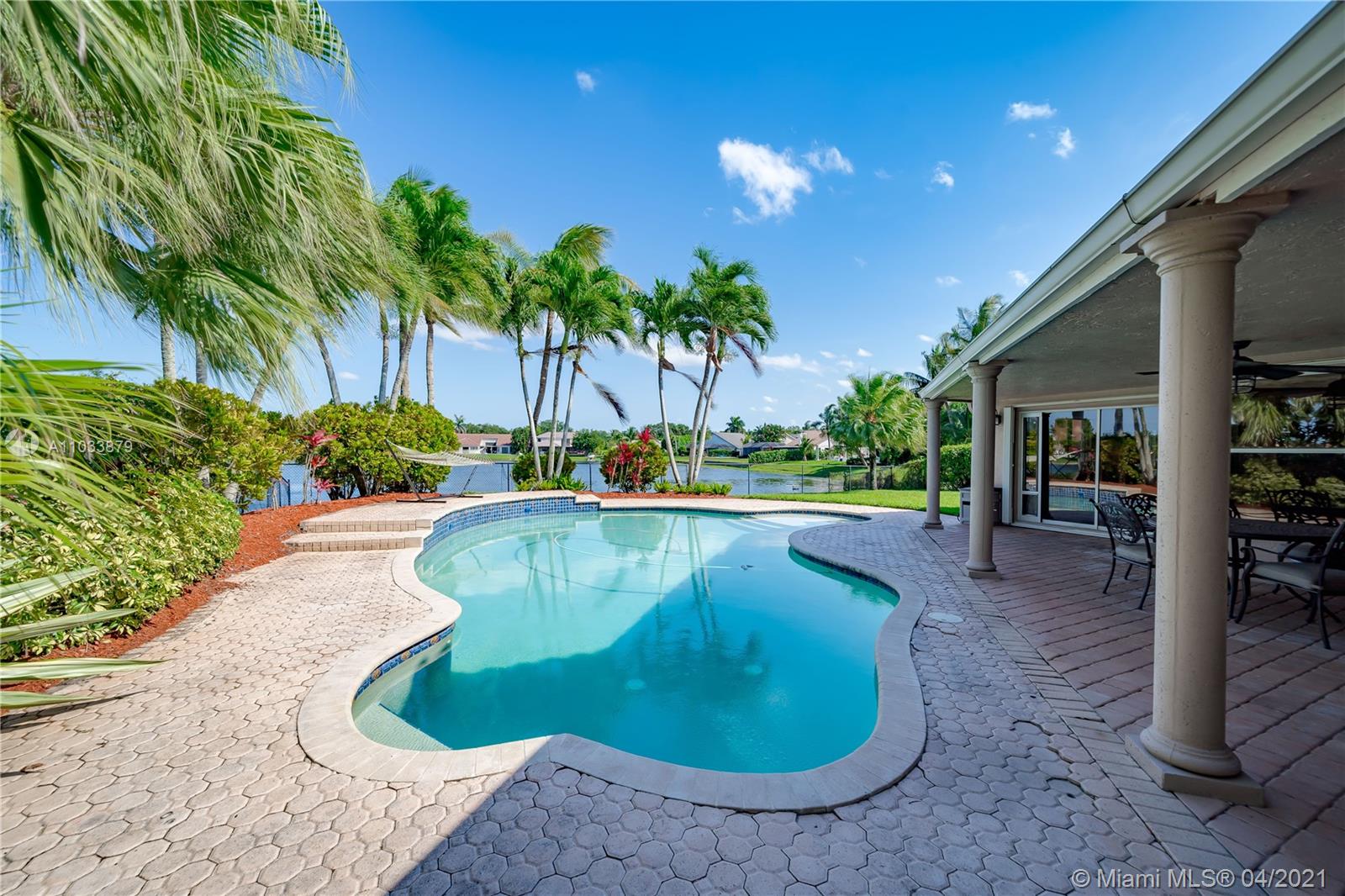 One of the largest homes and lots in Forest Ridge! This 5/3 estate boasts over 2,900 sqft of inviting spaces w/ soaring ceilings & tons of natural light. As you walk into the home, your eyes are drawn to the sparkling lake & heated saltwater pool. This home features a spacious master suite w/tres ceilings, plantation shutters, walk in closets & fully renovated spa like bathroom w/free standing tub, oversized shower, & private water closet. Endless entertaining possibilities w/an open kitchen, ample cabinet & counter space overlooking the large family room. All bedrooms have a stunning porcelain wood tile. Both secondary bathrooms have been tastefully remodeled. Roof is 2017 and AC is 2019! 5th bedroom is currently being used as an office. Home has full hurricane protection! A rated schools