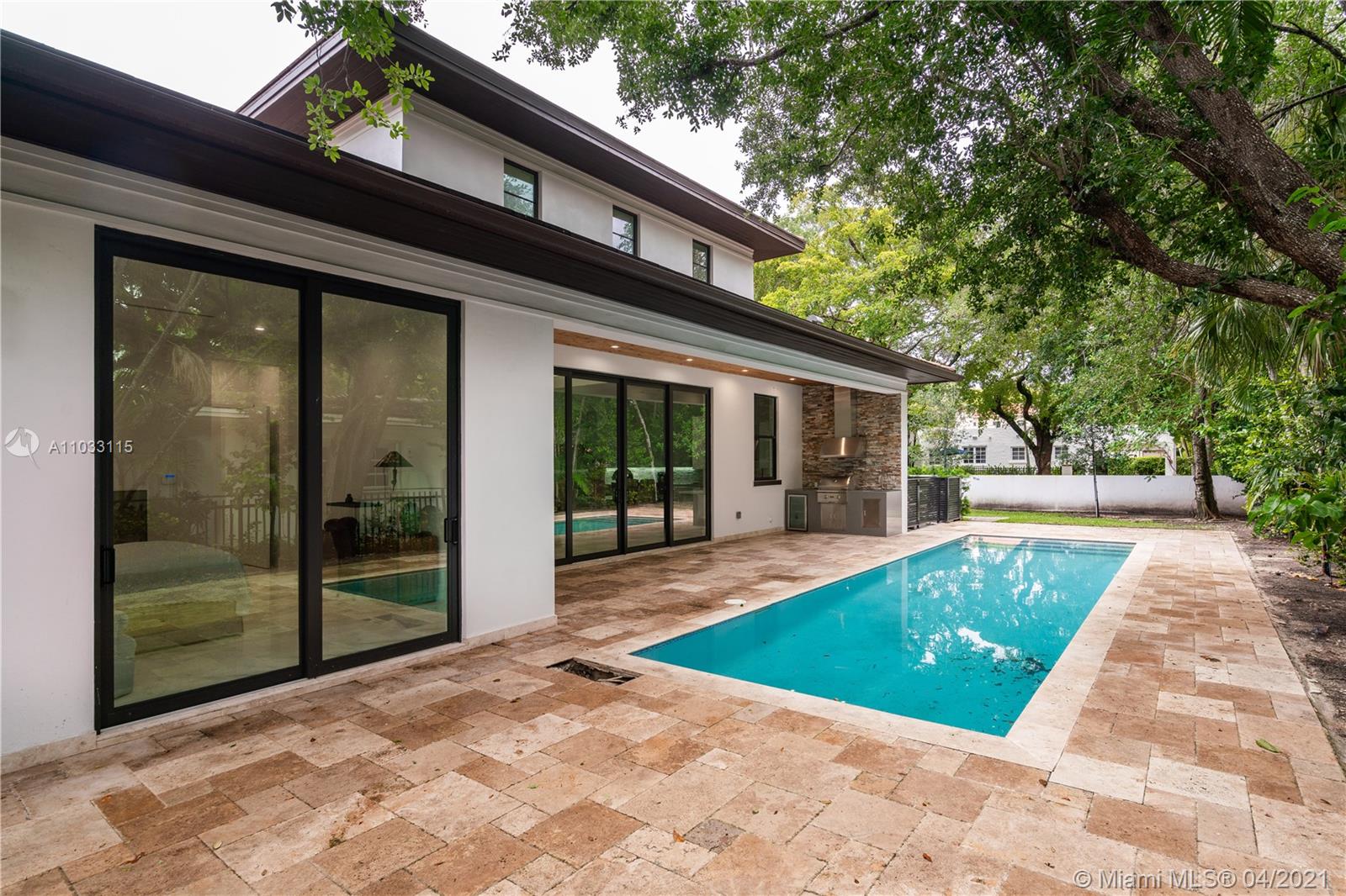 4 bedroom/4 ½ bath with great curb appeal, a summer kitchen, pool and 2 car garage in a great Coral Gables location.