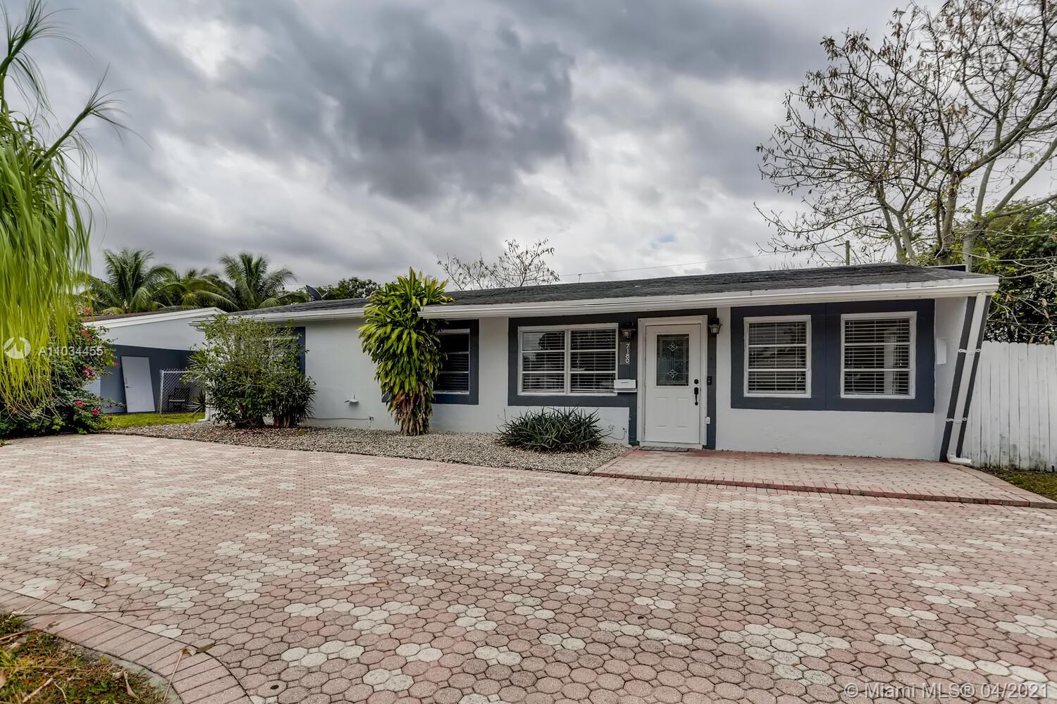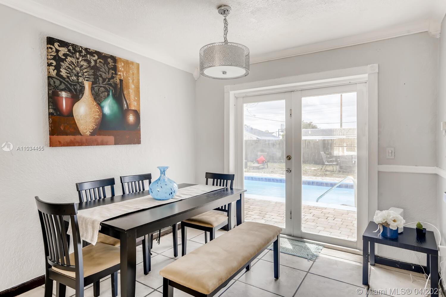 Lovely 4 bd / 2 ba home with a spacious pool backyard, chef’s kitchen, and open layout! There is a bonus room with a closet that could serve as a 4th bedroom. A curved paver driveway leads to the front of the home, where you’re met with an inviting porch - the perfect spot to enjoy your morning cup of coffee. Upon entrance, notice the bright and airy interior, complete with tile flooring and crown molding. Watch TV in the living room, and enjoy a meal with guests in the dining room that overlooks the pool through French doors. To the side, cook in the gorgeous kitchen, equipped with granite countertops, stainless steel appliances, wood cabinetry, bar seating, and a convenient laundry area. Wind down in the primary suite, which has sliding glass doors to the backyard, and a mirrored closet.