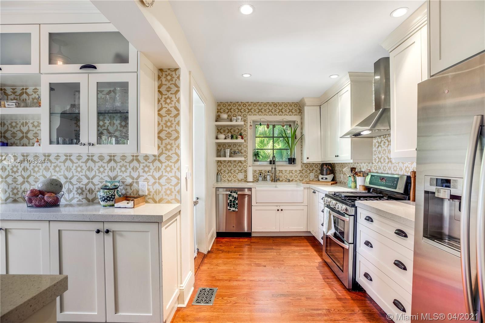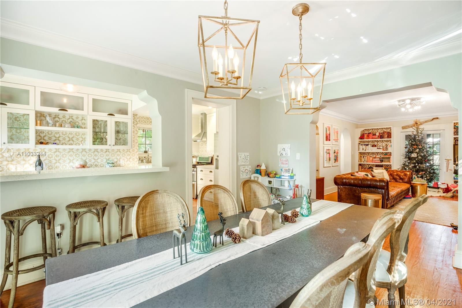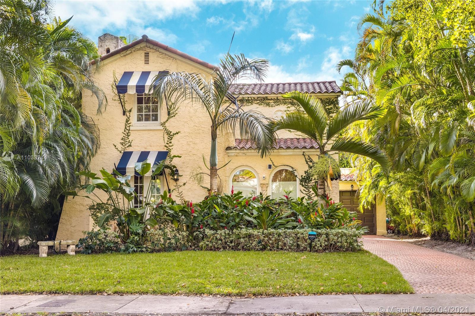 Stop looking right now! This is the house you have been waiting for! In the heart of Coral Gables this Old Spanish Two Story home was designed by H. George Fink himself. Beautiful moldings and updated features such as bathroom and kitchen. Kitchen is updated with beautiful countertops with bar height seating. There is also a detached garage that is being used as a "man cave/she-shed". There are two chandeliers indicated by seller that do not come with the property. If you think the pictures look good just wait until you see it in person!! Showings start Friday (4/30) at 1pm. Open house Saturday (5/1) 1-4 and Sunday (5/2) 1-4.