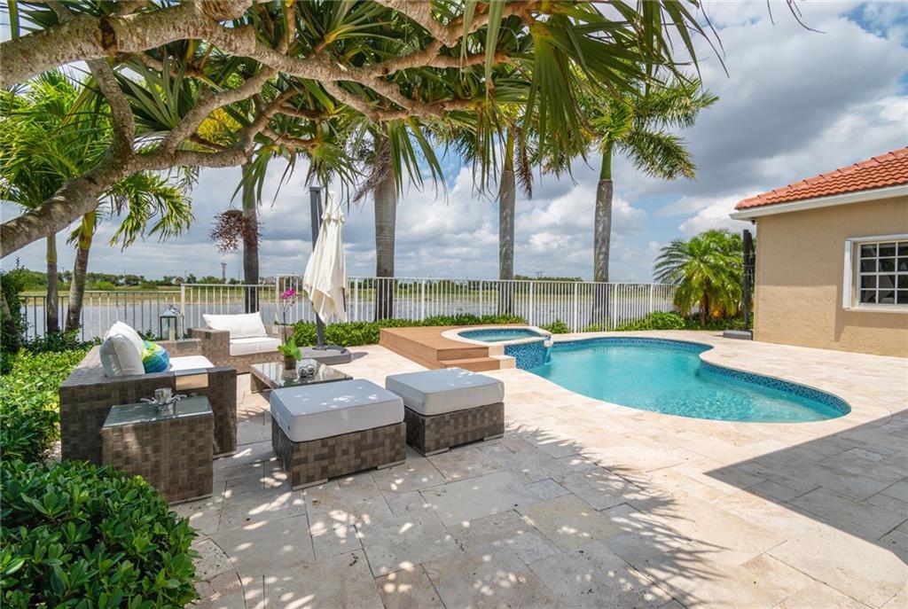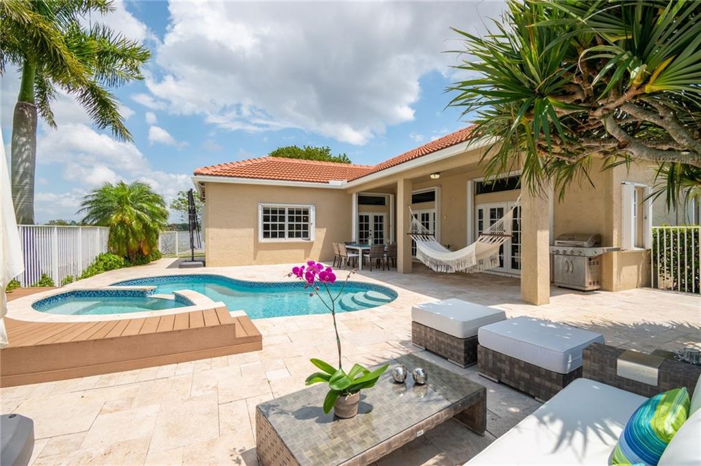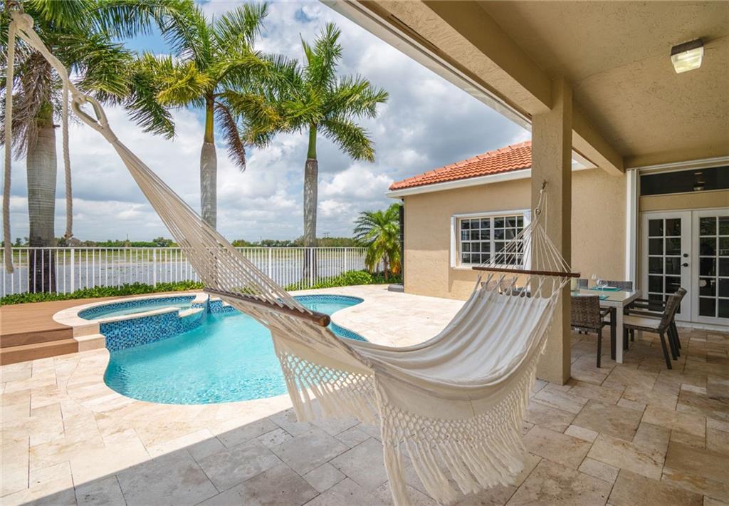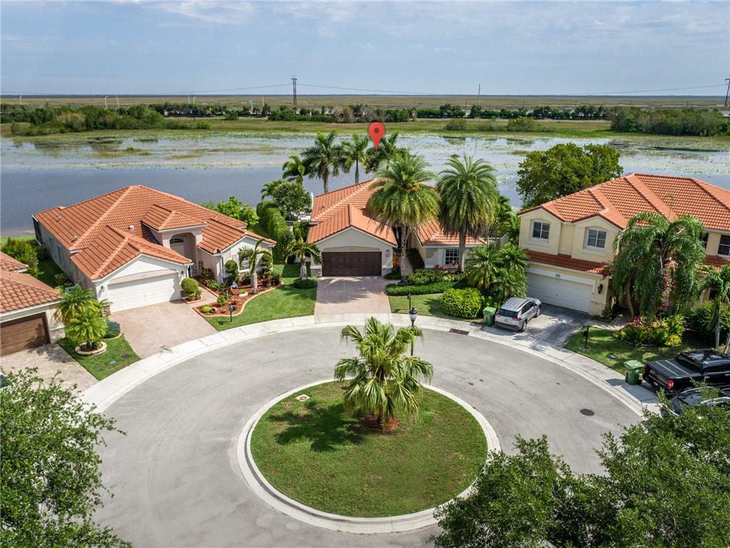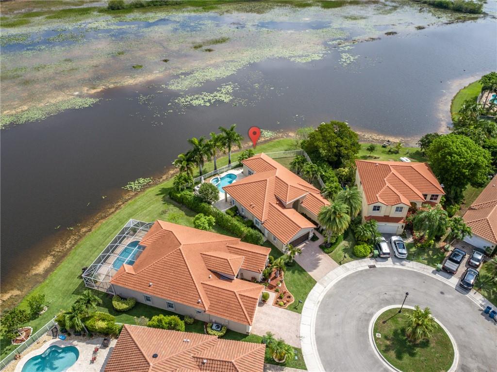Dream Homes can come true. Spectacular property with The best location! Used as a second home and Model Perfect. Cul de sac lot with outstanding private lake views.*** New Roof in 2019***. Renovated with marble floors in all living areas, wood kitchen cabinets and baths, granite tops, stainless steel appliances, accordian shutters, French doors, covered & extended marble patio. Pool & spa, lush landscape and much more. 4 bedrooms with 2.5 baths. Open concept, 2 car garage. Walking distance to Gator Run and close to I-75 and Publix. The gated community of Meadows offers: Club House, pool, basketball, playground and green areas.