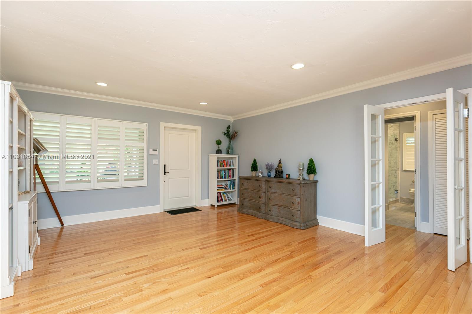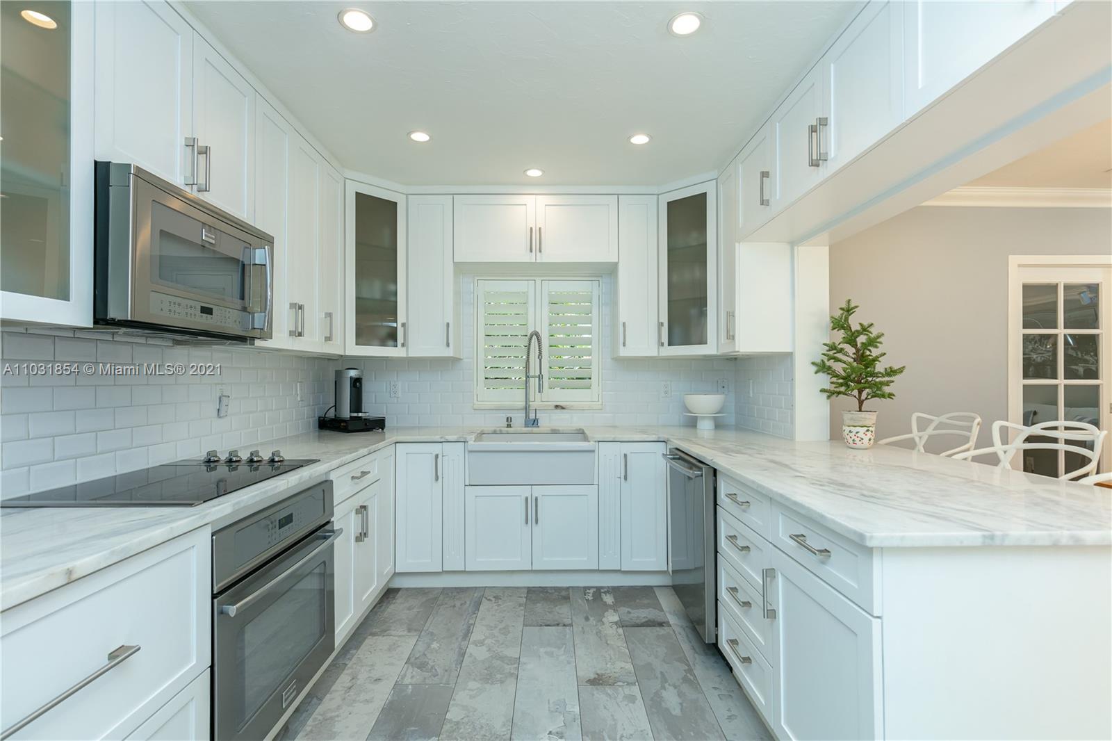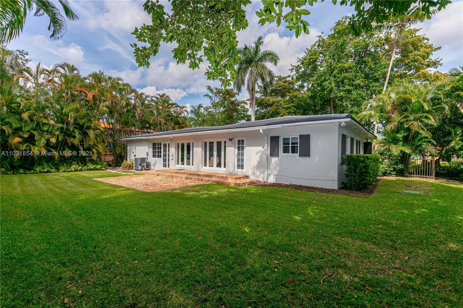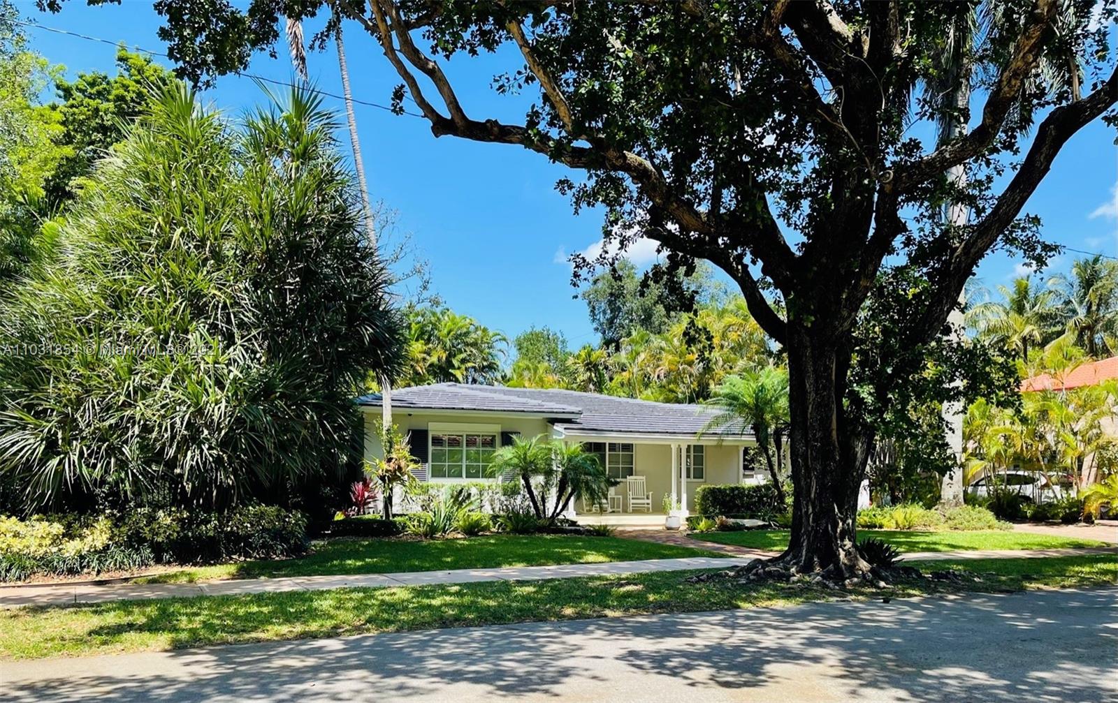 Drenched in natural sunlight, this impeccably renovated 1,671 sf 3 bedroom, 2 bath home in the North Gables is on an oversized, professionally landscaped, 10,500 sf, corner lot. Every detail has been addressed complete with elegant wood floors & Italian tiles. Also has hurricane impact windows, recessed lighting, new electrical wiring & panel, new PVC plumbing, tankless water heater, CCTV, w/gorgeous built in closets, plantation shutters & window treatments. Tastefully done doors, baseboards, and molding. As bonus the garage has newly installed door & is insulated with new flooring and air conditioned with Mitsubishi split AC. Given the double lot the home can be expanded to 4,300 sf with room for an ample pool. Property totally fenced in as well. Look no further if you are ready to buy!