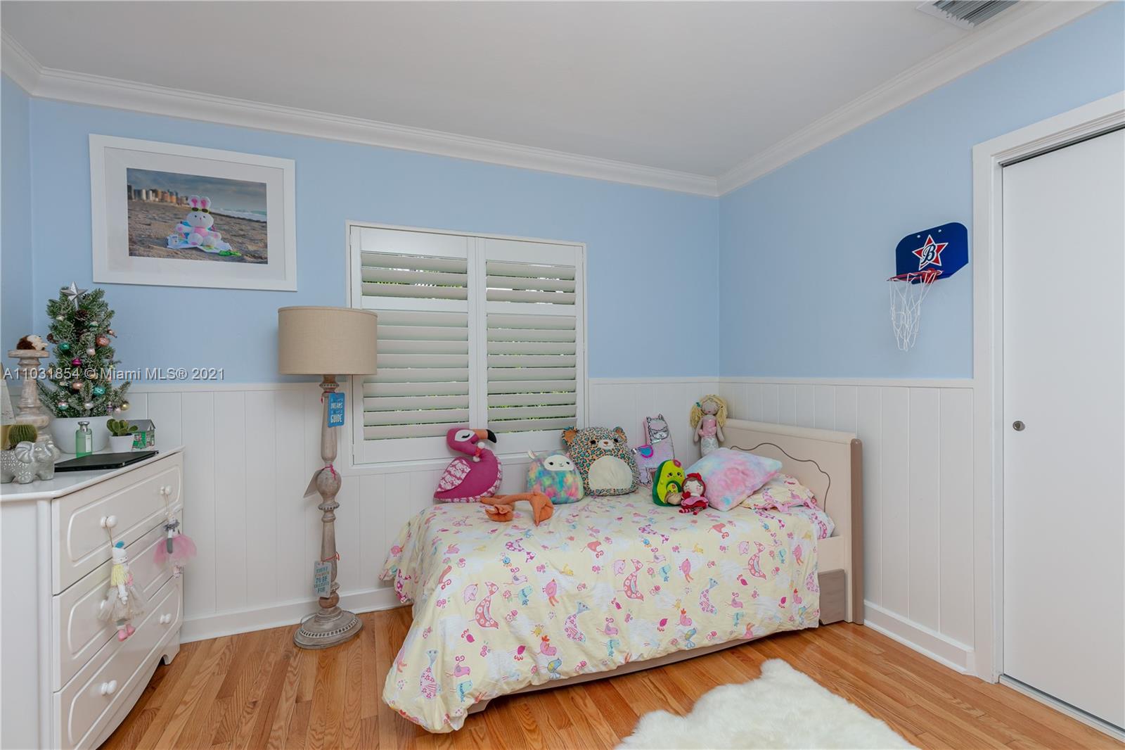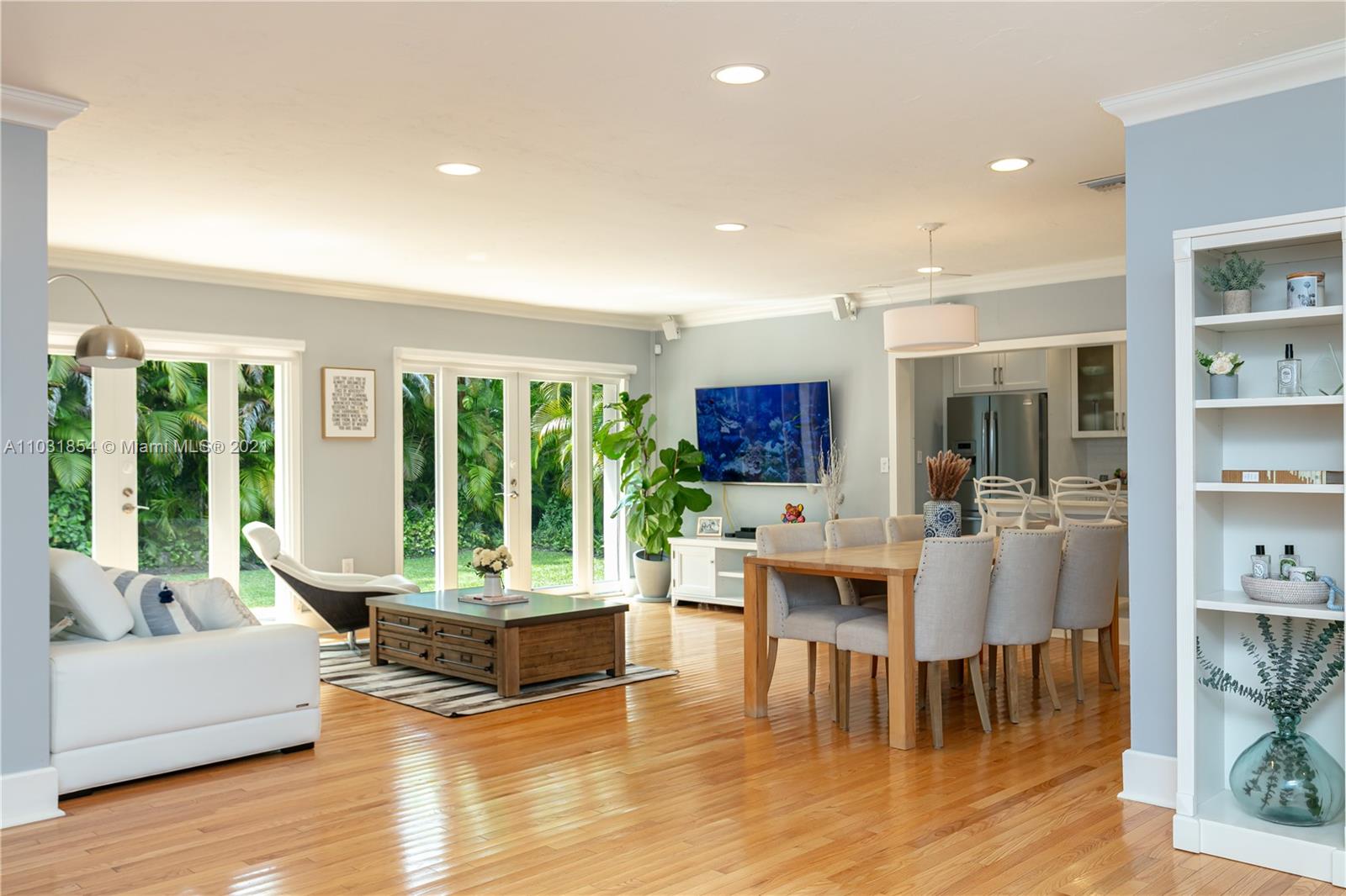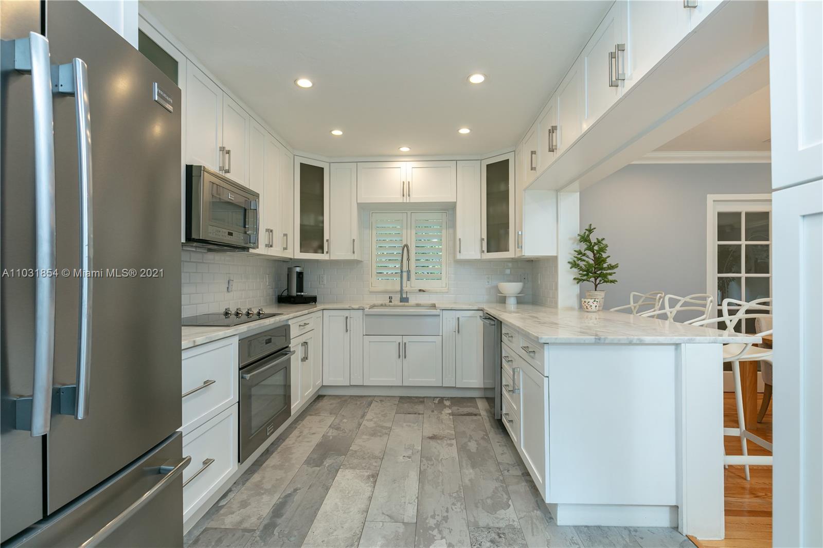 Drenched in natural sunlight, this impeccably renovated 1,671 sf 3 bedroom, 2 bath home in the North Gables is on an oversized, professionally landscaped, 10,500 sf, corner lot. Every detail has been addressed complete with elegant wood floors & Italian tiles. Also has hurricane impact windows, recessed lighting, new electrical wiring & panel, new PVC plumbing, tankless water heater, CCTV, w/gorgeous built in closets, plantation shutters & window treatments. Tastefully done doors, baseboards, and molding. As bonus the garage has newly installed door & is insulated with new flooring and air conditioned with Mitsubishi split AC. Given the double lot the home can be expanded to 4,300 sf with room for an ample pool. Property totally fenced in as well. Look no further if you are ready to buy!