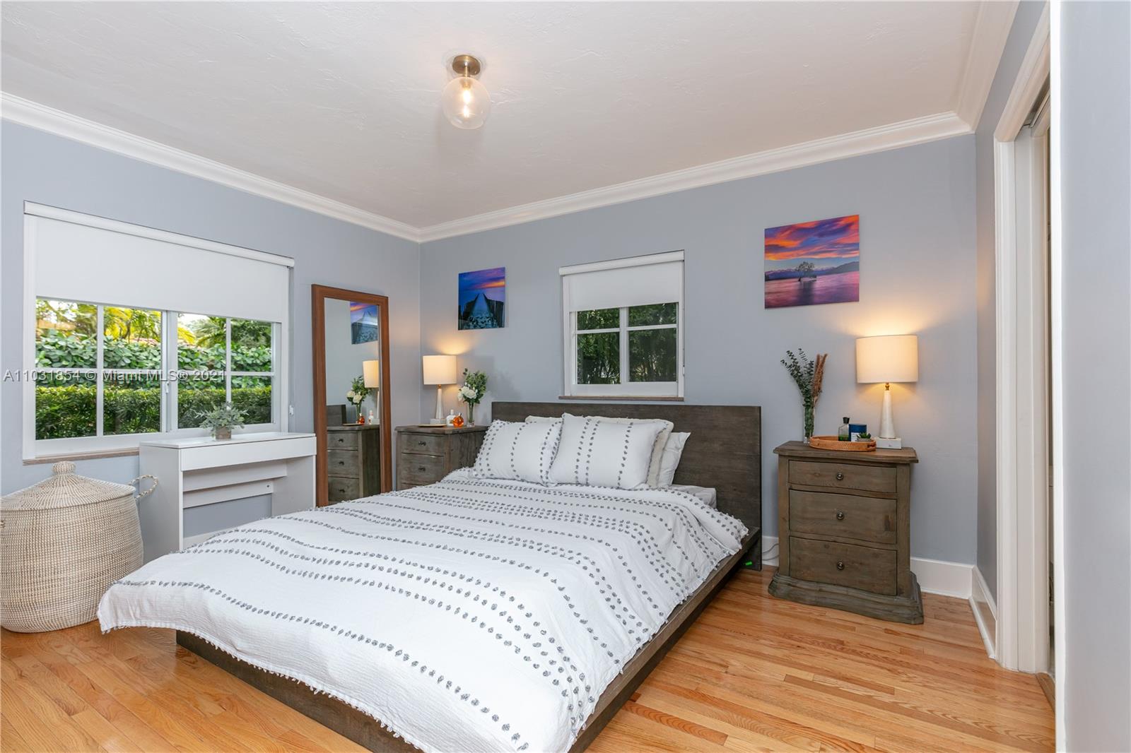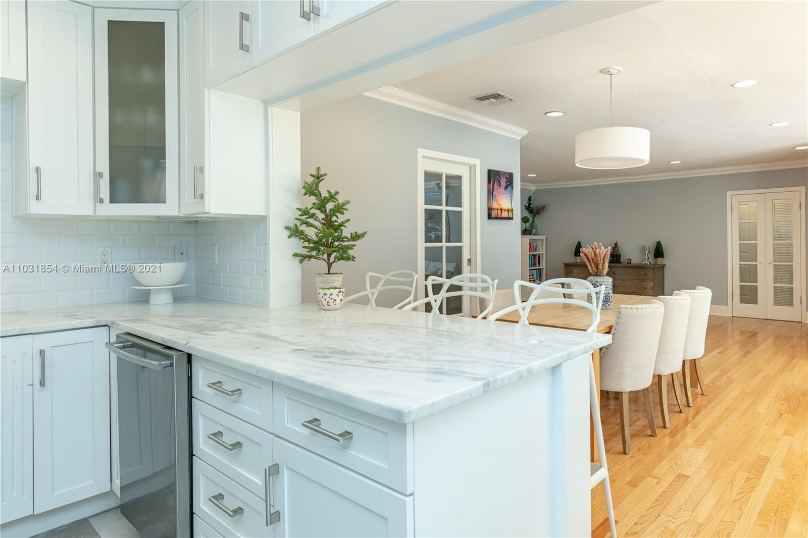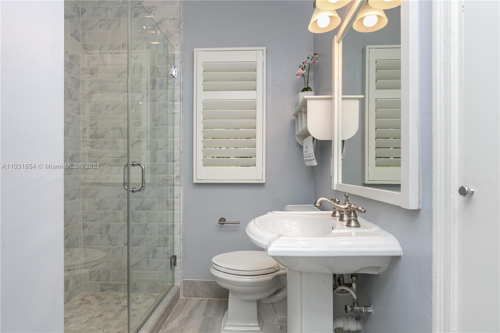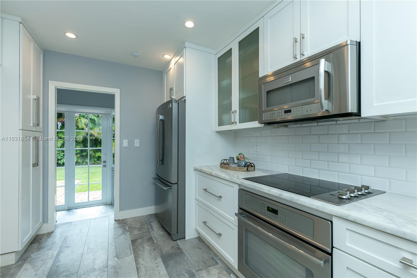 Drenched in natural sunlight, this impeccably renovated 1,671 sf 3 bedroom, 2 bath home in the North Gables is on an oversized, professionally landscaped, 10,500 sf, corner lot. Every detail has been addressed complete with elegant wood floors & Italian tiles. Also has hurricane impact windows, recessed lighting, new electrical wiring & panel, new PVC plumbing, tankless water heater, CCTV, w/gorgeous built in closets, plantation shutters & window treatments. Tastefully done doors, baseboards, and molding. As bonus the garage has newly installed door & is insulated with new flooring and air conditioned with Mitsubishi split AC. Given the double lot the home can be expanded to 4,300 sf with room for an ample pool. Property totally fenced in as well. Look no further if you are ready to buy!