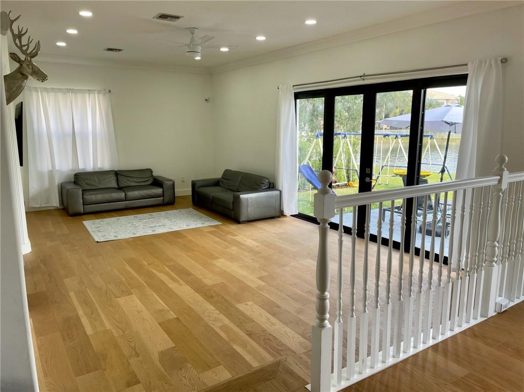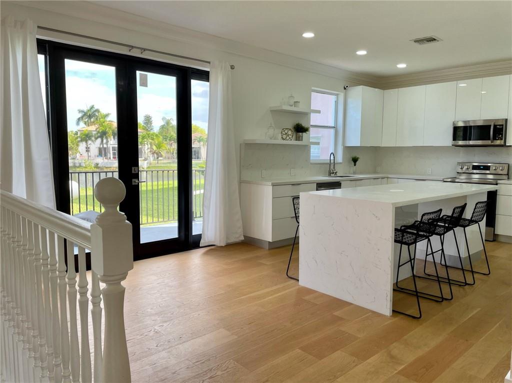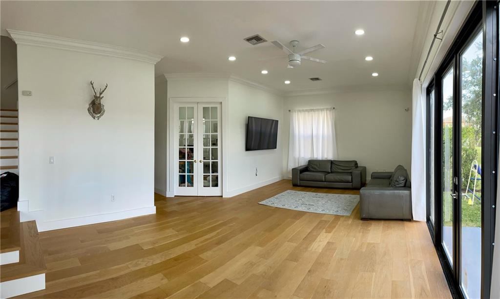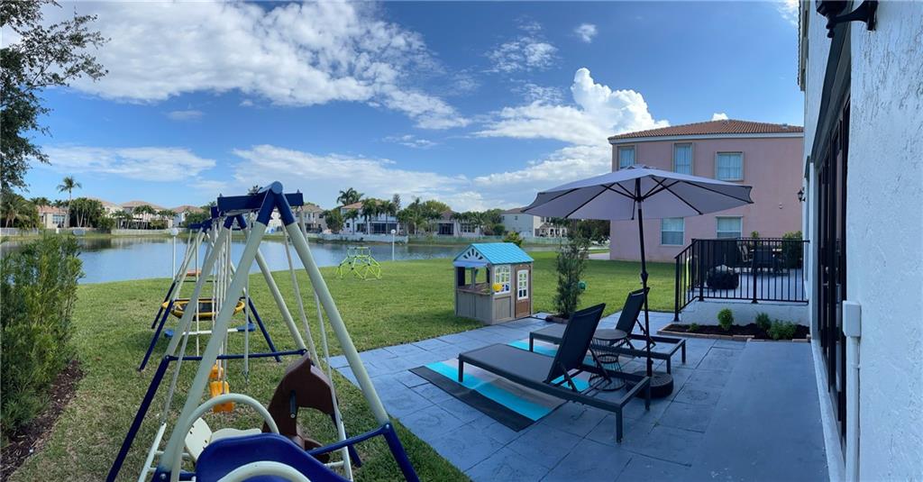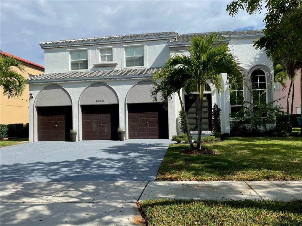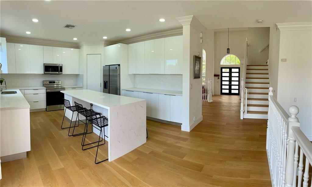 Newly renovated 5 bedroom/3 full bathroom spacious modern home in the desired Riviera Isles gated community. NEW: Hurricane Impact front and rear exterior French doors, roof, interior and exterior paint, wide plank real hard wood flooring throughout, full sleek white gloss European kitchen with waterfall quartz countertop & backsplash, stainless steel appliances, lighting fixtures, LED highhat lights throughout, ceiling fans, and Samsung washer & dryer. The lakefront backyard is very spacious including an outdoor entertainment area. Home also boasts a 3 car garage, an upstairs loft area, built in closets, tons of space, and location on a cul-de-sac street. Secured community has a clubhouse, playgrounds, tennis courts, pool, walking paths, & gym, among other well appointed amenities.