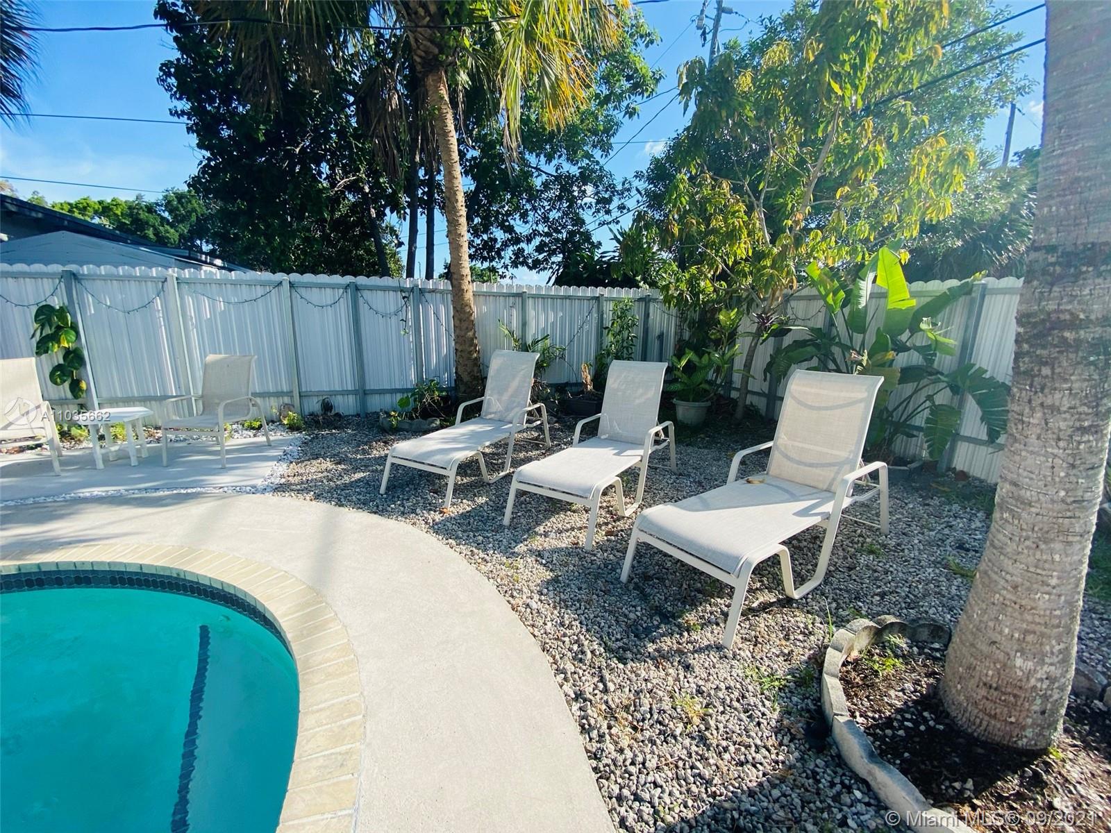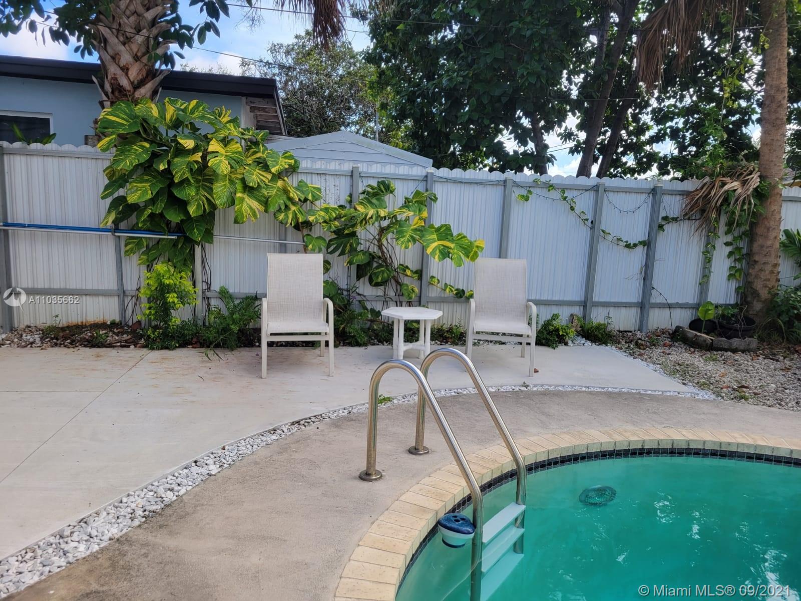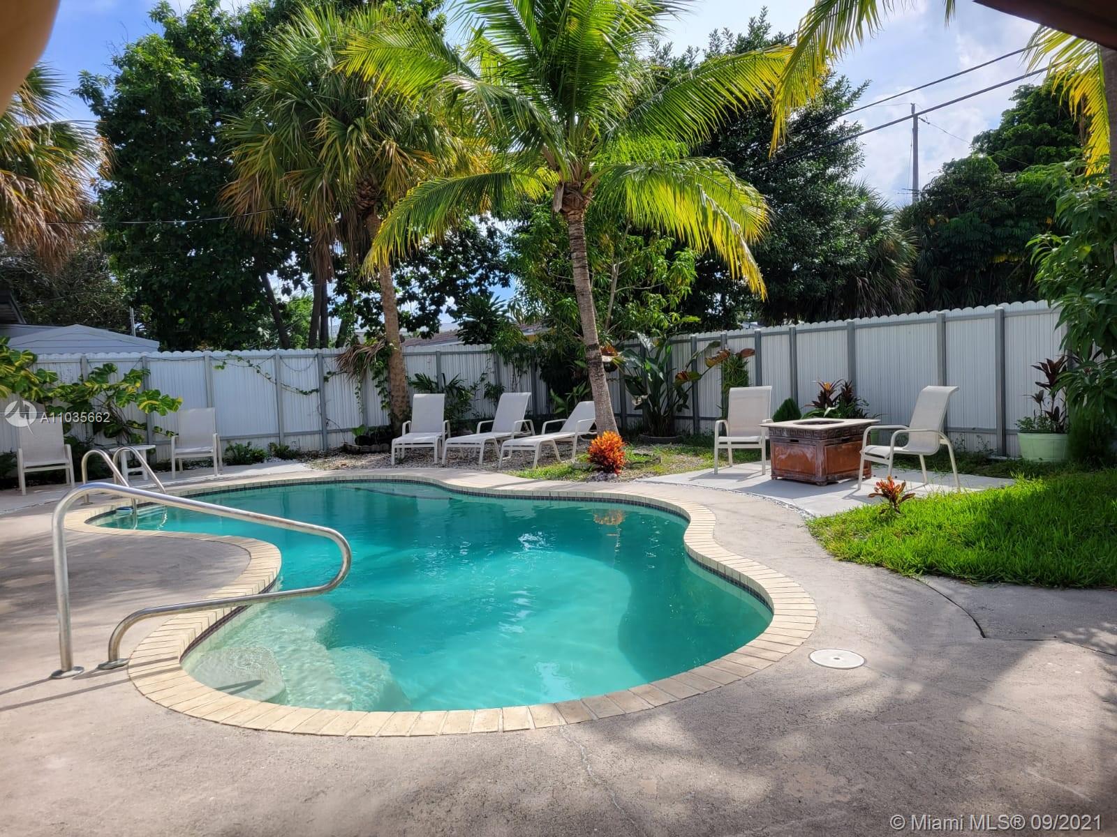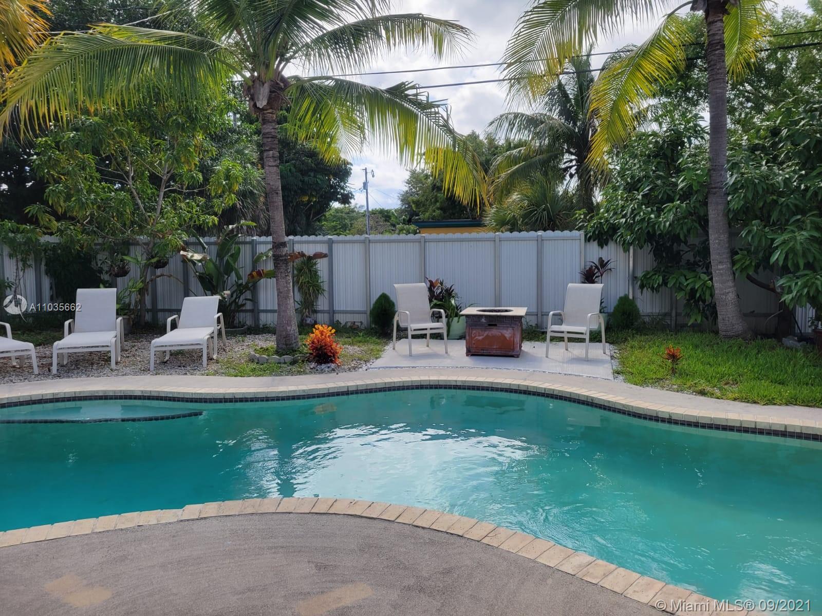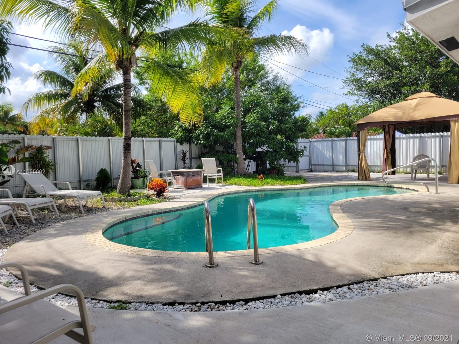 Tropical paradise - minutes away from shopping and entertainment, located on a quiet street just off of Biscayne! Spectacular pool surrounded by lush greenery, outdoor terrace with a half bath, and plenty of outdoor space for parties or activities. Open kitchen, ready to host a celebration with additional side island, new appliances, and lots of light and storage. Rustic hardwood floors, remodeled bathrooms, and newer laundry machines. Attention investors, the third bedroom has a private entrance, kitchenette, and a full bathroom. It can be rented separately and closed off from the main house. Whether you’d like an income producing property, or peace and quiet this house is your answer. The house is larger then in tax roll -1542sq feet. Located within the Eruv of Hallandale Beach.
