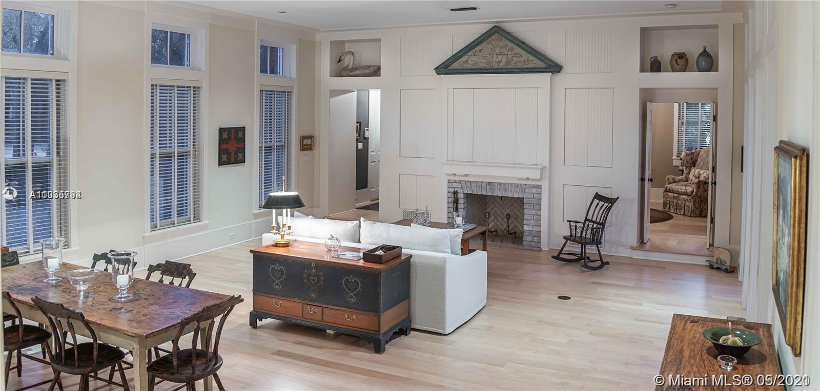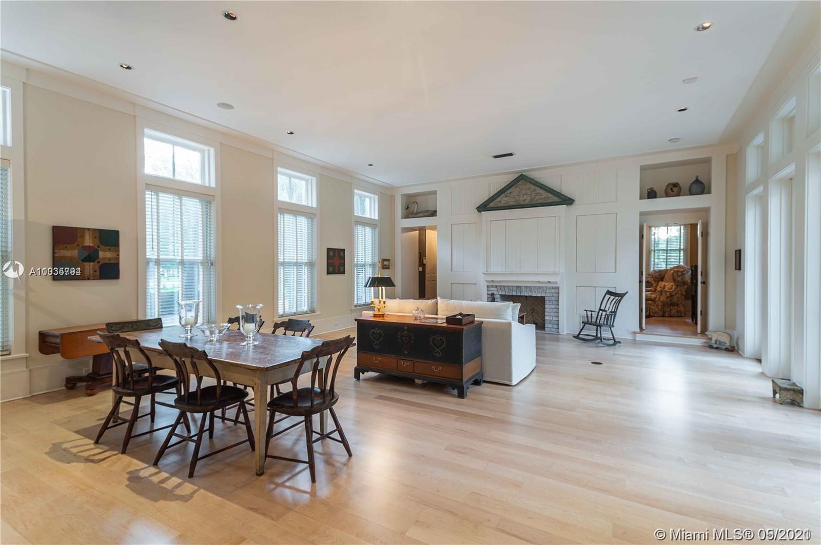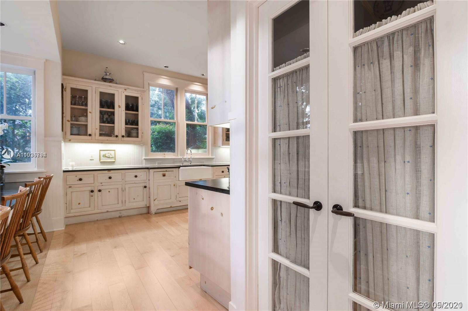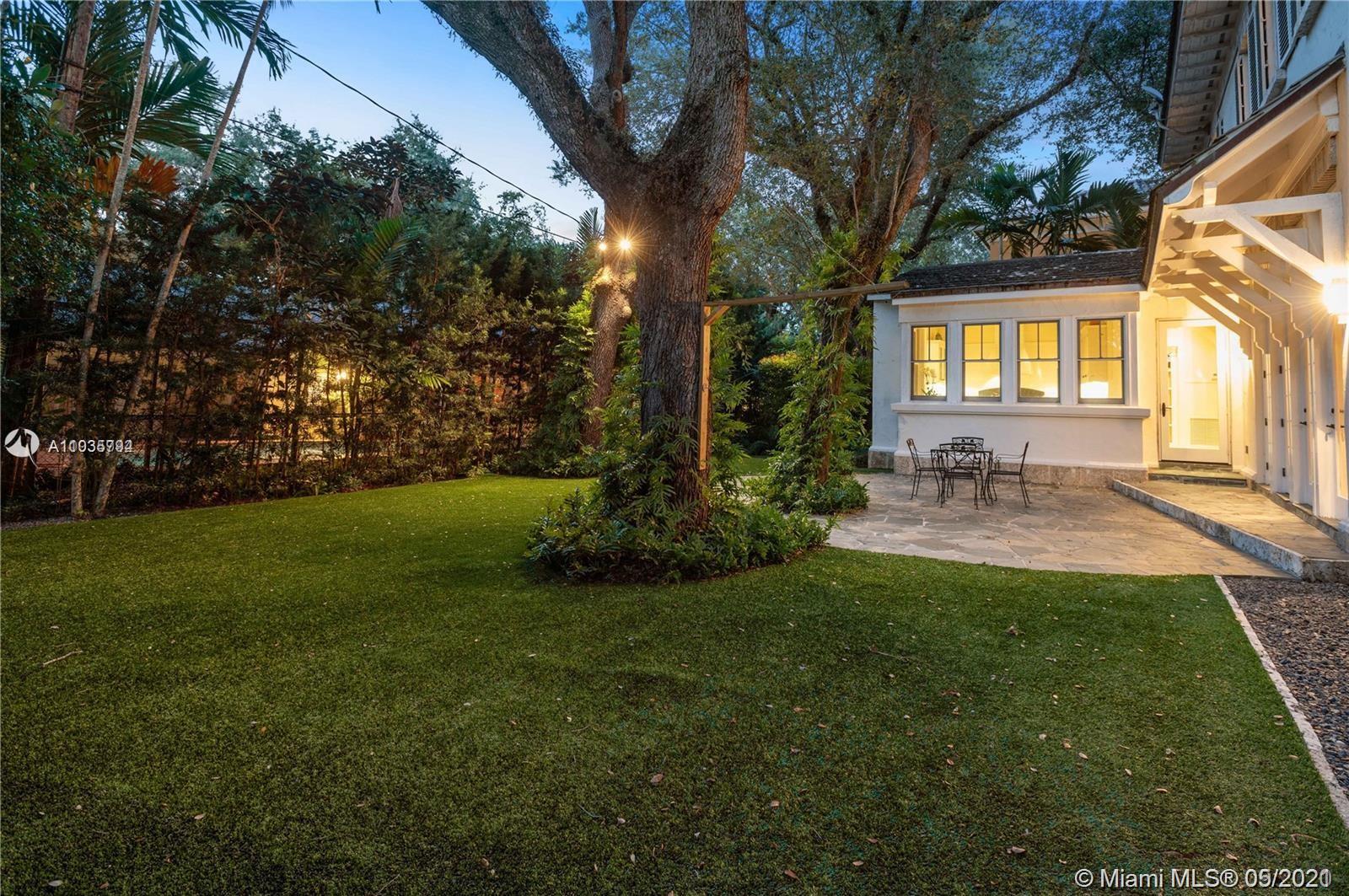 An architectural masterpiece adjacent to Coral Gables' "Pioneer Village". The open "Great" room invites you in w/ 13-foot ceilings in a bright cheerful space. A diagonal composition of the plan guides movement throughout the house. Interior details include two brick fireplaces, custom light-fixtures, mouldings, & maple-wood flooring throughout. Kitchen features cabinetry w/ hand-blown glass, soapstone counter-tops, & Viking/Sub-Zero appliances. 3-BR on the second level feature en-suite bathrooms w/ Waterworks fixtures & tilework. Downstairs room may serve as an office/study or guest room. The interiors communicate freely w/ the enchanting outdoor space. A series of french doors open out to a slate patio & turfed garden. Located steps away from the prestigious Riviera Country Club.