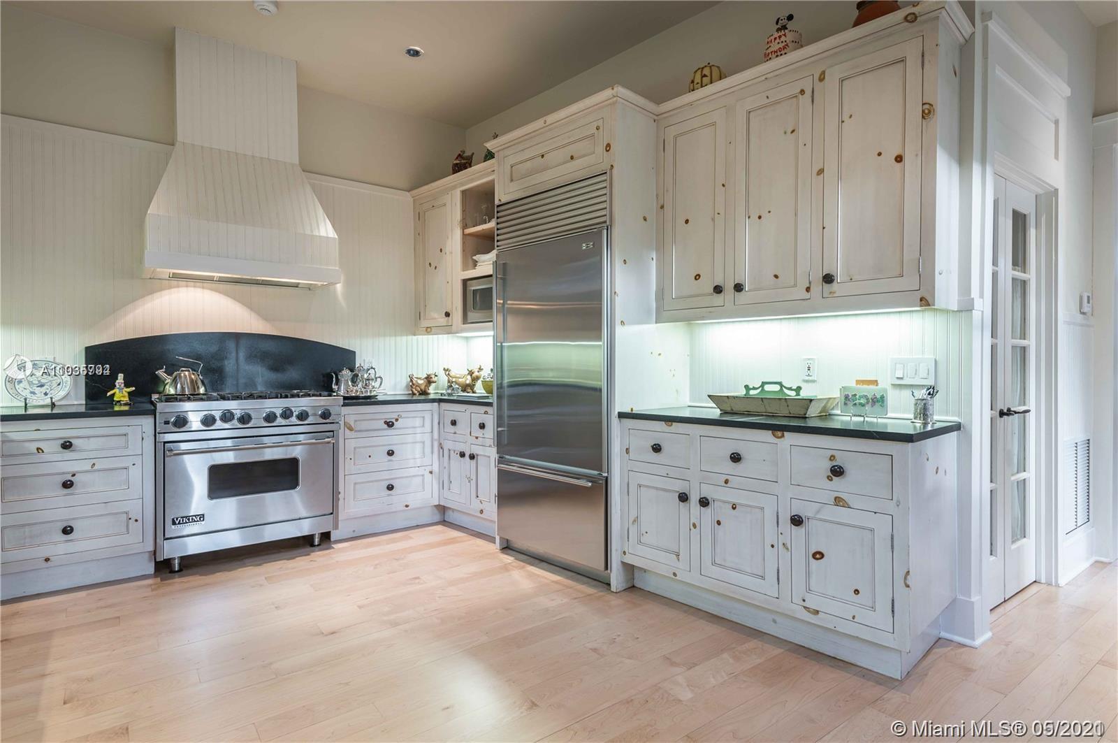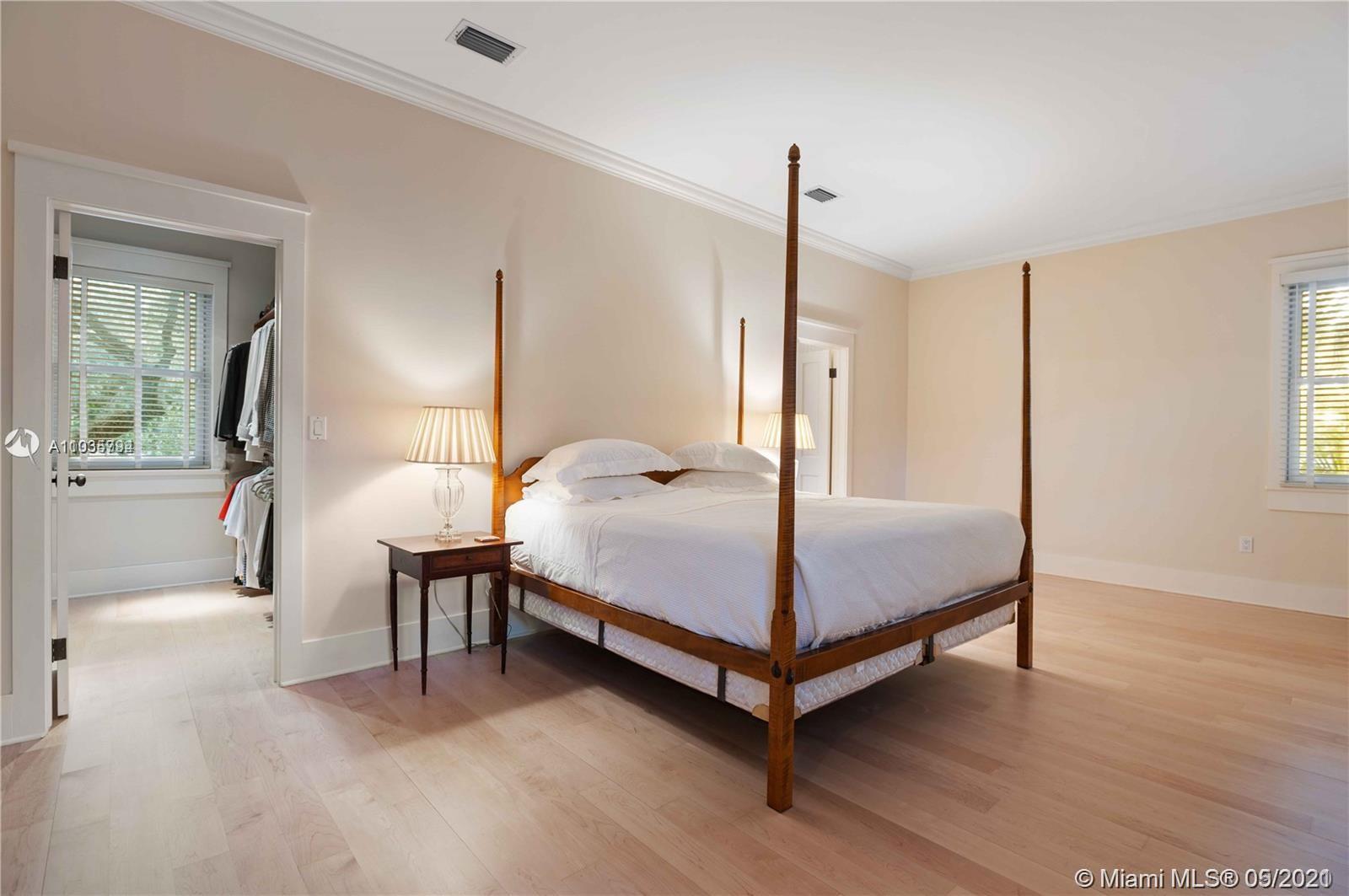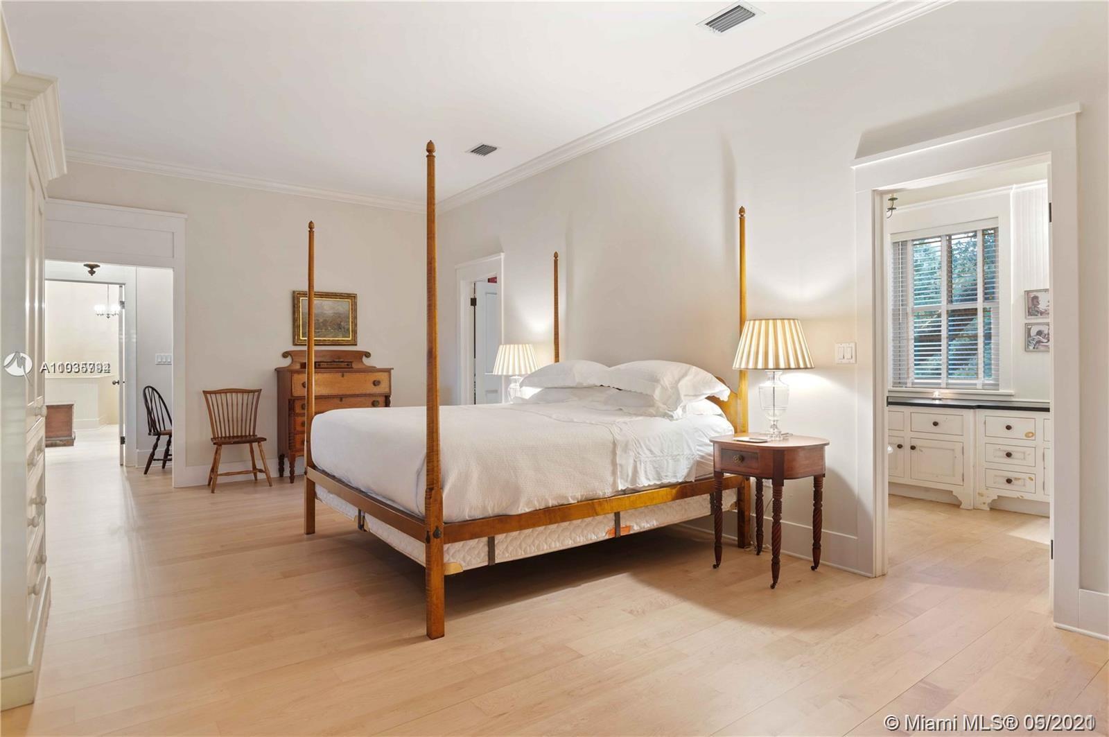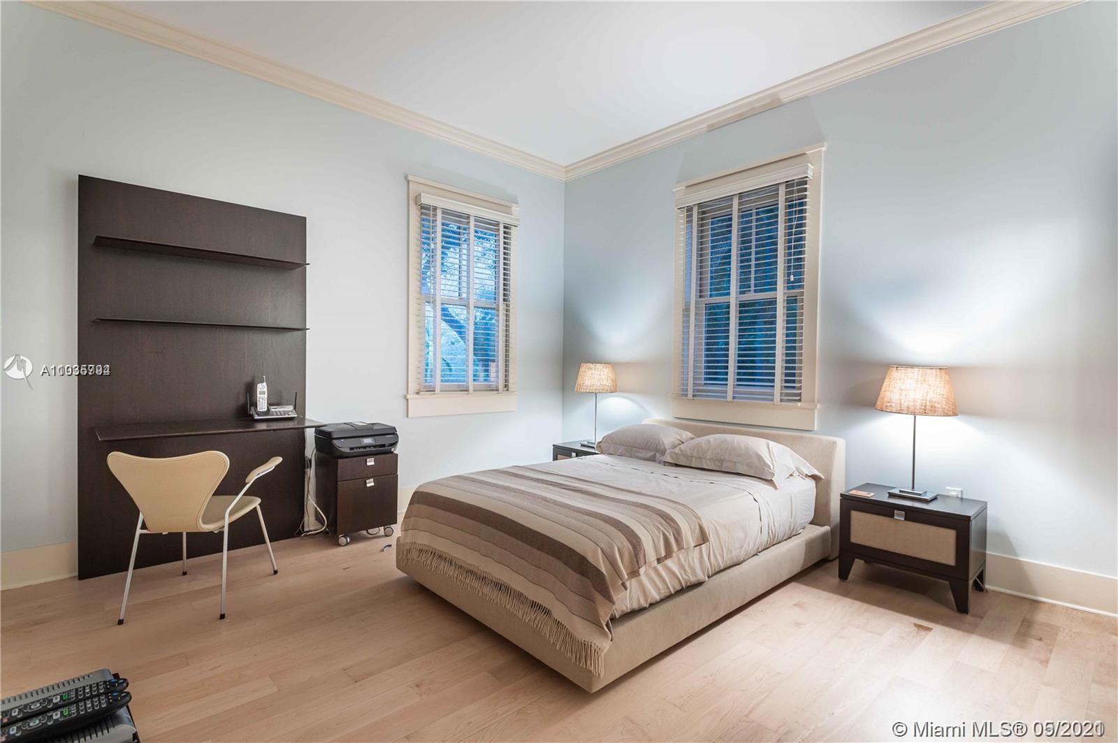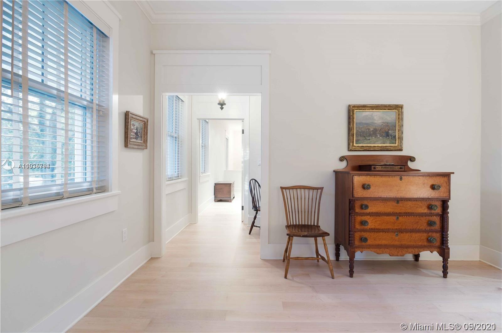 An architectural masterpiece adjacent to Coral Gables' "Pioneer Village". The open "Great" room invites you in w/ 13-foot ceilings in a bright cheerful space. A diagonal composition of the plan guides movement throughout the house. Interior details include two brick fireplaces, custom light-fixtures, mouldings, & maple-wood flooring throughout. Kitchen features cabinetry w/ hand-blown glass, soapstone counter-tops, & Viking/Sub-Zero appliances. 3-BR on the second level feature en-suite bathrooms w/ Waterworks fixtures & tilework. Downstairs room may serve as an office/study or guest room. The interiors communicate freely w/ the enchanting outdoor space. A series of french doors open out to a slate patio & turfed garden. Located steps away from the prestigious Riviera Country Club.