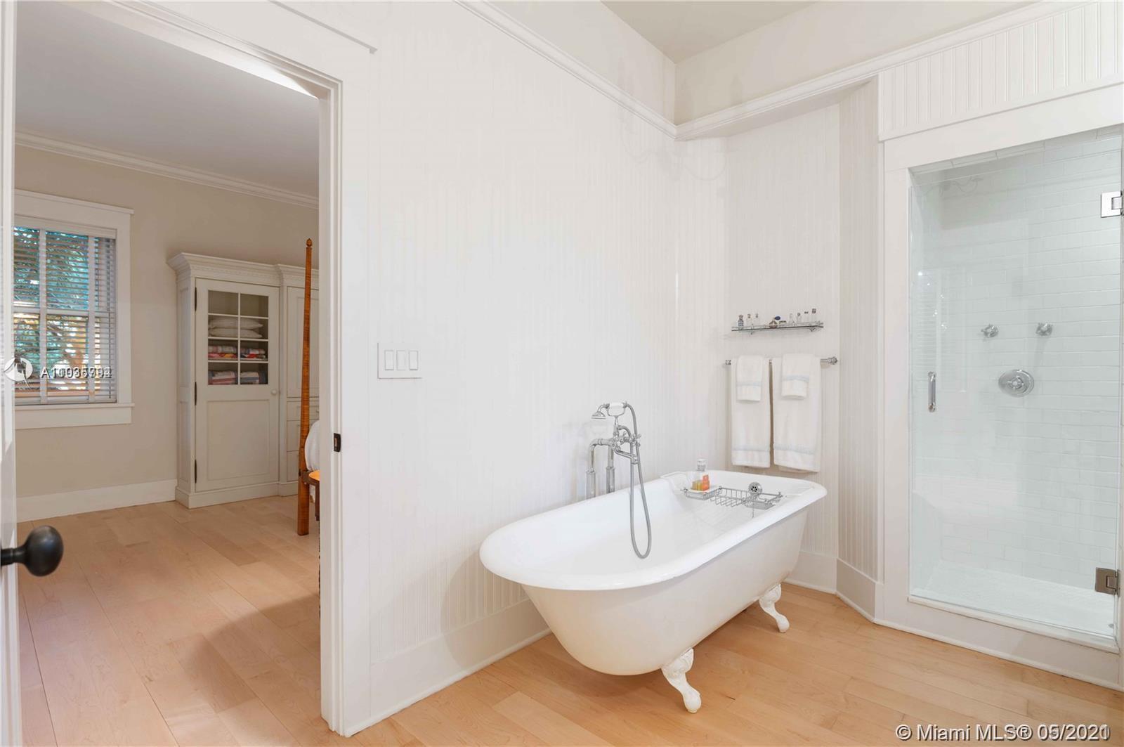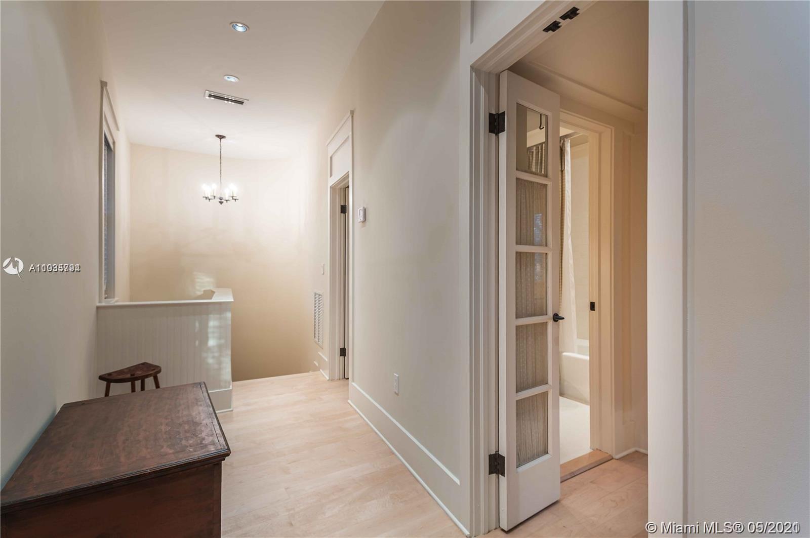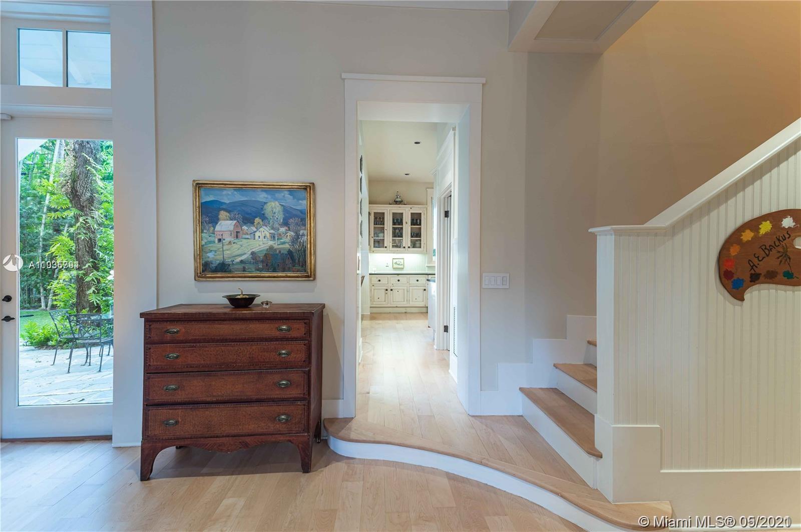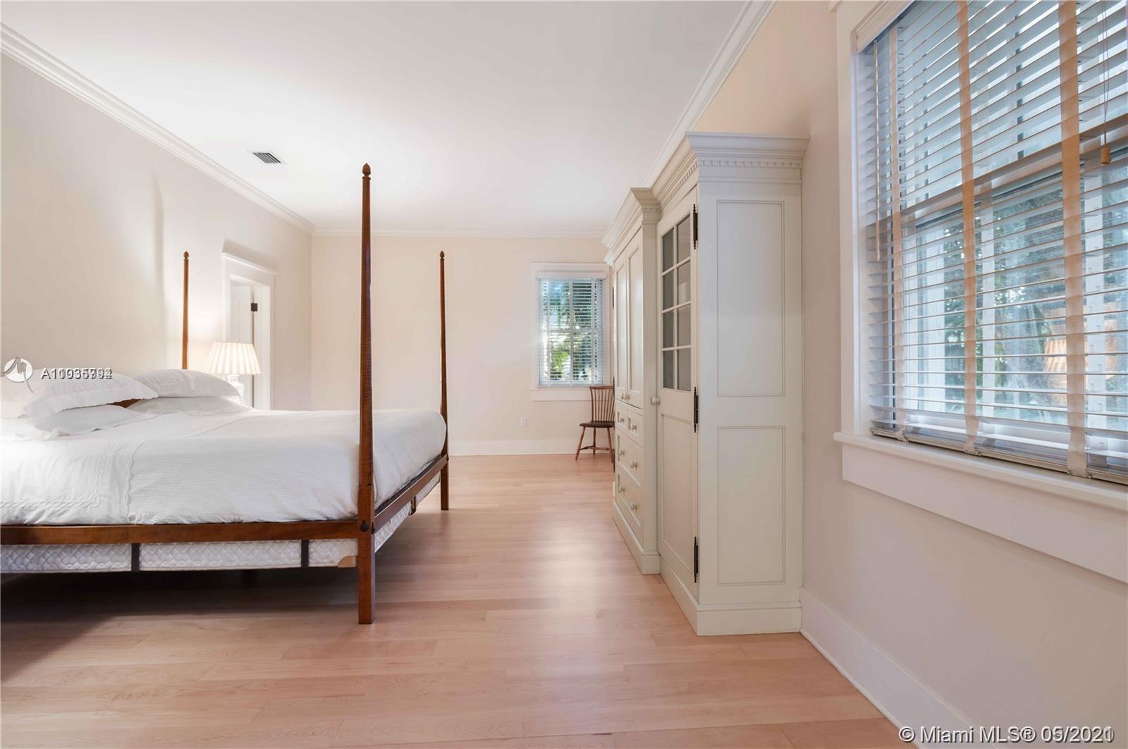 An architectural masterpiece adjacent to Coral Gables' "Pioneer Village". The open "Great" room invites you in w/ 13-foot ceilings in a bright cheerful space. A diagonal composition of the plan guides movement throughout the house. Interior details include two brick fireplaces, custom light-fixtures, mouldings, & maple-wood flooring throughout. Kitchen features cabinetry w/ hand-blown glass, soapstone counter-tops, & Viking/Sub-Zero appliances. 3-BR on the second level feature en-suite bathrooms w/ Waterworks fixtures & tilework. Downstairs room may serve as an office/study or guest room. The interiors communicate freely w/ the enchanting outdoor space. A series of french doors open out to a slate patio & turfed garden. Located steps away from the prestigious Riviera Country Club.