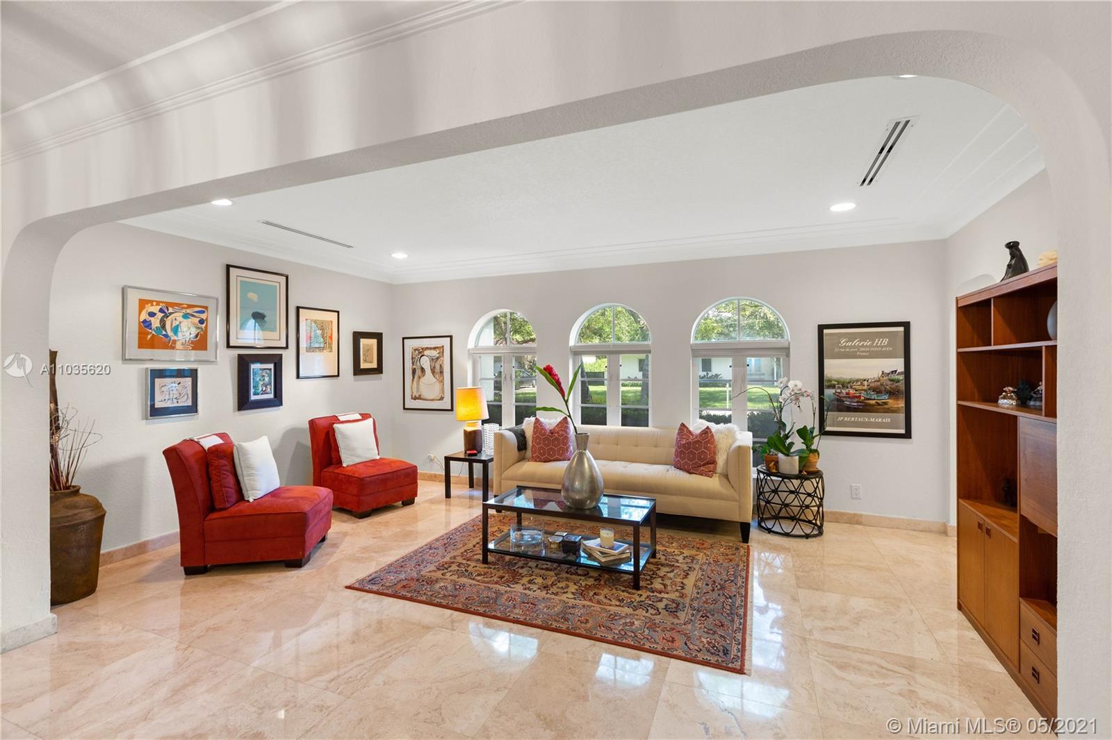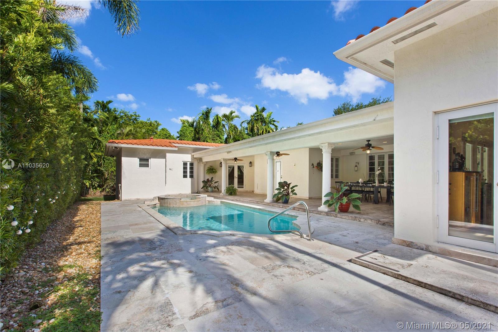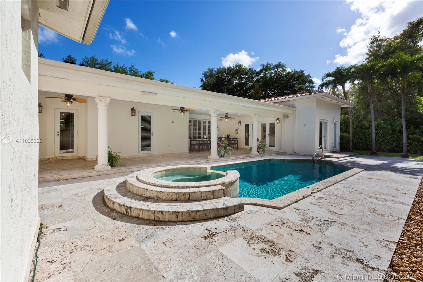 Beautiful Mediterranean Home in Coral Gables. 4-bedrrom, 3.5 baths on a large 12,500 sq.ft. lot. This beautiful home has an open floorplan, updated kitchen with wood cabinets and stainless appliances, impact windows and doors throughout and a two car garage. Travertine and wood floors as well as a great covered patio overlooking the pool and spa. This home will not last on the market, so hurry and put your best foot forward.