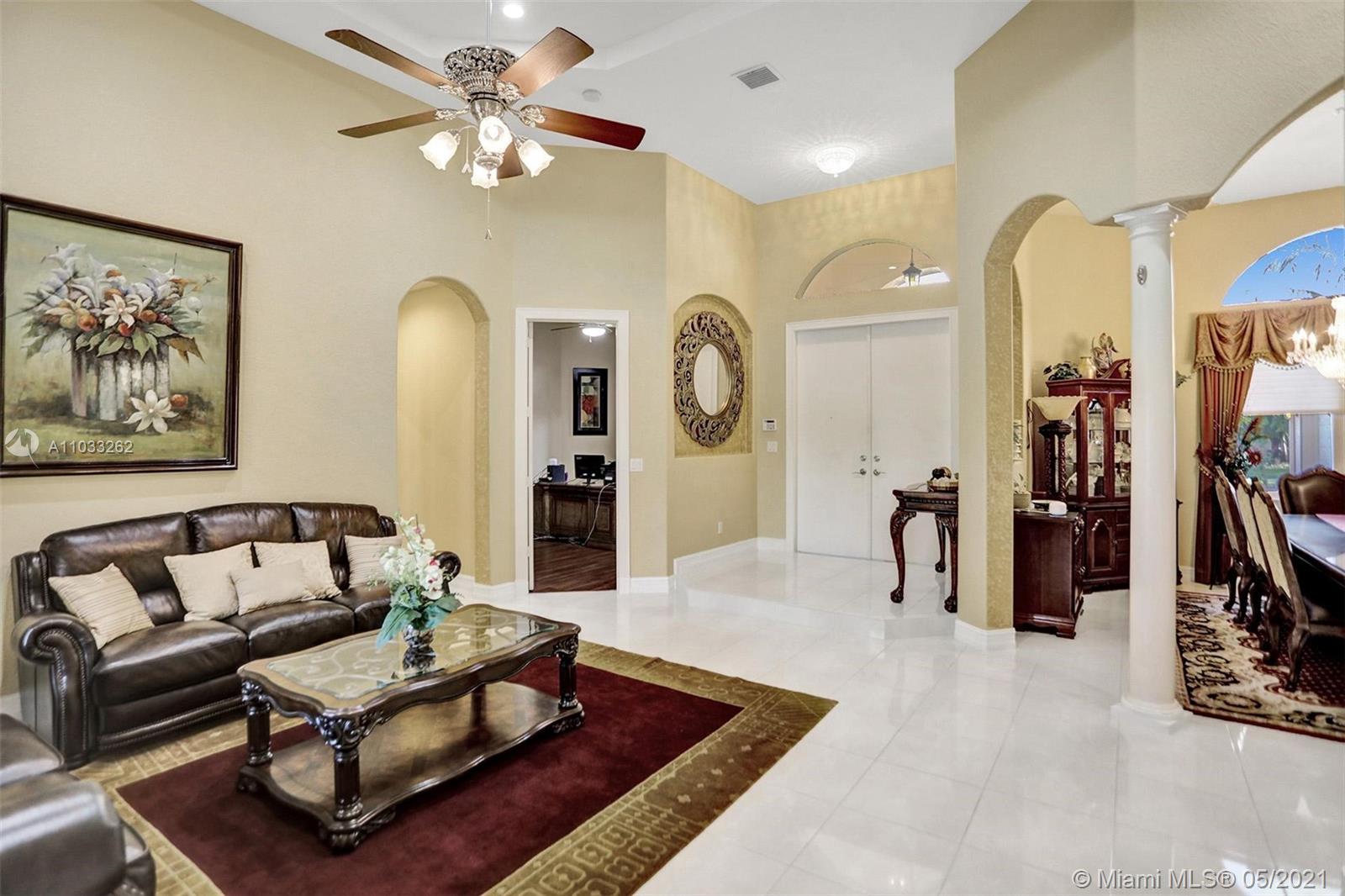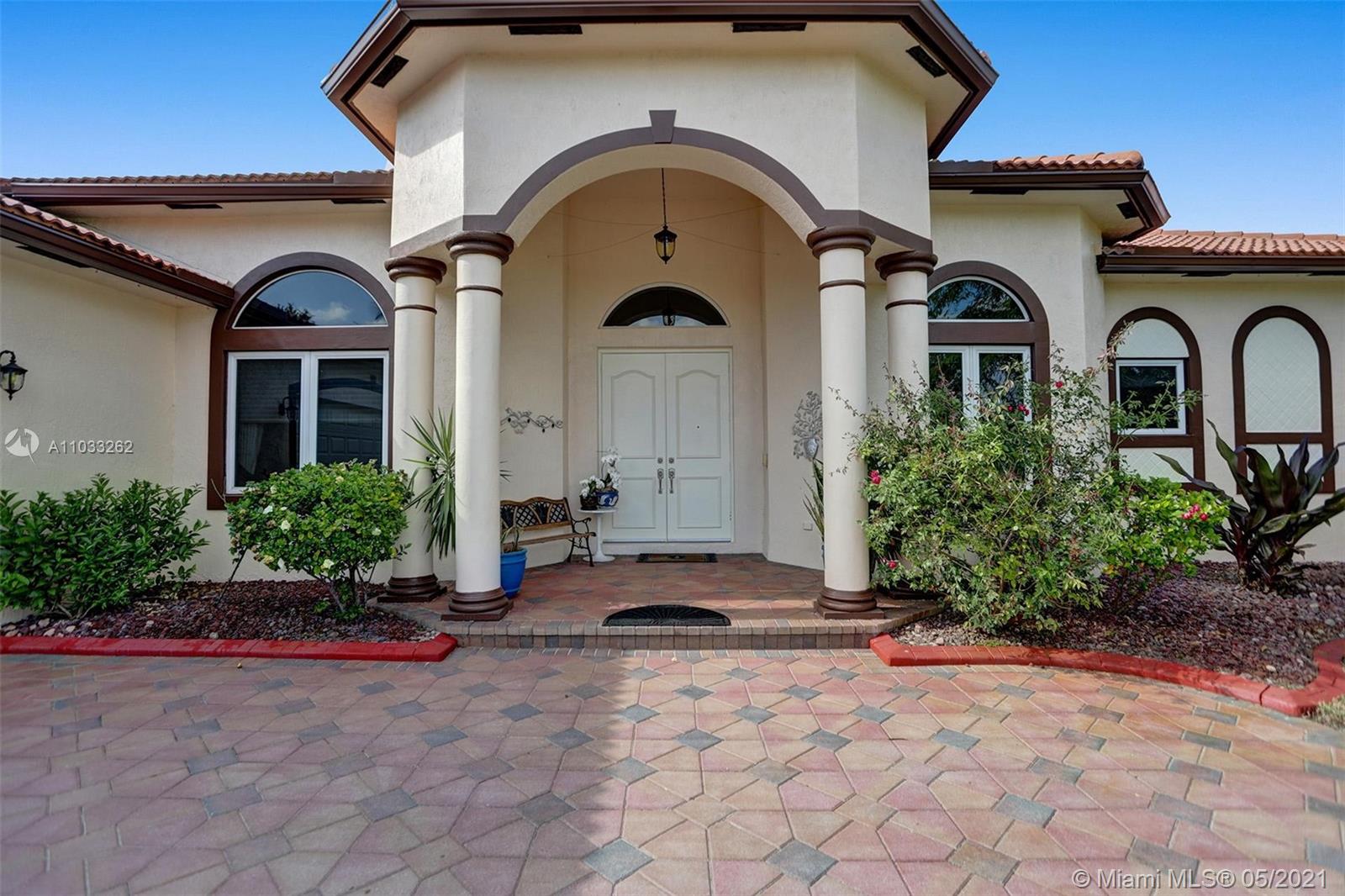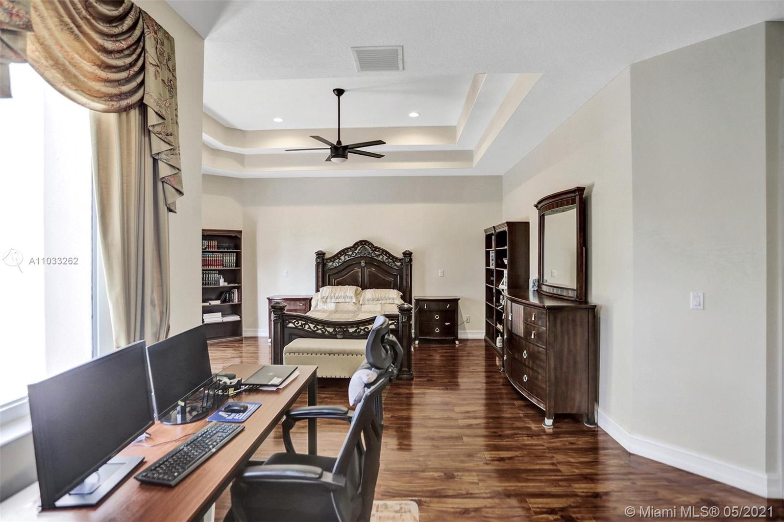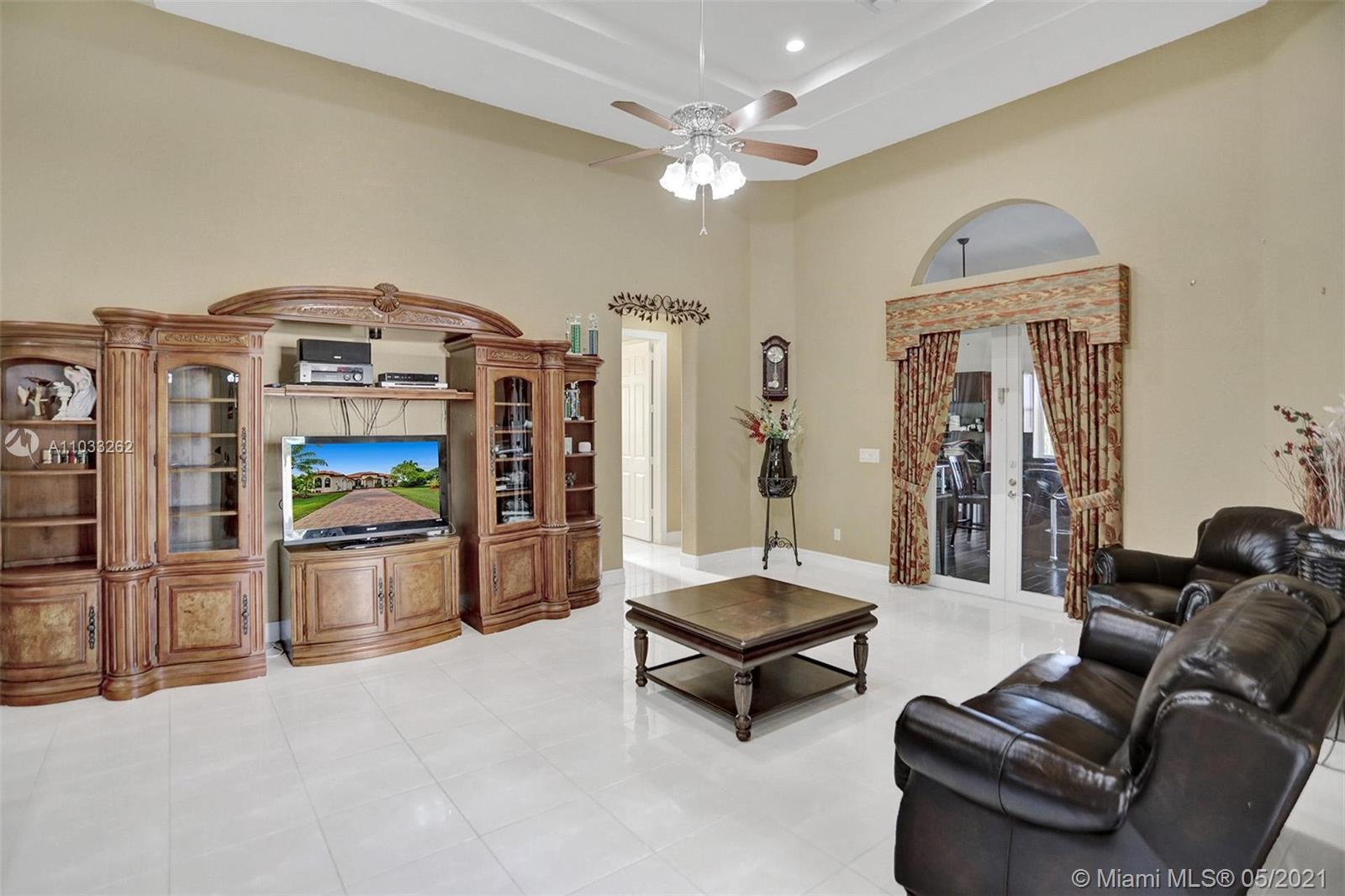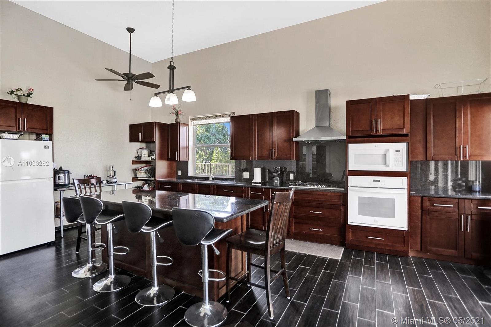Luxurious estate home with all the upgrades one is looking for. Newly painted. Extended driveway, Impact glass windows, Pool, 5 bedrooms + Office, 4 bathrooms with a second kitchen! Back Patio, Garage & driveway are extended from the standard builder's design. House comes with brand new kitchen appliances, water heater, AC and new eloquent wood floors in the bedrooms. The house is in a gated community with very few homes and In and around Million$$ homes. The new construction across the street is over 1.3 million for 2000 SQFT less than this house and less than half an acre of this home! The whole house has reverse Osmosis Softwater filter system. The backyard has all the tropical fruits one is looking for with well water sprinkler system! Won't last long. So be the first one to see it.