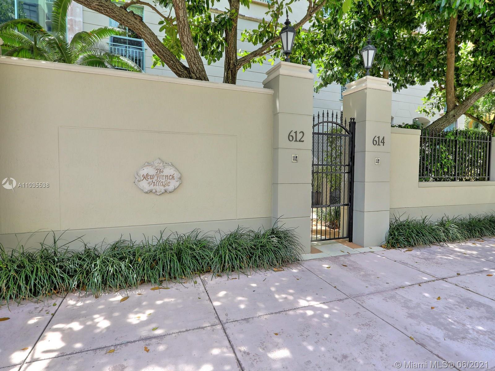 Beautifully updated 2 bedrooms 2.5 bath townhouse on a private and gated community located in the desirable New French Village, walking distance to Downtown Coral Gables, restaurants, parks and golf course. Elegant upgrades with modern new lighting fixtures & hardware, new bathroom vanities, new electrical panel, completely painted, hardwood floors throughout, gorgeous kitchen with adjacent breakfast area opens up to a quaint covered patio, perfect to enjoy your breakfast, or a nice evening cocktail with loved ones. impact windows and doors, master suite features a large walk-in closet. Second bedroom is an en-suite with a spacious walking closet. Two cover assigned parking spaces under the building, plus plenty of street parking for visitors. Come see it and fall in love.