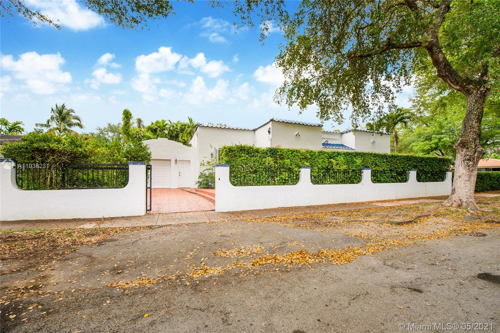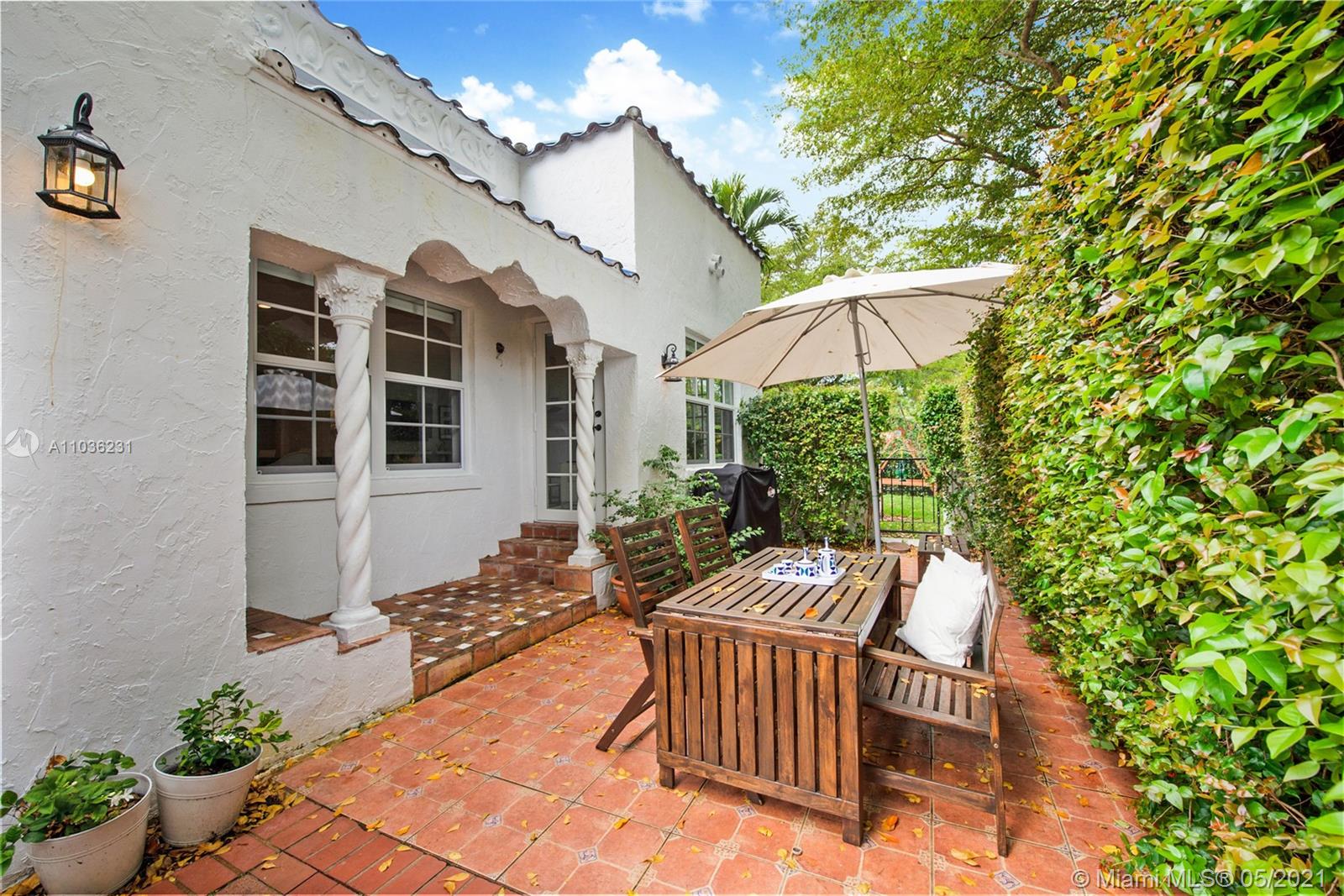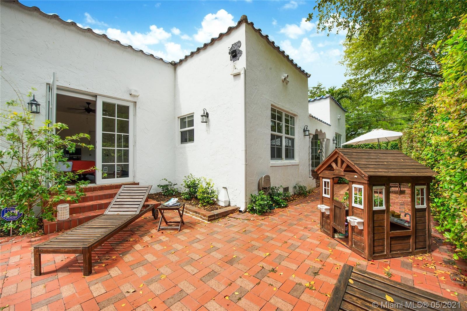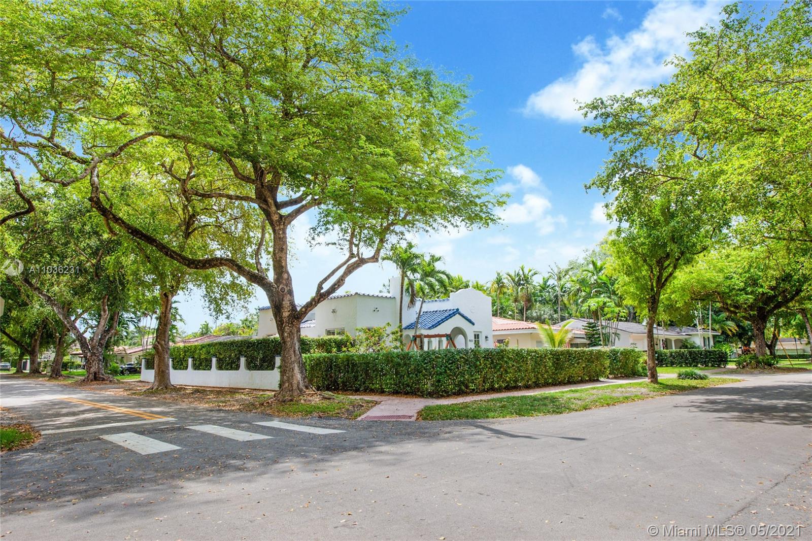 This storybook Old Spanish renovated home is located on a corner lot on a beautiful canopied Coral Gables Street. Home boasts charming outdoor spaces with a front porch overlooking the fenced in yard and a private outdoor terrace outside of the kitchen. Main house is a 3 bedroom 2 bath & the garage was converted to a 1/1 cottage with a bonus storage area. Open living spaces with wood & tile floors throughout, impact windows & doors, new 2021 roof, newer appliances & a wood burning fireplace! Located east of Granada & blocks from Downtown Coral Gables. Coral Gables Preparatory school district.
