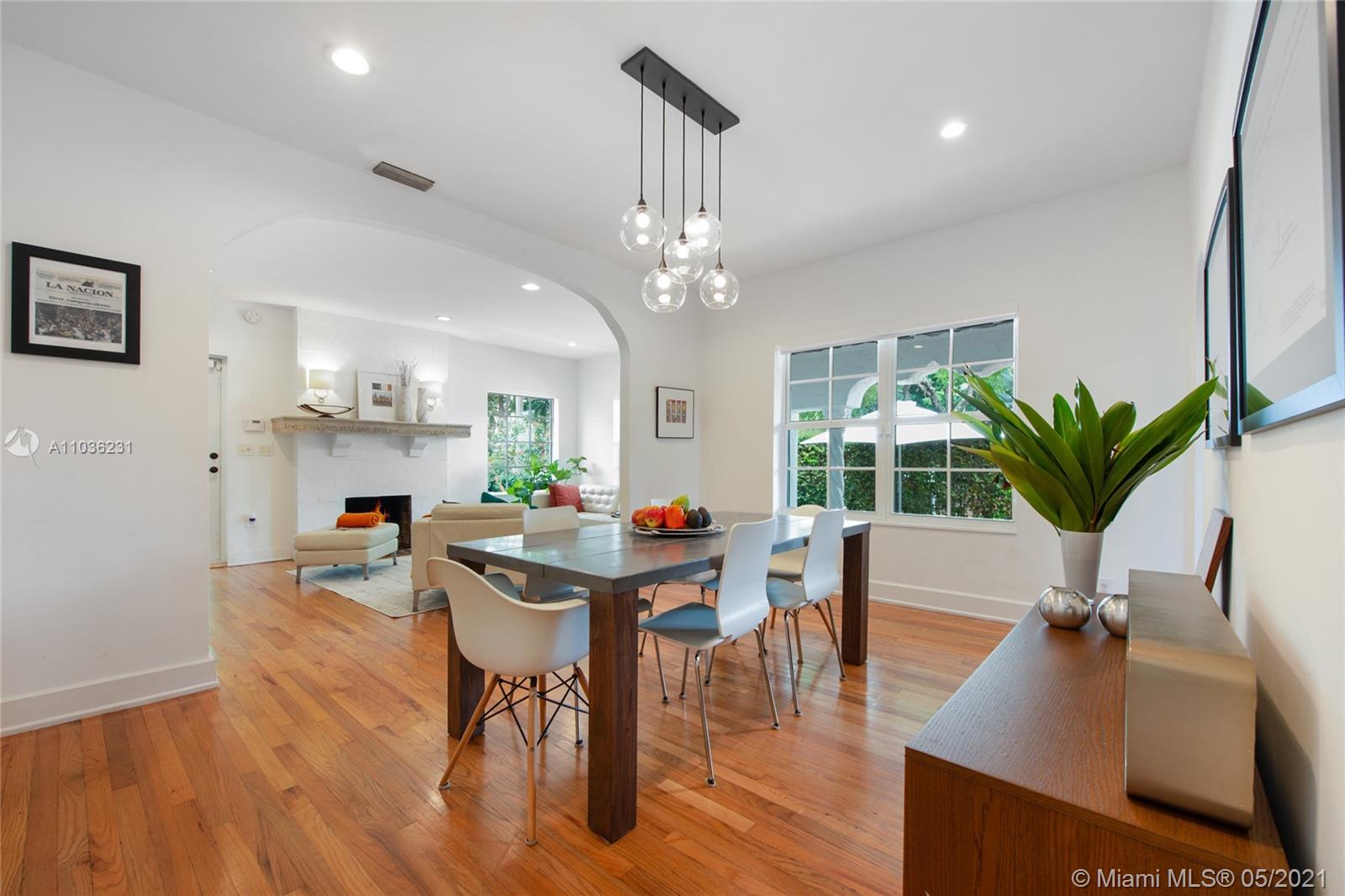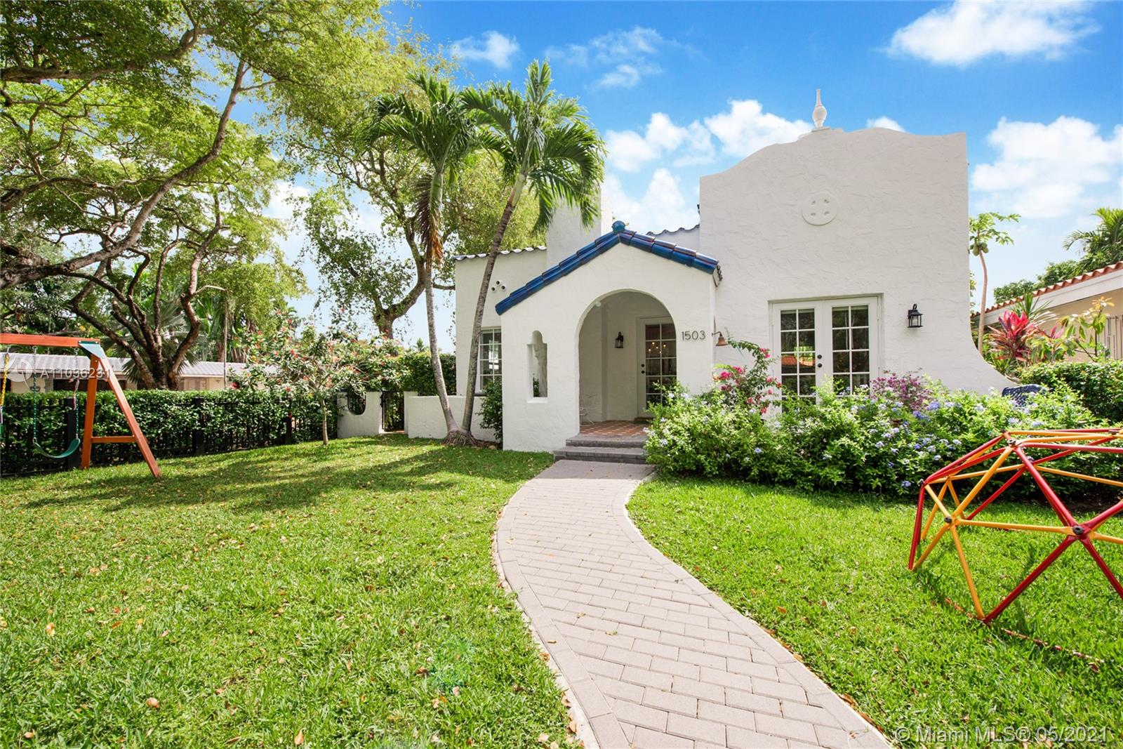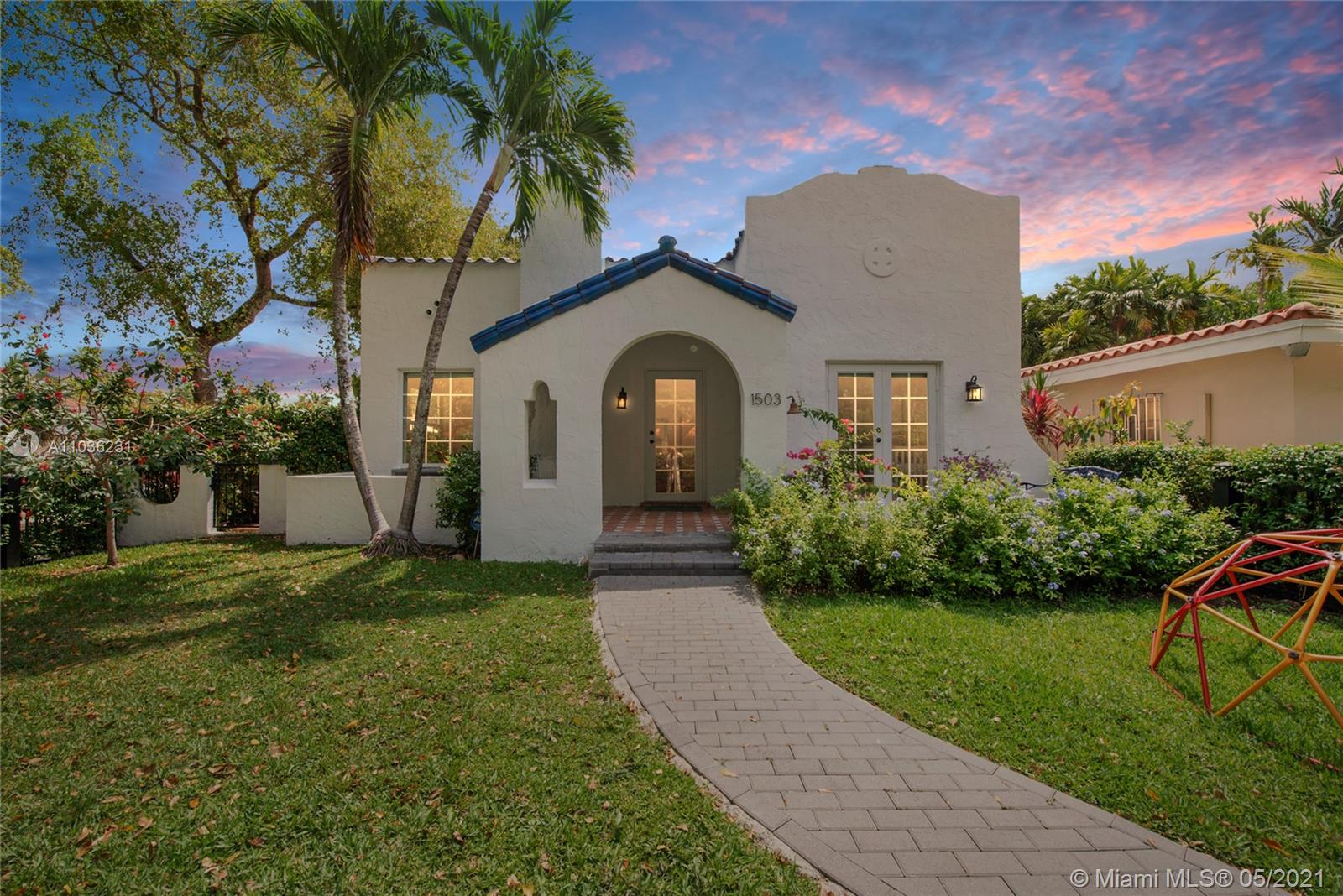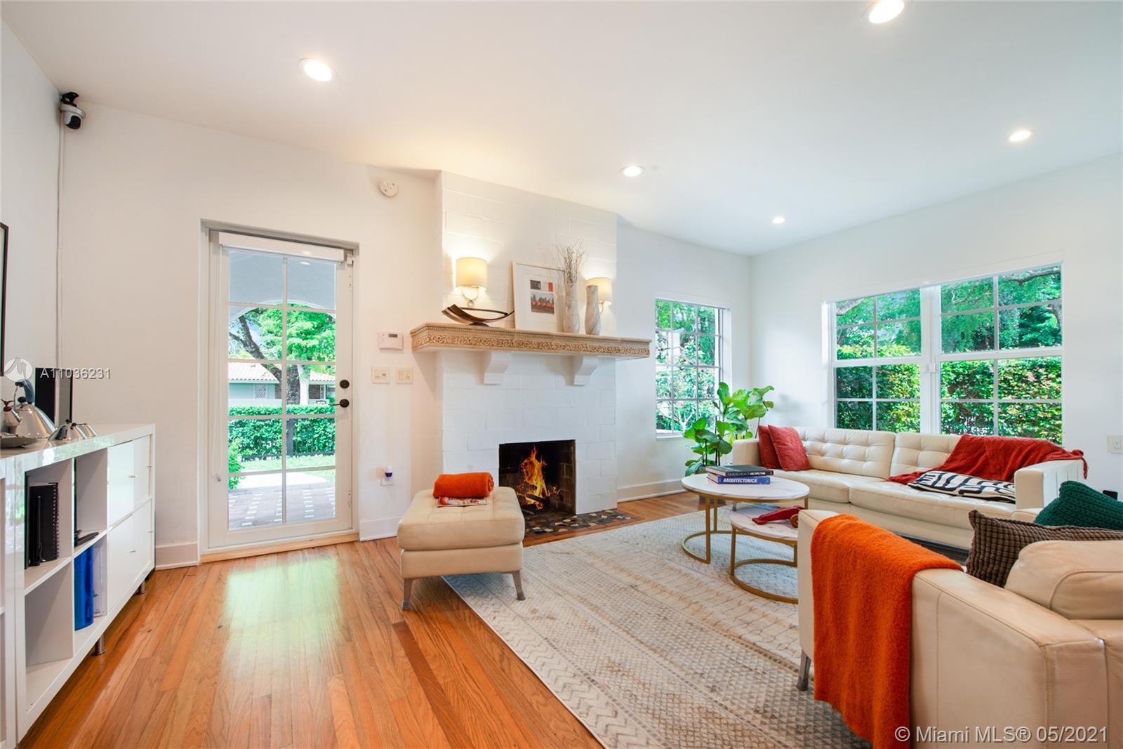 This storybook Old Spanish renovated home is located on a corner lot on a beautiful canopied Coral Gables Street. Home boasts charming outdoor spaces with a front porch overlooking the fenced in yard and a private outdoor terrace outside of the kitchen. Main house is a 3 bedroom 2 bath & the garage was converted to a 1/1 cottage with a bonus storage area. Open living spaces with wood & tile floors throughout, impact windows & doors, new 2021 roof, newer appliances & a wood burning fireplace! Located east of Granada & blocks from Downtown Coral Gables. Coral Gables Preparatory school district.