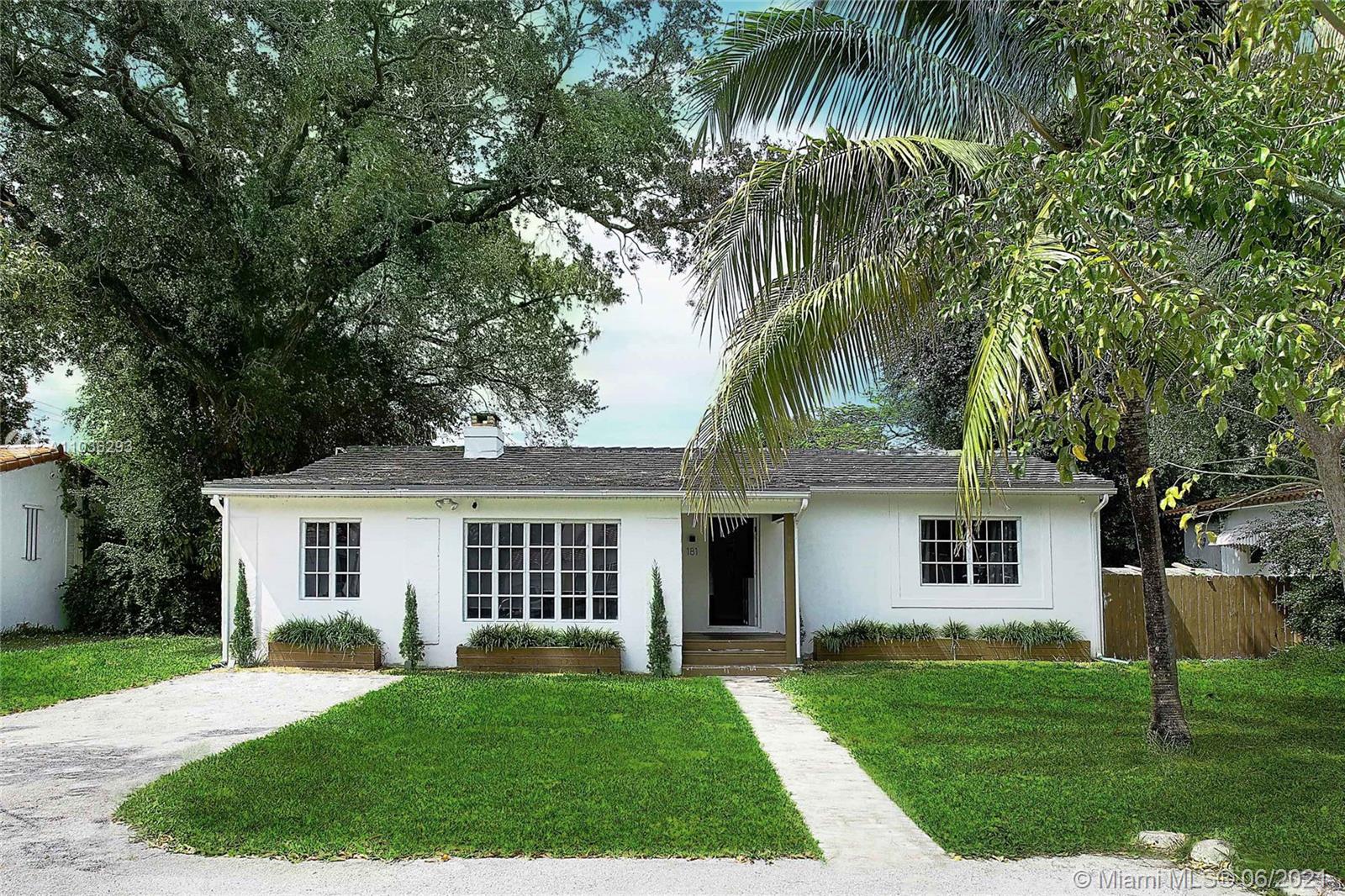 Welcome to a very elegant home surrounded by lush landscaping on a quiet, cul de sac street in the heart of Miami shores. This 3 bedroom, 2 bathroom offers 1470 sf home is located on 8100 Sq Ft lot and has a spacious backyard with ample space for a pool. The home has been renovated and features a split floor layout. Tile floors, fire place, gives this home an authentic feel with a modern charm; plenty of natural light in every room. Kitchen has been renovated and features wood cabinets, granite countertops, stainless steel appliances.  Come and fall in love with this dreamy home to make it yours! Virtual 3D tour is available via the link above.