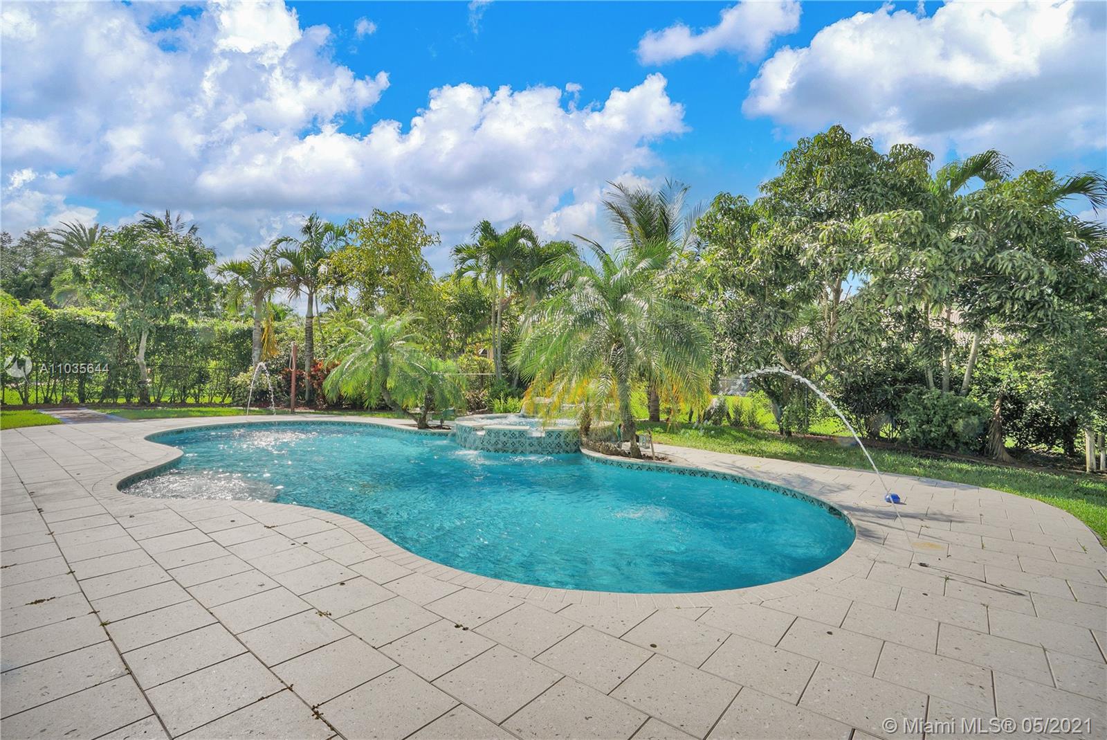 EXQUISITE ARCHITECTURAL DETAILS ABOUND IN THIS STUNNING 5/5 Plus Den. Imported Crown Molding and interior decoration, very New 3 ACs, New WIFI enabled Garage door, Outside Cameras, Pool with SPA, water fall, bubblers & water jets. Newly Painted Grant foyer Entry, Granite Built-Ins Formal Dining Room, Extraordinary custom Wall to Wall Entertainment Center, Large Granite Wet Bar, Wine Rack, Beautiful Kitchen with Double Oven, Preparation Island, Walk-In Shelved Pantry. Custom Built-in Office Room with Granite. Master Suite Features Sitting Area, Tray Ceiling, Spa-Like Master Bath, Newly Painted inside & Outside. Master bedroom has wood accent walls. Outside Large Kitchen with Marine wood. Award Winning Landscape. Walk-way all around the house. Tropical Fruit Trees all around the house.