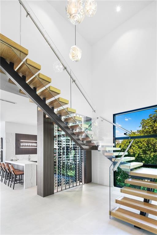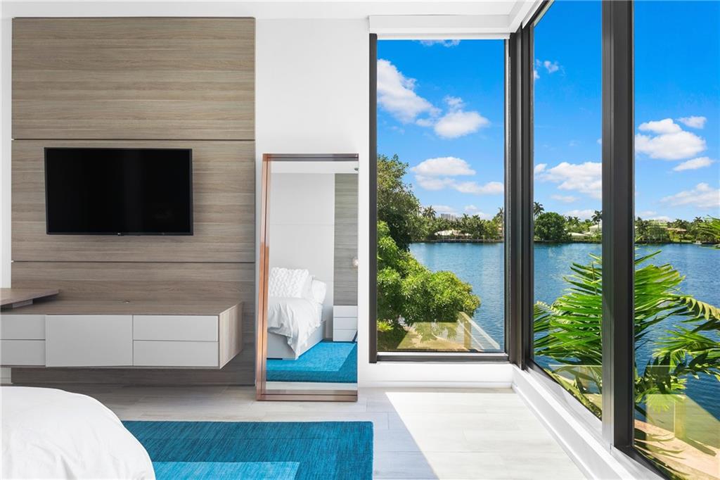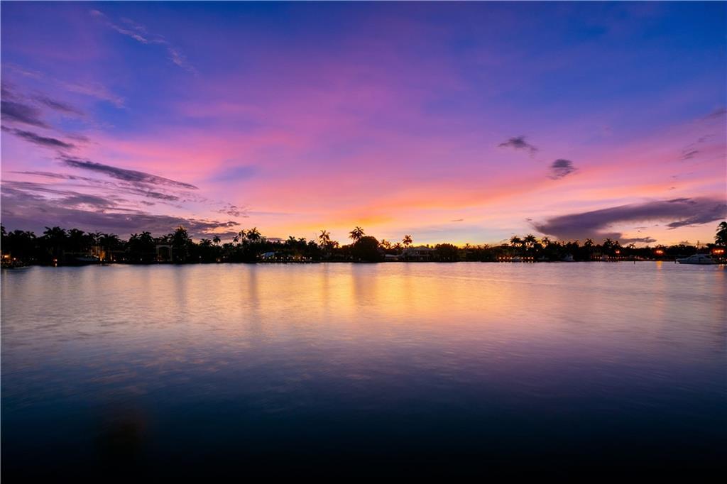 Beautiful modern estate located on Sunset Lake w/ wide water views & easy ocean access! Newer seawall & concrete dock for the avid boater. Open floor plan w/ features that include a wet bar w/ fridge & wine cooler, home theater, kitchen w/ top of the line appliances, gorgeous cabinetry & an extra back kitchen. Light & bright w/ floor to ceiling windows. A floating glass staircase w/ European oak steps leads upstairs to the en-suite guest rooms & large master suite w/ private balcony, dual walk-in closets, water closets & morning bar. Outdoor living space w/ pool, BBQ & fire table. Home is equipped w/ elevator, natural gas, backup generator, custom landscape lighting, 2 laundry rooms & central vacuum system. 3 car garage w/ room for lifts for poss 6 spaces. Furniture negotiable.