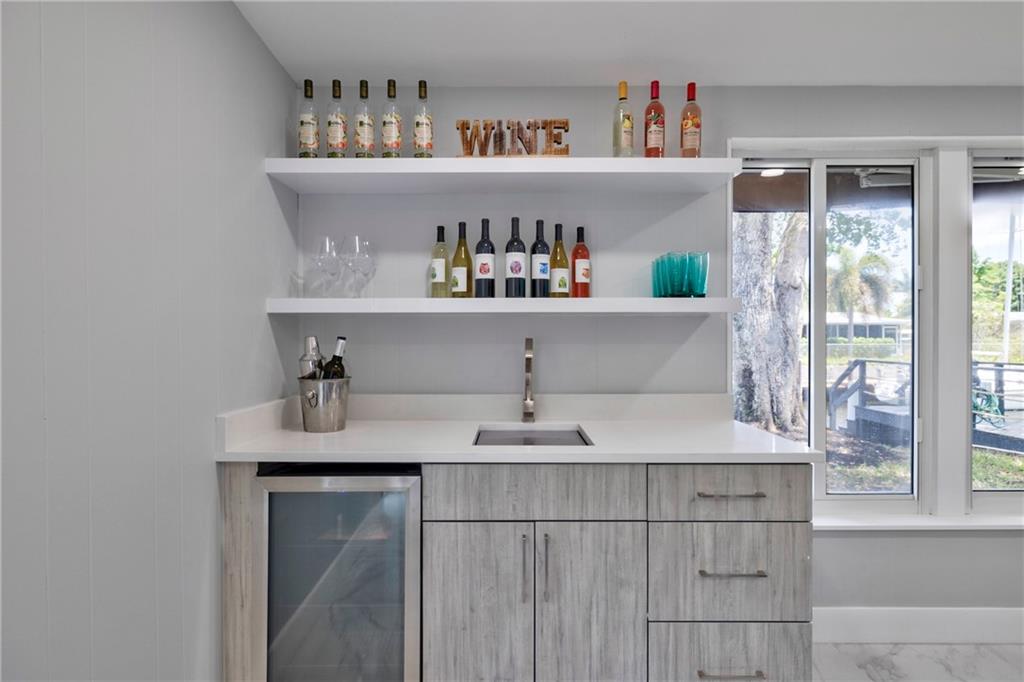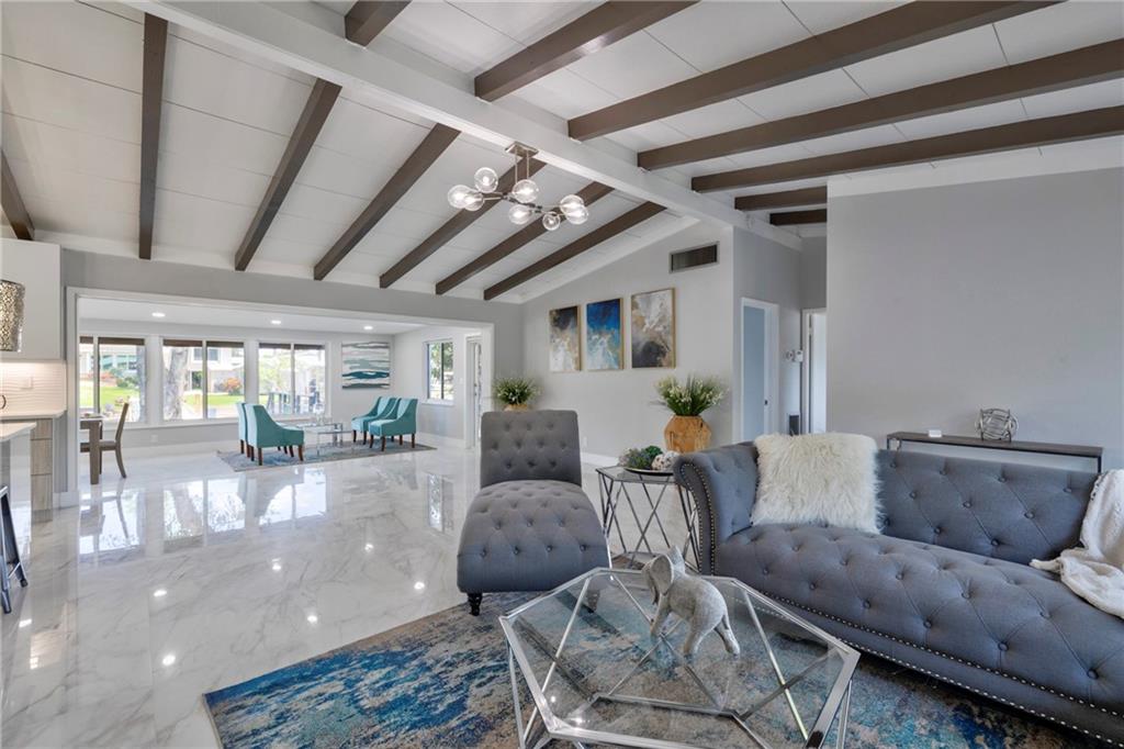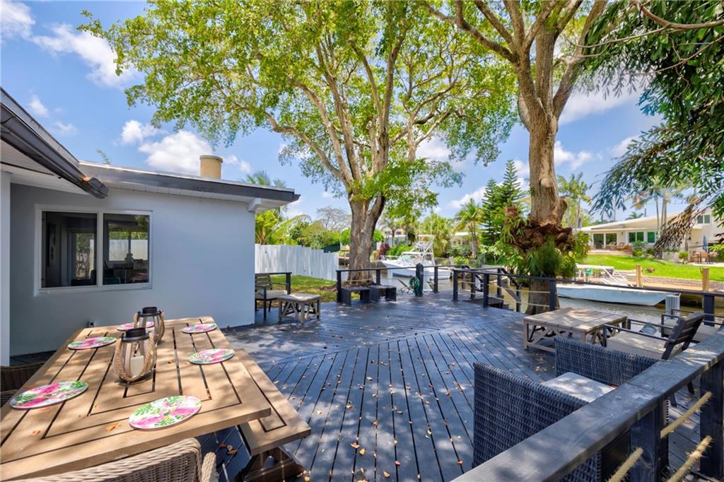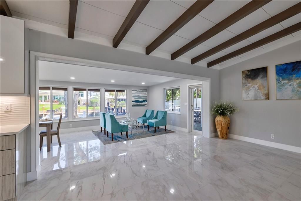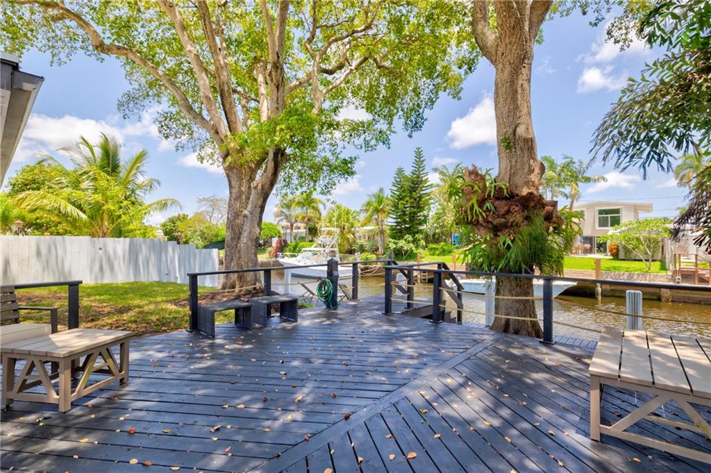 WOW! Ocean access- no fixed bridges, bring your BOAT! This home is so spacious! Spectacular from the the NEW roof, impact windows and doors down to the polished tile (marble looking) floor and everything between! The kitchen is a work of art! Handmade cabinets, quartz countertop, HIGH END appliances! Volume ceiling with beams oozes charm. Wet bar, dining and sitting area with a view to die for! New irrigation and sod. Mature trees. Brand new HUGE wood deck. Dock has power. If you think the pictures look good, wait till you live here!