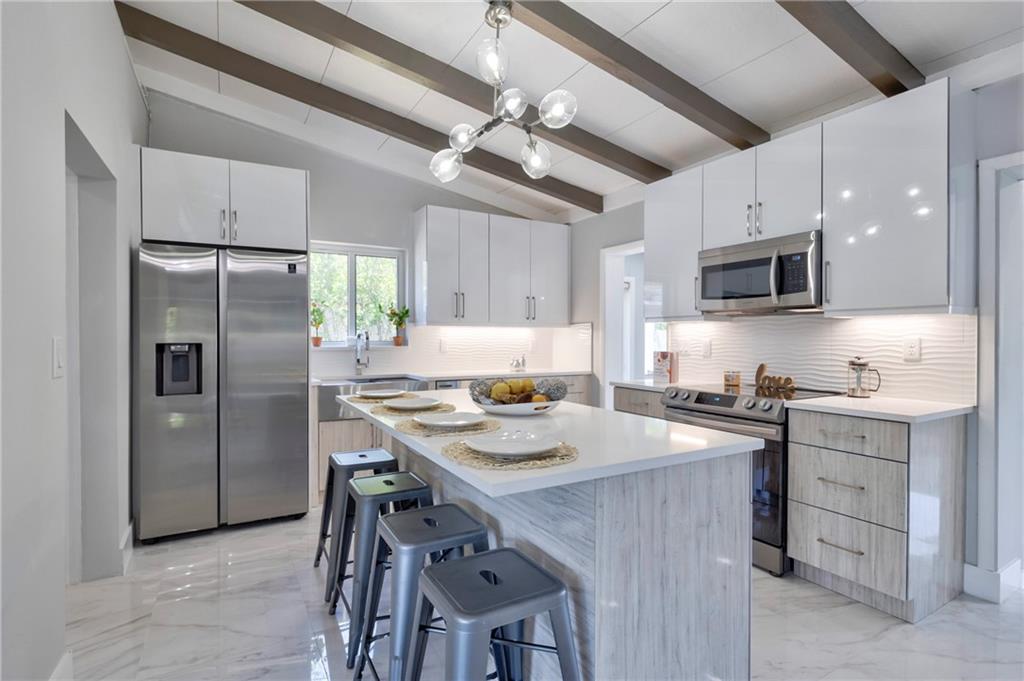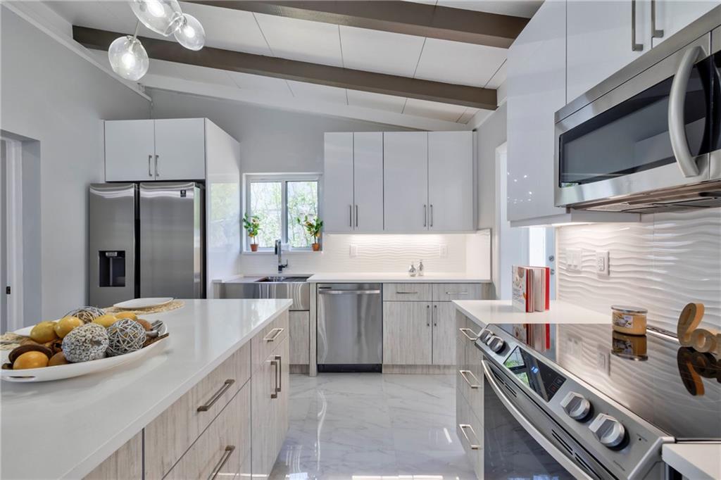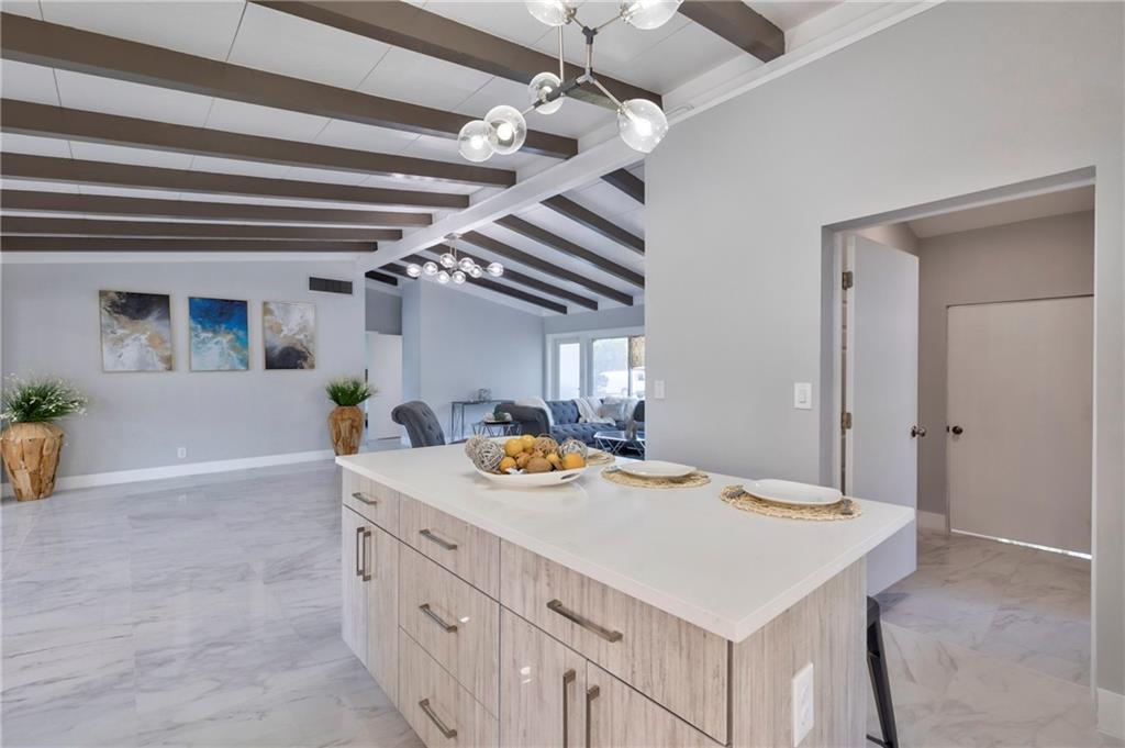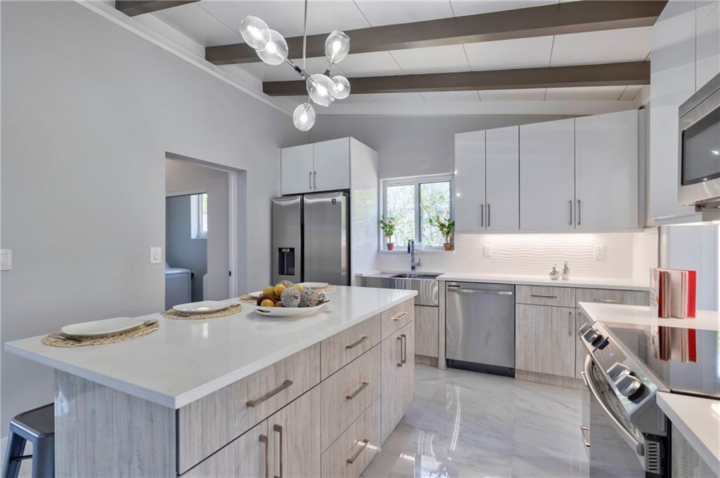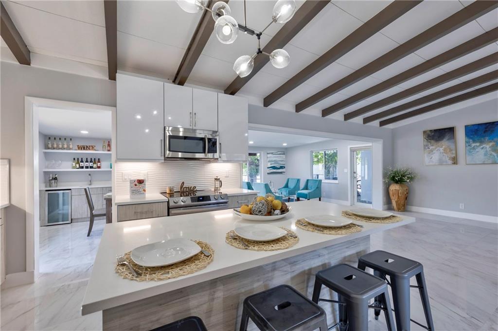 WOW! Ocean access- no fixed bridges, bring your BOAT! This home is so spacious! Spectacular from the the NEW roof, impact windows and doors down to the polished tile (marble looking) floor and everything between! The kitchen is a work of art! Handmade cabinets, quartz countertop, HIGH END appliances! Volume ceiling with beams oozes charm. Wet bar, dining and sitting area with a view to die for! New irrigation and sod. Mature trees. Brand new HUGE wood deck. Dock has power. If you think the pictures look good, wait till you live here!