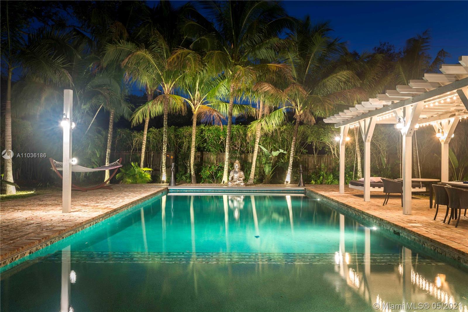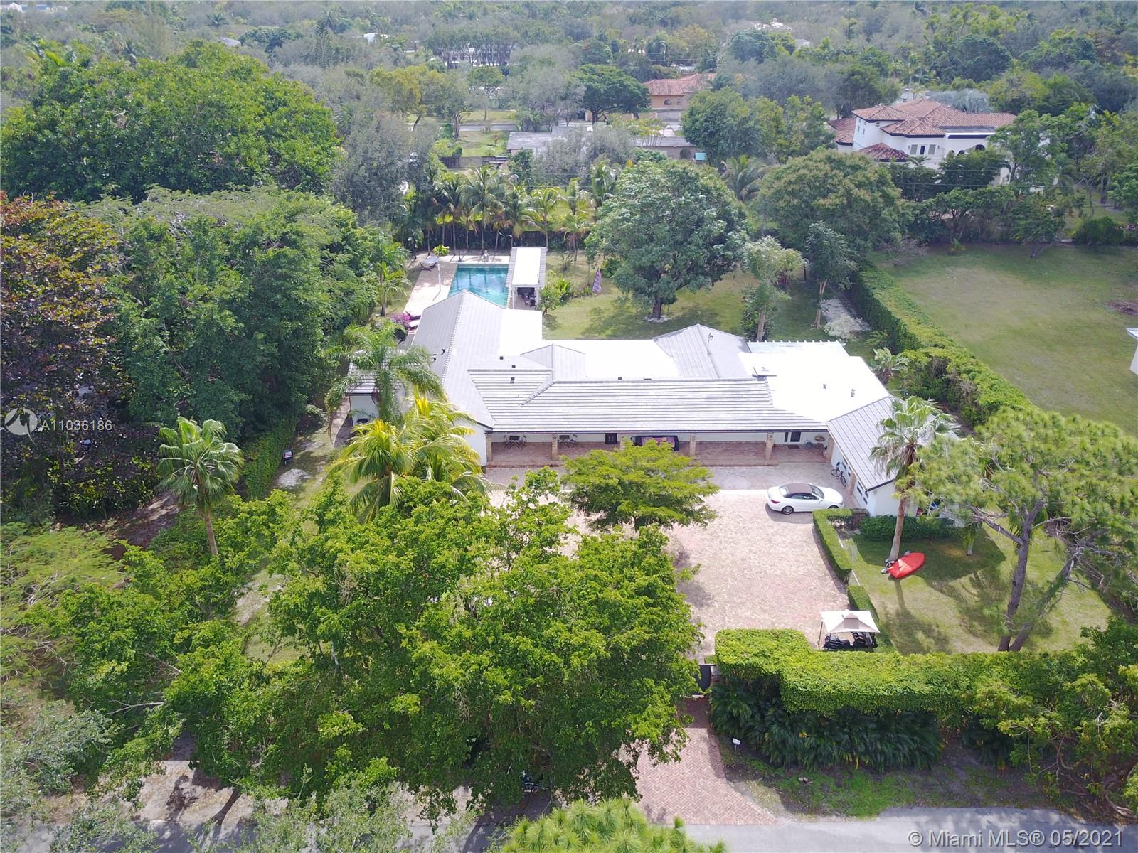 Coconut Grove meet Pinecrest! Totally renovated in 2017 with over $525K in updates. This gorgeous nearly 5,000 Sqft North Pinecrest home was designed with the highest craftmanship and attention to details. Features 5BR 5.5BA all en-suite, powder room, porcelain tile floors throughout, impact windows, new roof (2017), high ceilings, wood burning fireplace, laundry room, high wood beamed ceilings and two-car garage. the master suite offers two walk-in closets, Jaccuzzi tub, steam shower and dual sinks. the oversized kitchen with white and Wenge wood cabinets, quarts countertops, gas range/oven, stainless steel appliances. the main living area opens to a large, covered patio overlocking the lush 39,000+ Sqft. lot and oversized 20 x 60 salt chlorinated pool, ideal for entertaining.