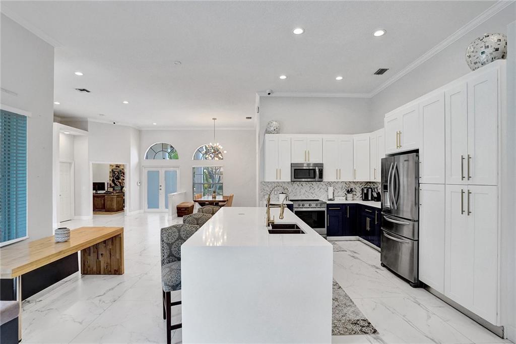 Now Offering this Gorgeous 5 Bedroom 3 Bath Corner-Lot home. Located in the Beautiful Ridges Community. Rare triple split open concept floor plan with professionally designed upscale finishes. Exquisite kitchen is a chef's dream with an oversized white quartz island and countertops. Stunning calacatta porcelain floors in living areas. Large size bedrooms, all with built-in closets. Beautifully appointed large bathrooms. Oversized backyard with Pool and green space! Additional items at the property** BRAND NEW A/C** **REPLACED ALL FLOORING IN BEDROOMS ** NEW WASHER ** AIR VENTS PROFESSIONALLY Sanitized & CLEANED ROOF CLEANED** BACK DOORS PAINTED**