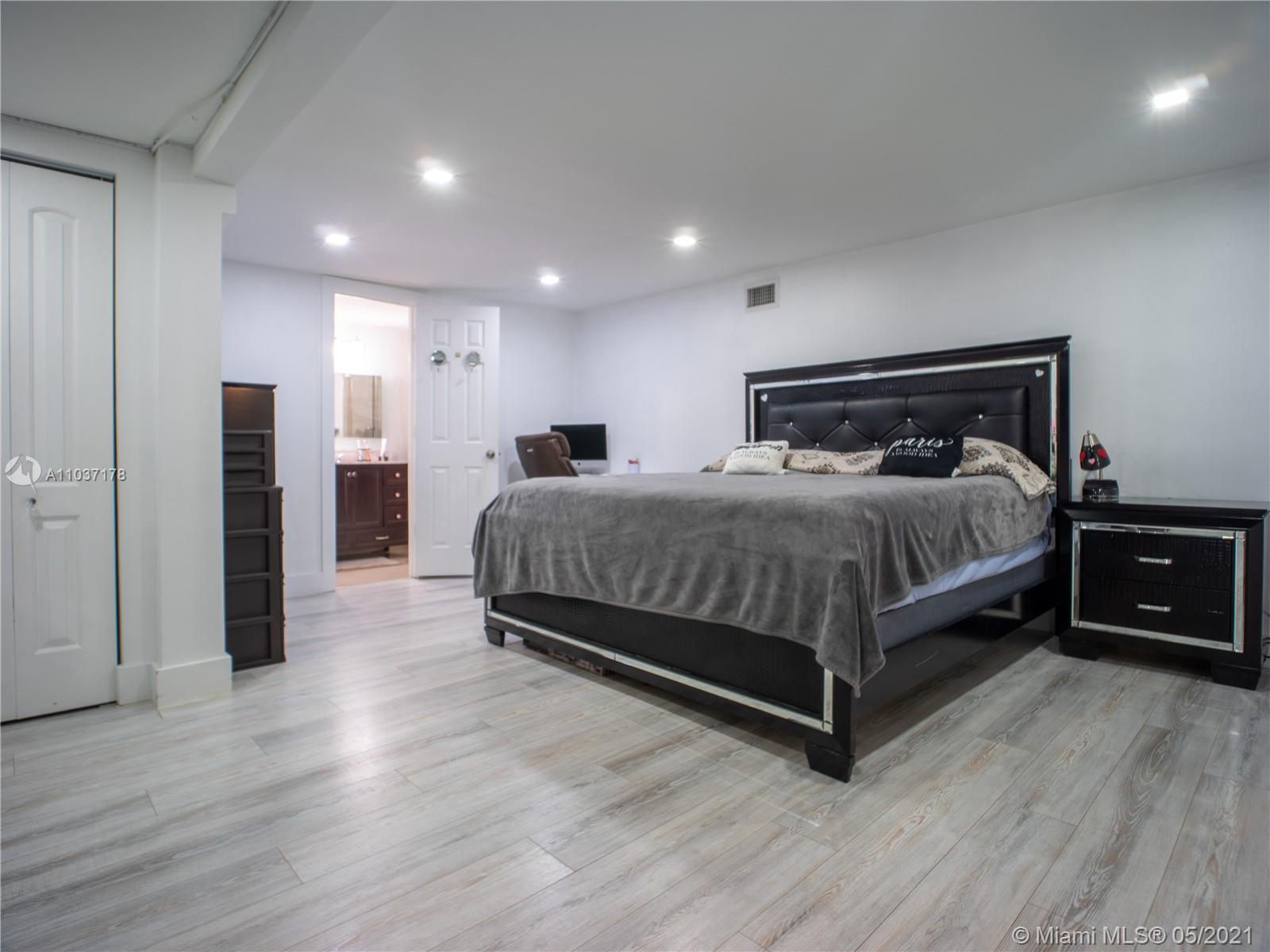 Spacious 4/3 home in beautiful Palm Springs North. Completely remodeled, new kitchen has granite counter tops with stainless steel appliances, new bathrooms, floors, baseboards, recessed lighting, impact windows, roof 5 years old & paver driveway done just 2 years ago. Currently being used as 3/2 with a 1/1. The main house is a 3/2 has a spacious master bedroom w/ large walk in closet, family room, laundry room, huge yard, covered patio with an outside bar and cooking area along with a gated driveway on east side of house. The 1/1 has it's own entrance & small patio. This room can be accessed from the main house if desired. Ideal for a family with Grandparents. Security Camera System included. Home is move in ready. Owner has meet all Miami Dade County requirements.
