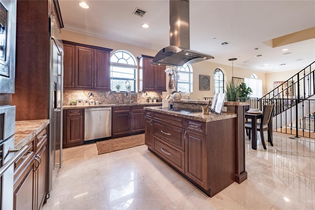 3 bdrm 3.5 Bath Townhome with 2 car Garage built in 2010. End unit. East of Federal. Walk to the beach! Amazing rooftop terrace, with Jacuzzi, and views of Lake Santa Barbara and the Intracoastal. Bring your boat! 32 foot boat dock included. No fixed bridges and only 15 minutes to Hillsborough inlet and the ocean. Spacious/open floor plan, ideal for entertaining. Large kitchen w/granite countertops, GE appliances, & walk-in pantry. 10 ft ceilings & 8 ft doors. Spacious Master Suite has hardwood floors and walk-in closet. Marble and hardwood floors, crown molding, and your own elevator! All hurricane impact windows and doors. Low HOA includes your landscape maintenance and dock. Owner agent, no private showings.