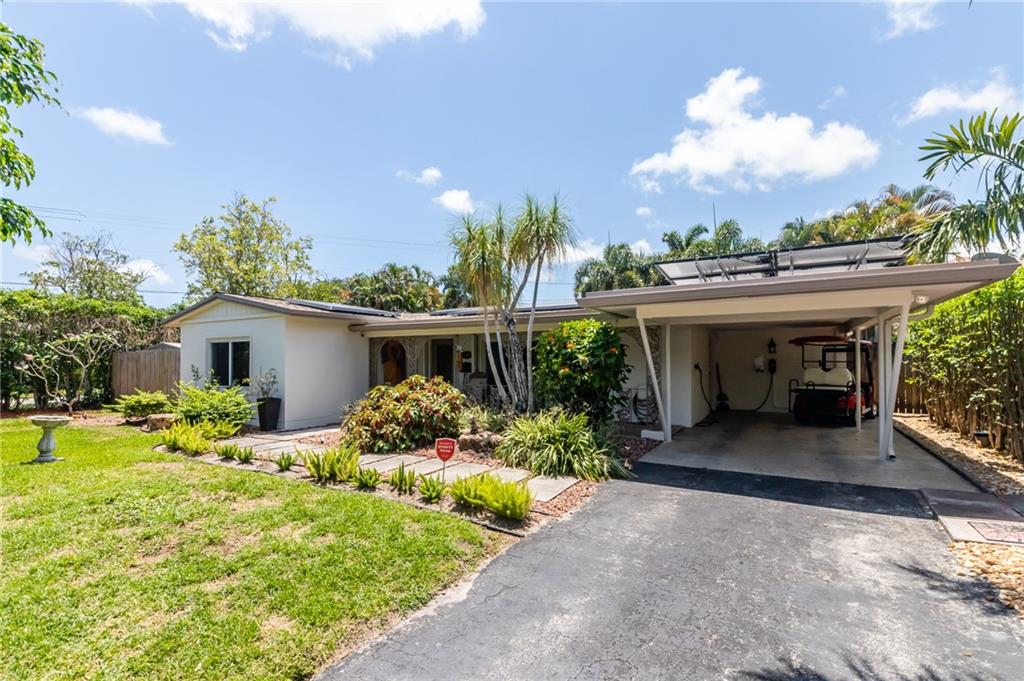 3/2 on an 8,200+ SF Corner Lot surrounded by hedges. Carport w/ Tesla Charger. This smart home is not only adorable inside with a perfect split plan layout, separate dining room, and office/indoor laundry room but has all the right upgrades: 2017 roof, 2020 25 seer ($12k) Lennox (10yr wnty) w/ whole home air purifier & humidity control, 2019 FULL Tesla solar install ($40k+ w/ 20yr wnty). NO FPL Bill and whole home energy backup provided by TWO Tesla Powerwalls in the event of power failure. Electric updated 2019. You might be getting an idea of the level of upgrades and technology installed. The owner only upgrades with THE BEST. Less than 3 miles to the Ocean, 2 miles to Las Olas Night Life Dining & Shopping. Quick access to 95 / 595 for commutes & under 10 min to FLL Airport. NO HOA.