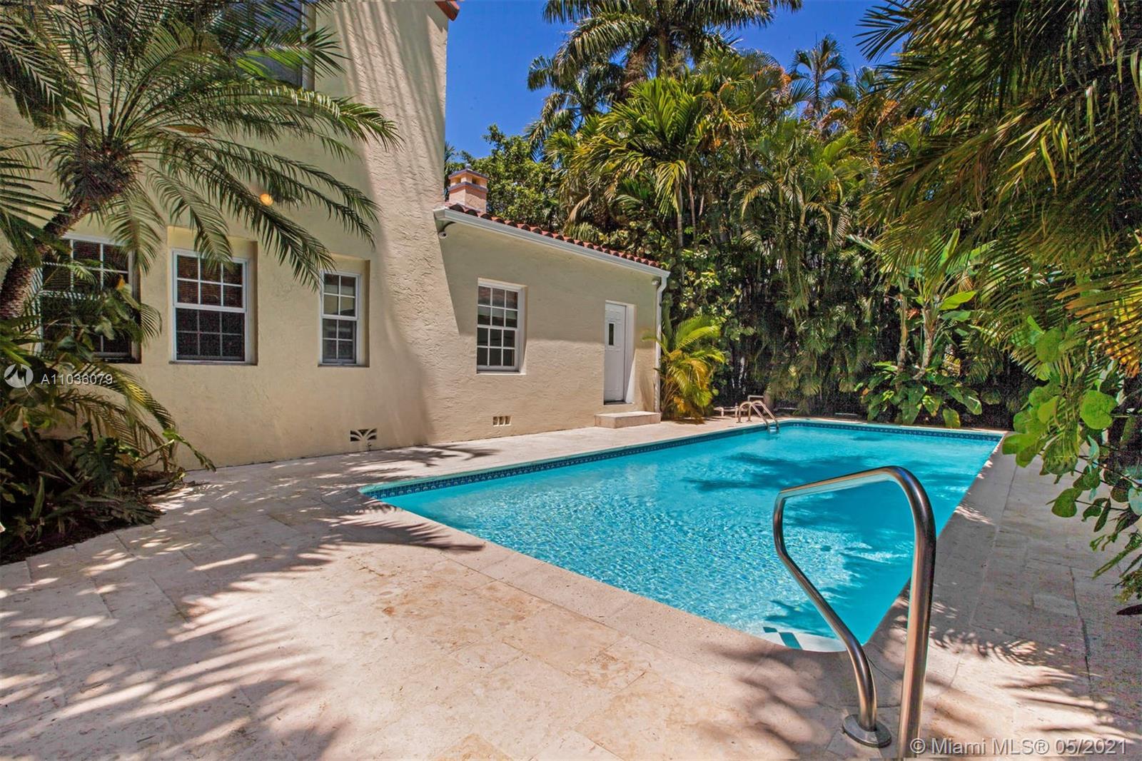The perfect trifecta awaits you on Upper N Bay Rd, a charming house w cabana, a romantic palm garden w a pool & wishing well & an oversized lot of 11,468 SF. The home was built in 1933 & designed in a Spanish style by Harold Stewart. Living room has a baronial fireplace, cathedral ceiling & a pecky cypress stairway to the 2nd floor bedrooms. Bedrooms were all designed w 3 exposures for maximum light & air flow. The dining room opens to the private oasis of the rear garden & pool area. The pool is flanked by the main house & the completely rebuilt cabana/guest house which is a legal living unit. Located one block from La Gorce Golf Course, this Upper North Bay Road location will always be the most exclusive & desirable single family neighborhood in Miami Beach.
