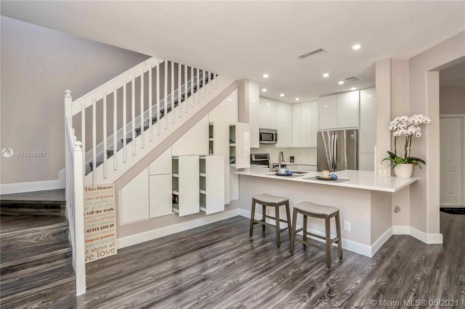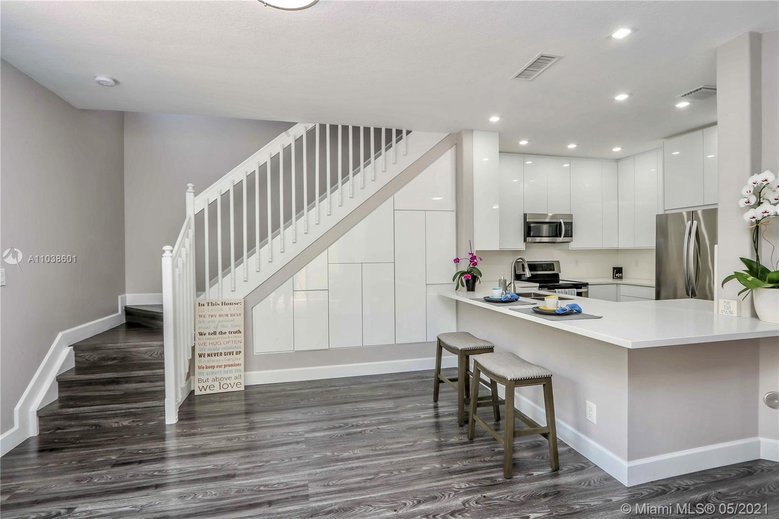Incredible modern Doral townhome with top of the line finishes. Located in Costa Brava gated community - in the most desirable part of Doral with top public schools. Breathtaking open white on white European (designer) kitchen with custom built in cabinetry. Cabinet doors to the ceiling for a sleek modern look. Matching European built in cabinetry under the stairs as well. Stainless steel appliances & square sink finish off the modern touch w/white quartz. 3 gorgeously remodeled baths w/contemporary finishes. Spacious fenced yard & covered patio w/ extended pavers. AC - 2019. No expense spared. Even the garage has cabinetry. Minutes to Trump Doral Golf Resort, City Walk, MIA airport, excellent schools, expressways & fine dining/shopping. This is the hottest location now in Miami!