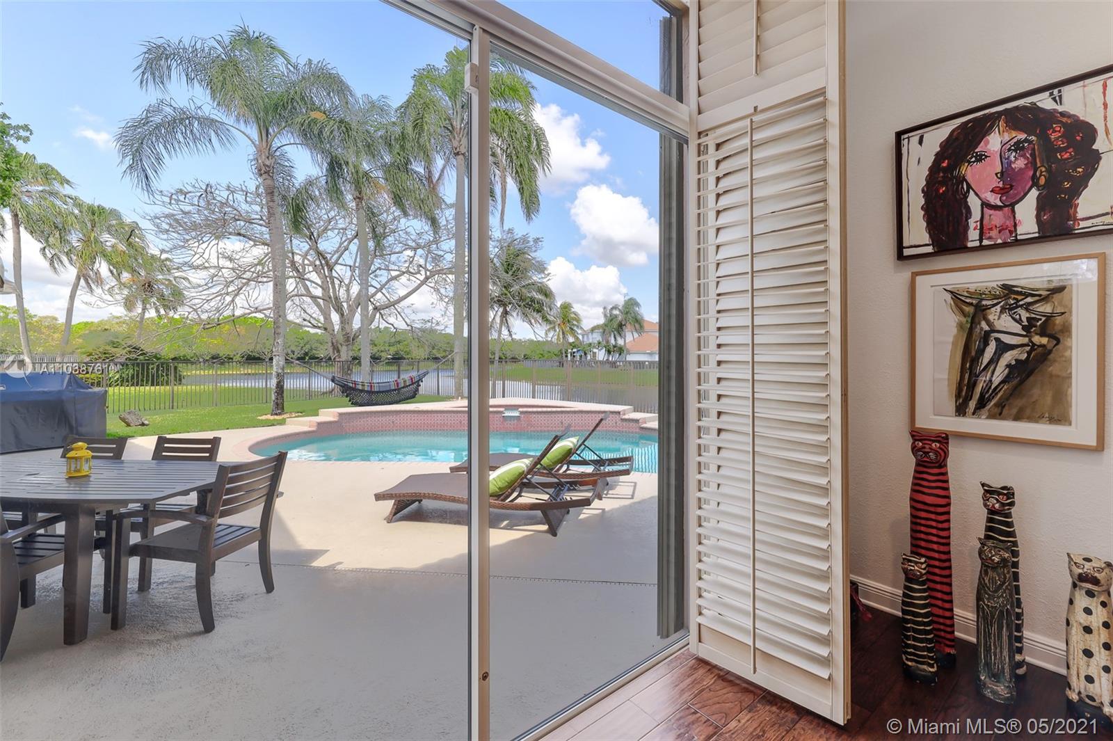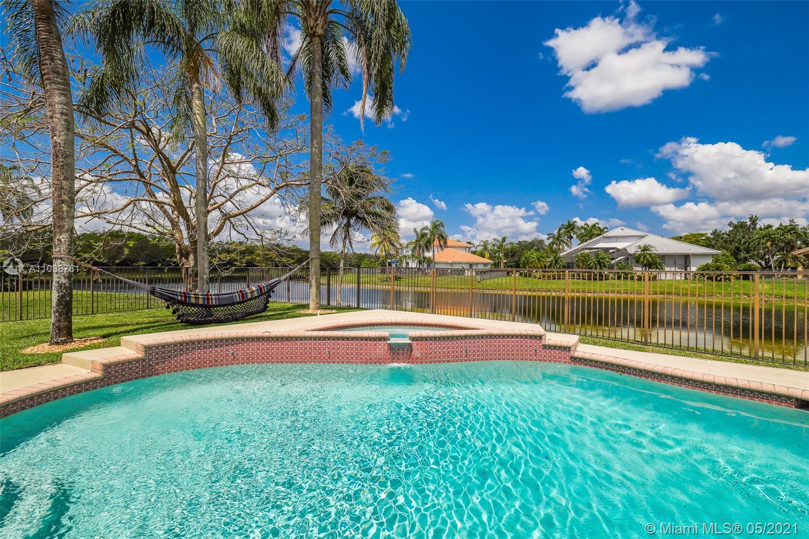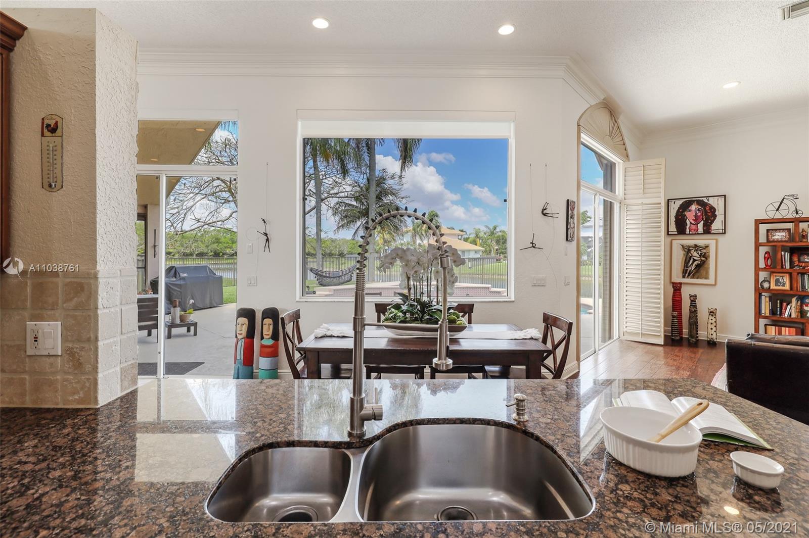 NEW ROOF. Welcome to this spacious and bright waterfront home. Premium pie shape lot and unobstructed waterview. 4 bedroom, 3 bathdroom. On a cul-de-sac in Weston Hills Country Club. Enjoy amazing views from kitchen and social areas. Engineered wood floors, SS appliances, granite countertops. Cabana bath nicely remodeled. Master bathroom with separate dual sinks, walk-in shower and tub. 3 car garage, open floor plan with volume ceilings, accordion shutters. Weston Hills is a picture perfect community with easy access of both I-75 and I-595.