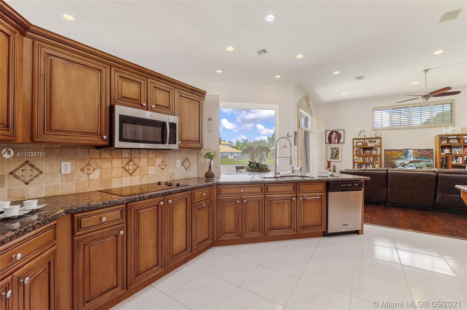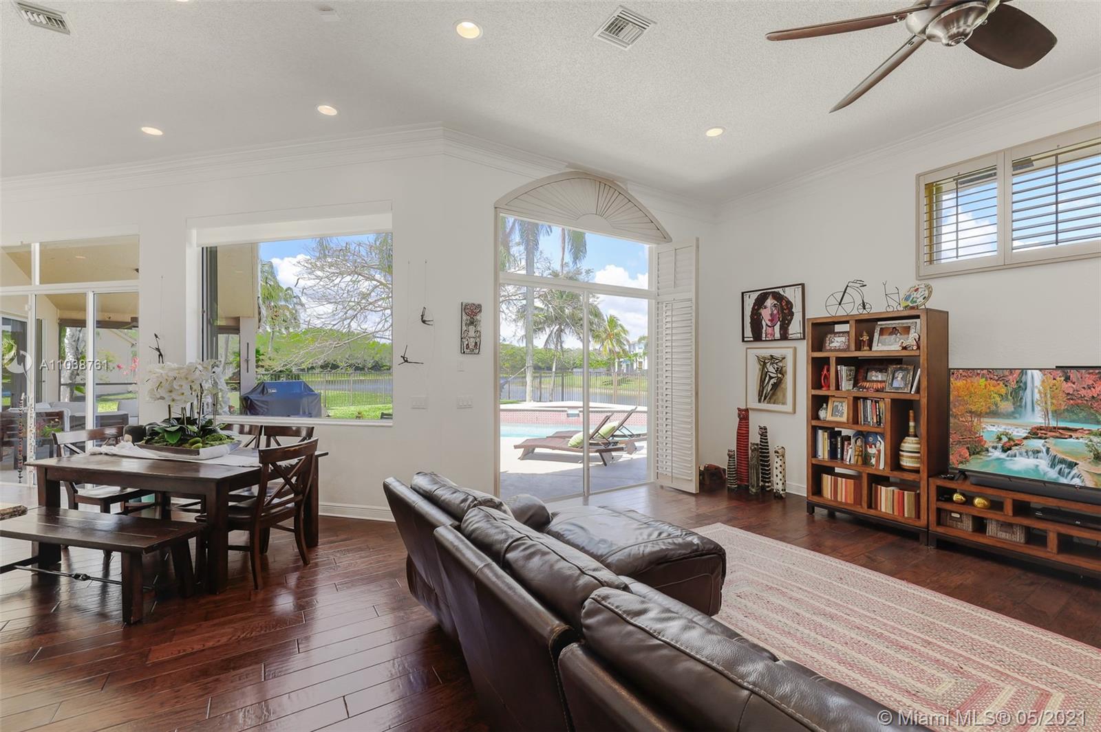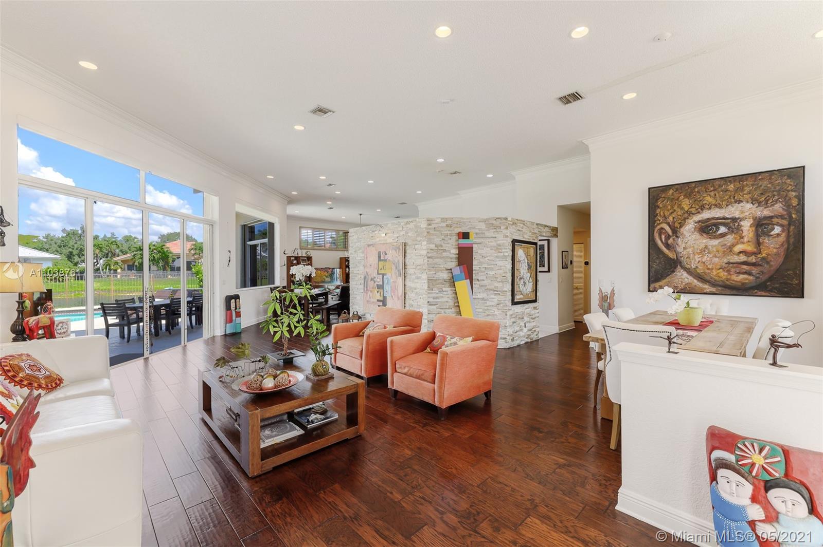 NEW ROOF. Welcome to this spacious and bright waterfront home. Premium pie shape lot and unobstructed waterview. 4 bedroom, 3 bathdroom. On a cul-de-sac in Weston Hills Country Club. Enjoy amazing views from kitchen and social areas. Engineered wood floors, SS appliances, granite countertops. Cabana bath nicely remodeled. Master bathroom with separate dual sinks, walk-in shower and tub. 3 car garage, open floor plan with volume ceilings, accordion shutters. Weston Hills is a picture perfect community with easy access of both I-75 and I-595.