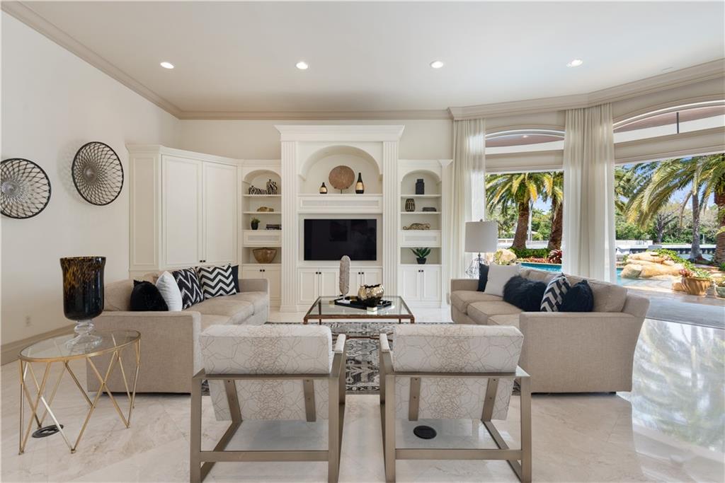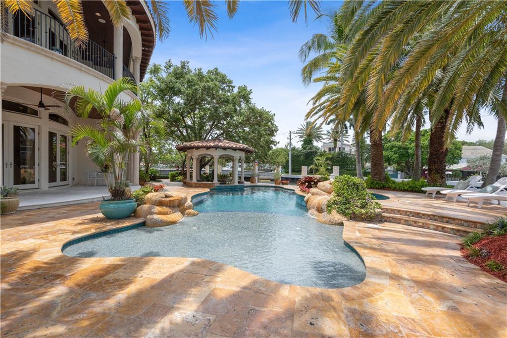 Spectacular 6BR+Bonus/6+1BA/3CG+, pool home boasts 300' of waterfrontage perfectly positioned on one of the premiere expansive point lots in Rio Vista Isles. Enjoy 180+ degree water views throughout this exquisite estate. Chef's Kitchen (w/ gas), grand executive office/library (or 6th BR), 2 living rooms (one up & one downstairs), quadruple split floor plan, all ensuite bedrooms. Smarthome, whole house generator. True resort-style home--swim-up summer kitchen w/ submerged seating, free-form pool & hot tub, waterfall, loggias, concrete dock w/ floating dock, cabana bath, lush tropical landscape offering a park-like feel in your very own tropical paradise. Prime Boating-Great turning radius on extra-wide canal only minutes to Intracoastal, Lauderdale Yacht Club & Inlet