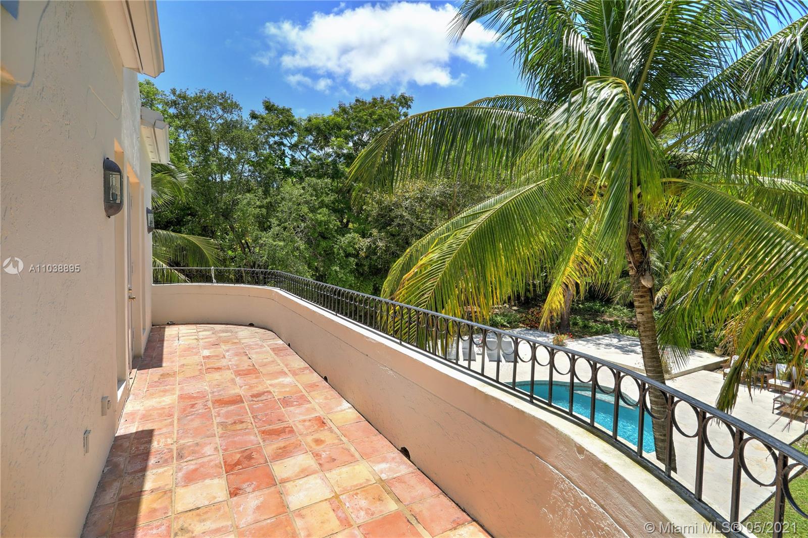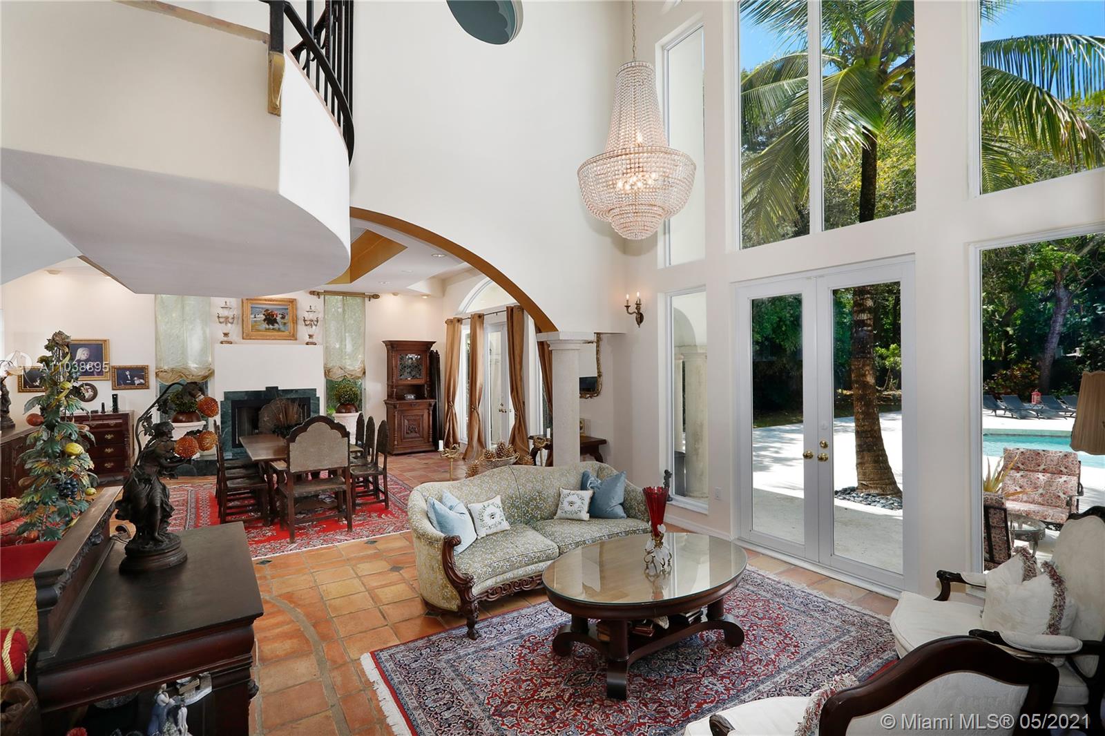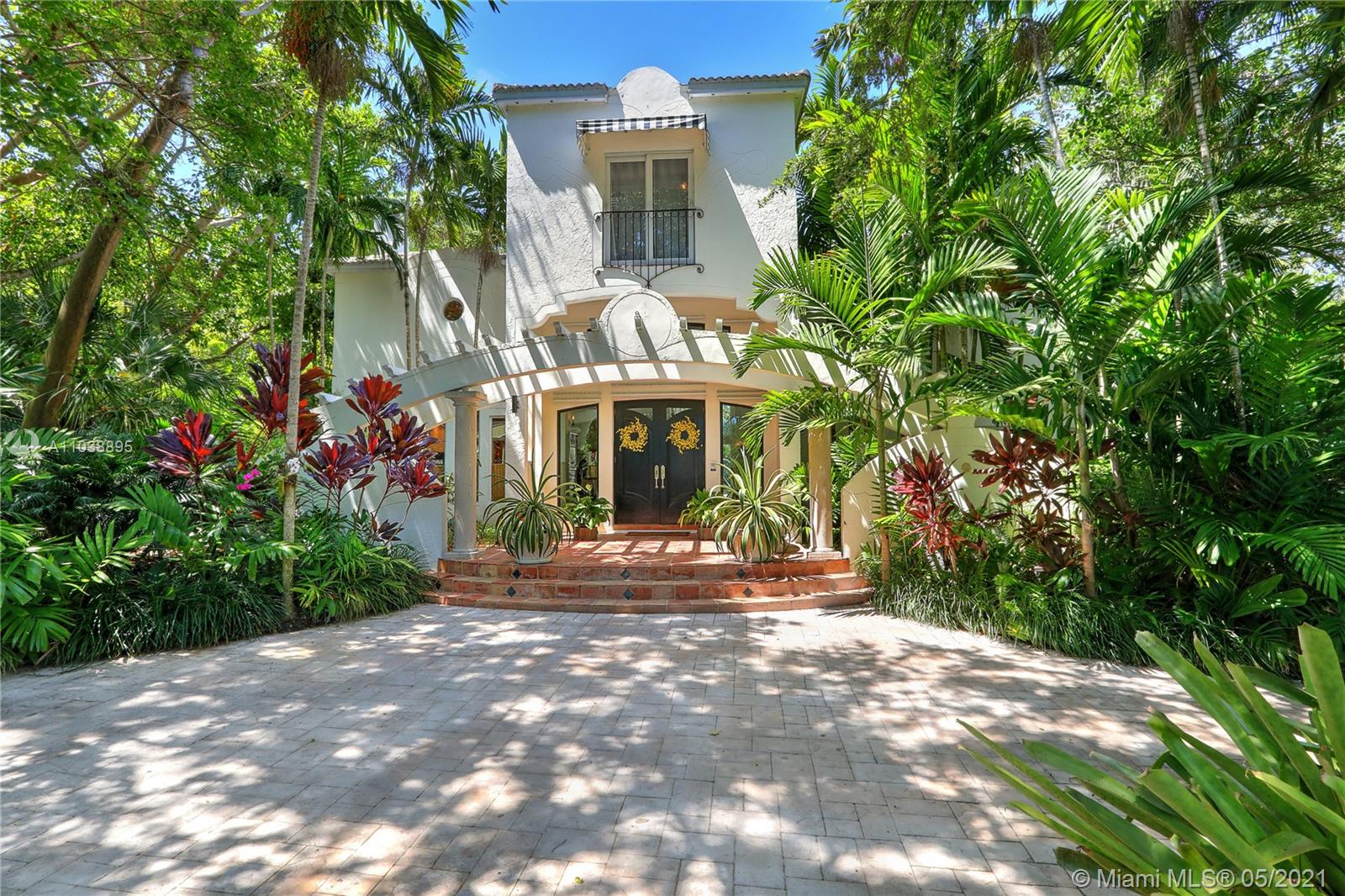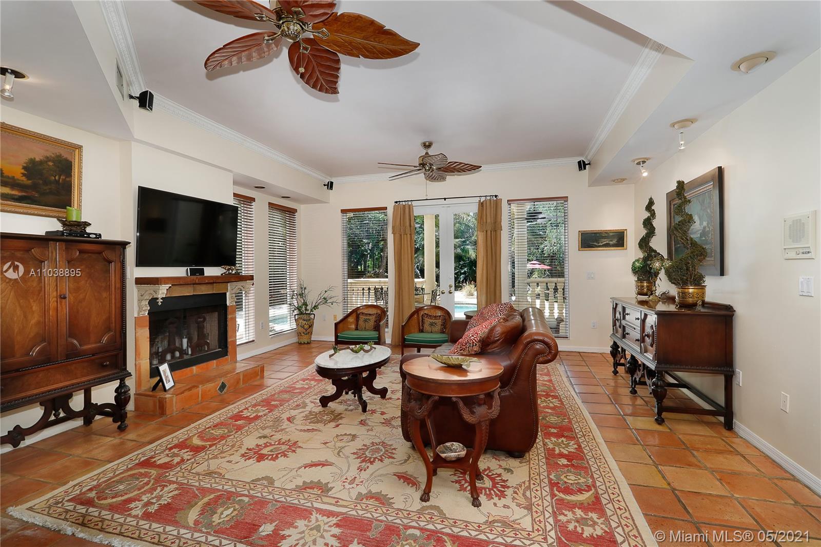 Tucked away on an ultra-lush 25,700 SF lot in guard-gated Hammock Lakes, this Art Deco-style 5 BR, 3.5 BA home is a wonderful opportunity! Designed for entertaining inside & out, it includes a foyer entry that leads to large formal liv & din rooms, the kitchen has gorgeous garden views, center island w/ gas range, & breakfast area, & is open to the spacious, sunlit fam rm. The formal & informal living spaces incl banks of French drs opening to covered patios, pool w/ fountains, & patio. 2nd floor primary suite is an oasis w/ sitting rm, large walk-in closets, marble BA w/ separate tub & shower, & private balcony. 2 more BRs upstairs & 2 down make this a true split plan. Sunset Elementary district, 2-car garage, laundry rm, roving security, circular drive, impact glass, & more!