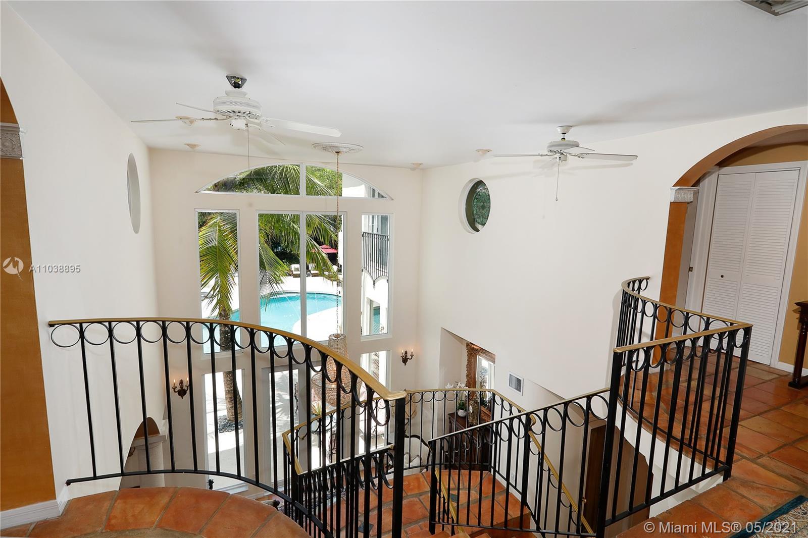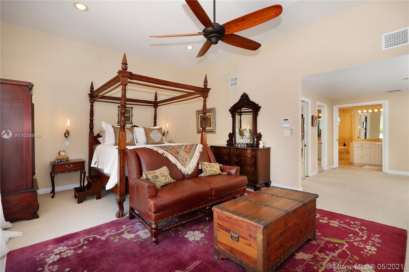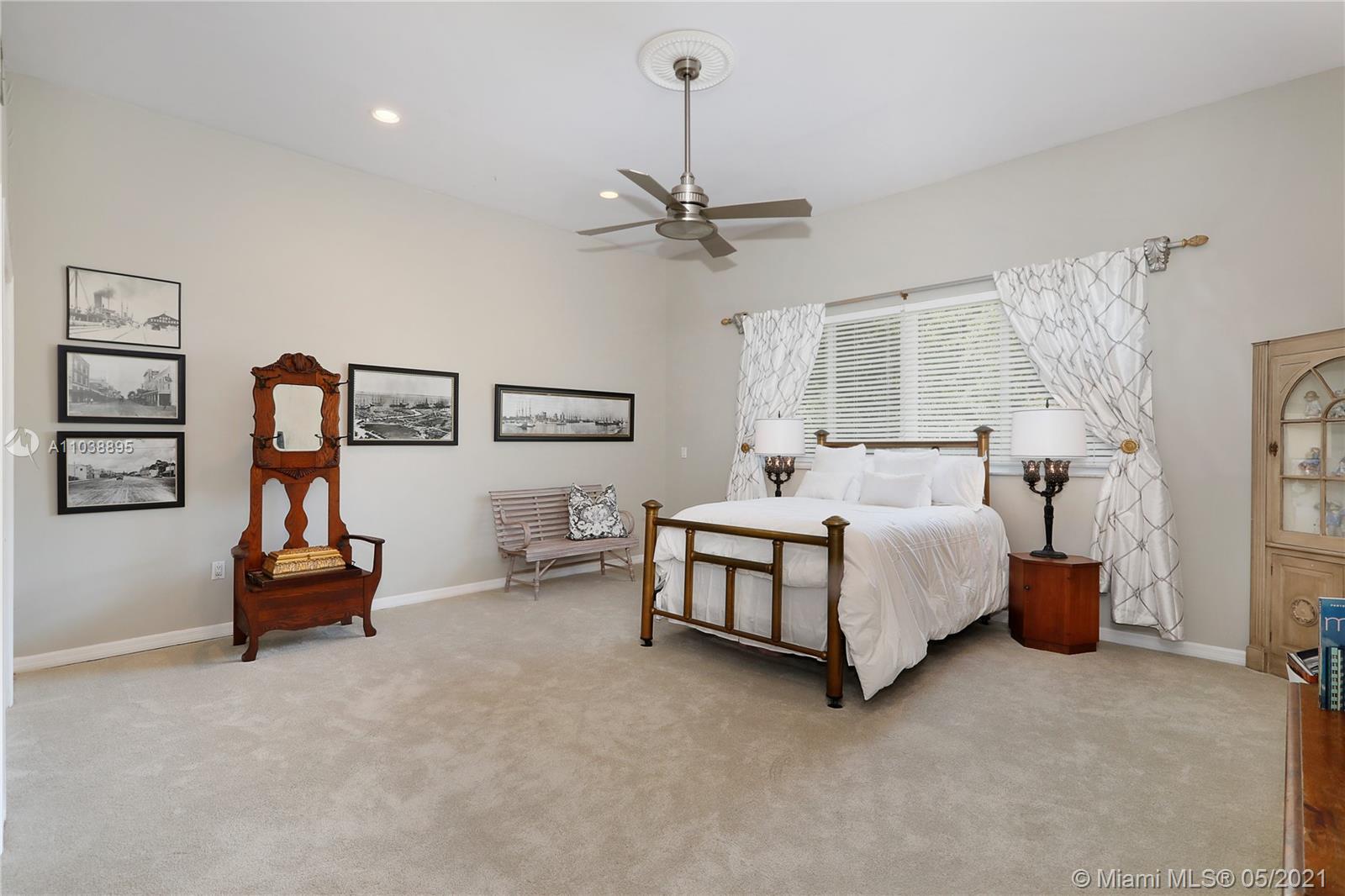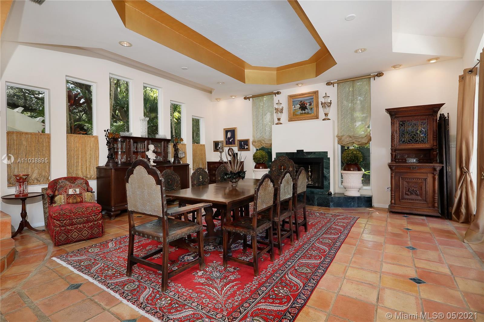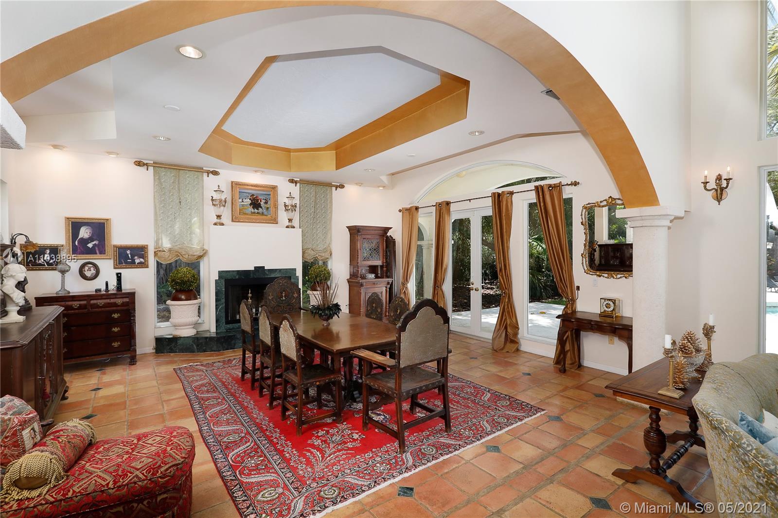 Tucked away on an ultra-lush 25,700 SF lot in guard-gated Hammock Lakes, this Art Deco-style 5 BR, 3.5 BA home is a wonderful opportunity! Designed for entertaining inside & out, it includes a foyer entry that leads to large formal liv & din rooms, the kitchen has gorgeous garden views, center island w/ gas range, & breakfast area, & is open to the spacious, sunlit fam rm. The formal & informal living spaces incl banks of French drs opening to covered patios, pool w/ fountains, & patio. 2nd floor primary suite is an oasis w/ sitting rm, large walk-in closets, marble BA w/ separate tub & shower, & private balcony. 2 more BRs upstairs & 2 down make this a true split plan. Sunset Elementary district, 2-car garage, laundry rm, roving security, circular drive, impact glass, & more!