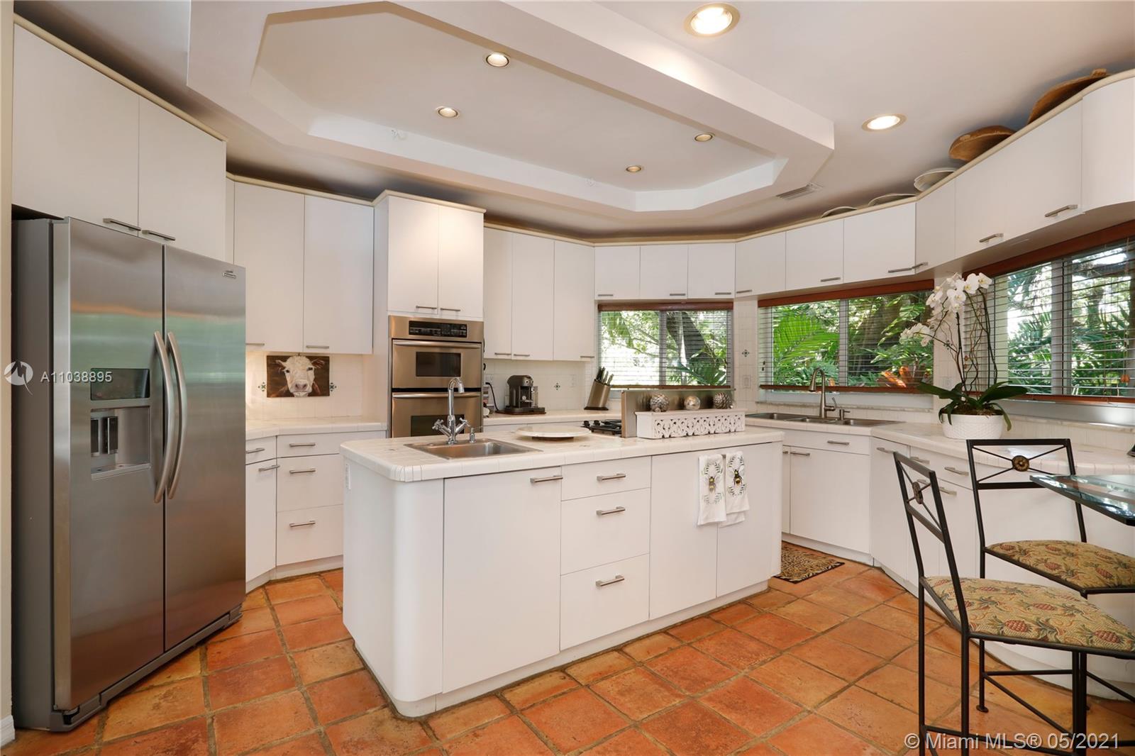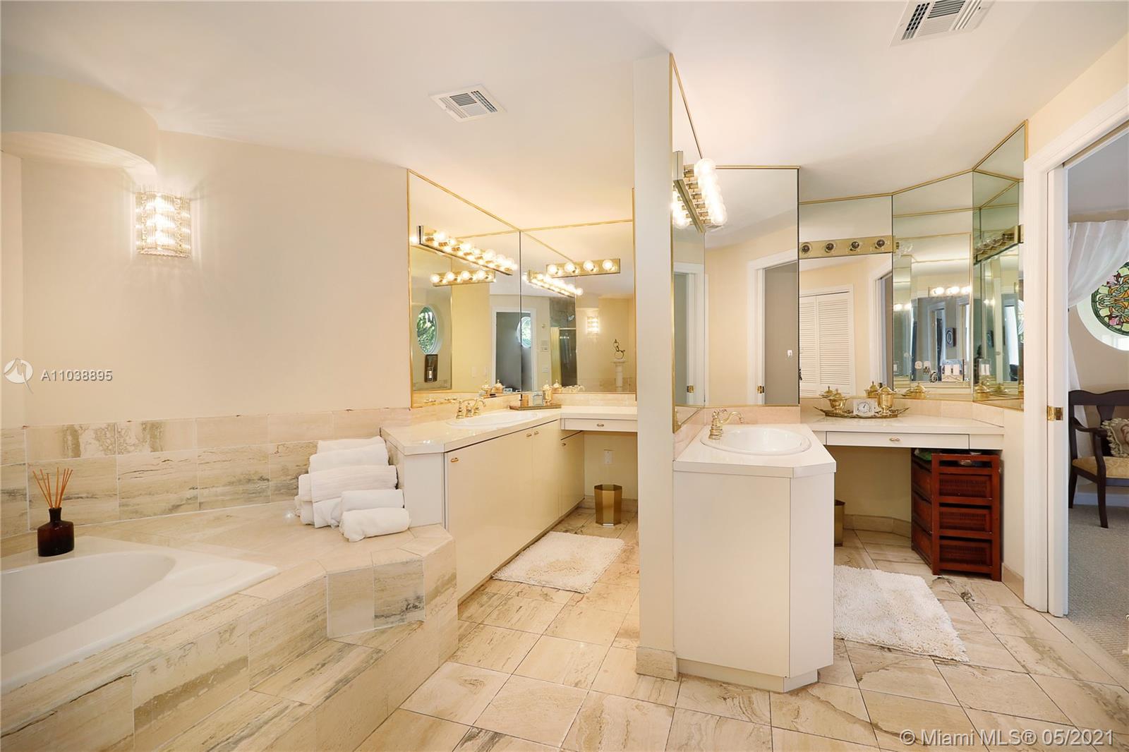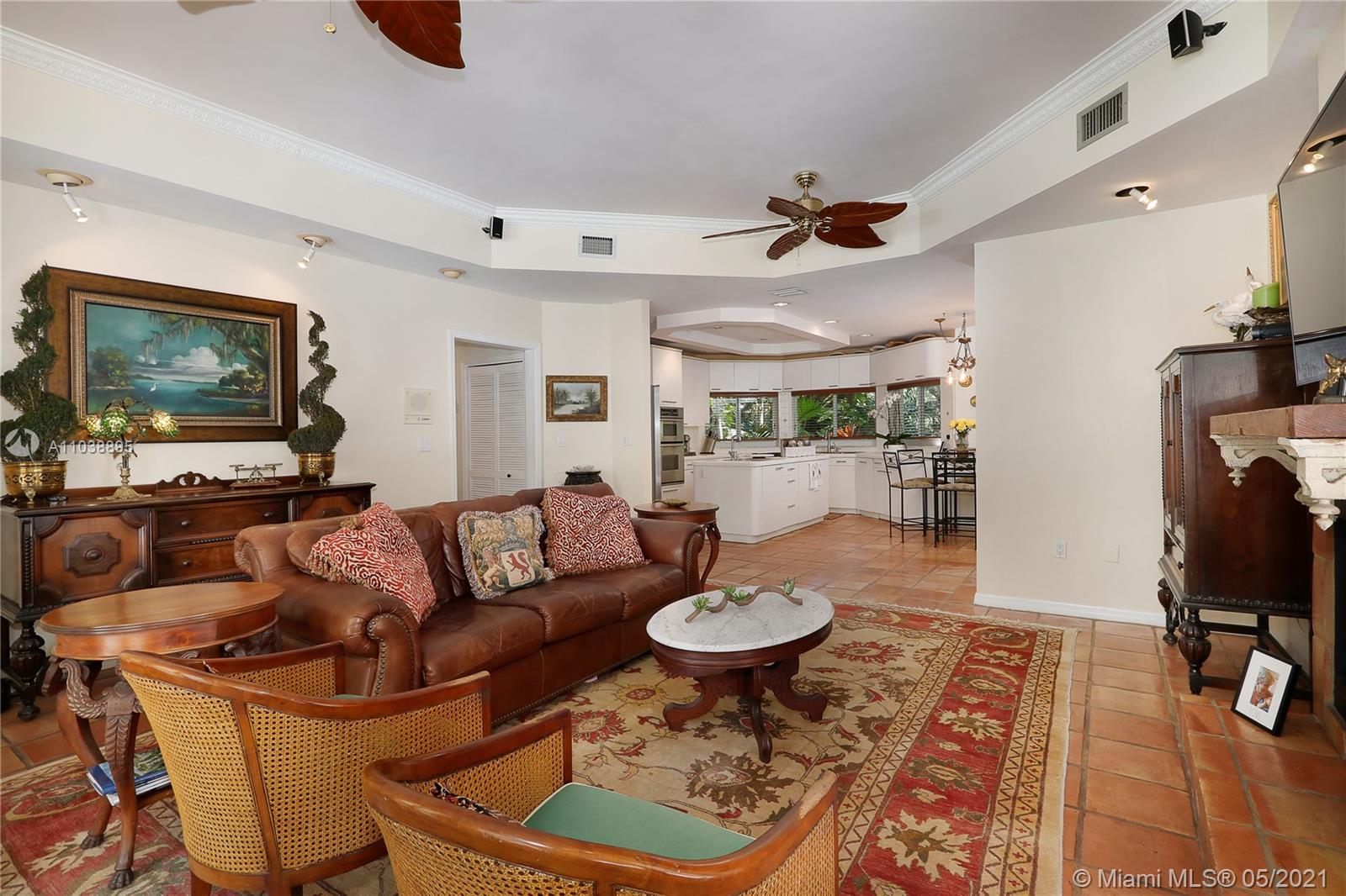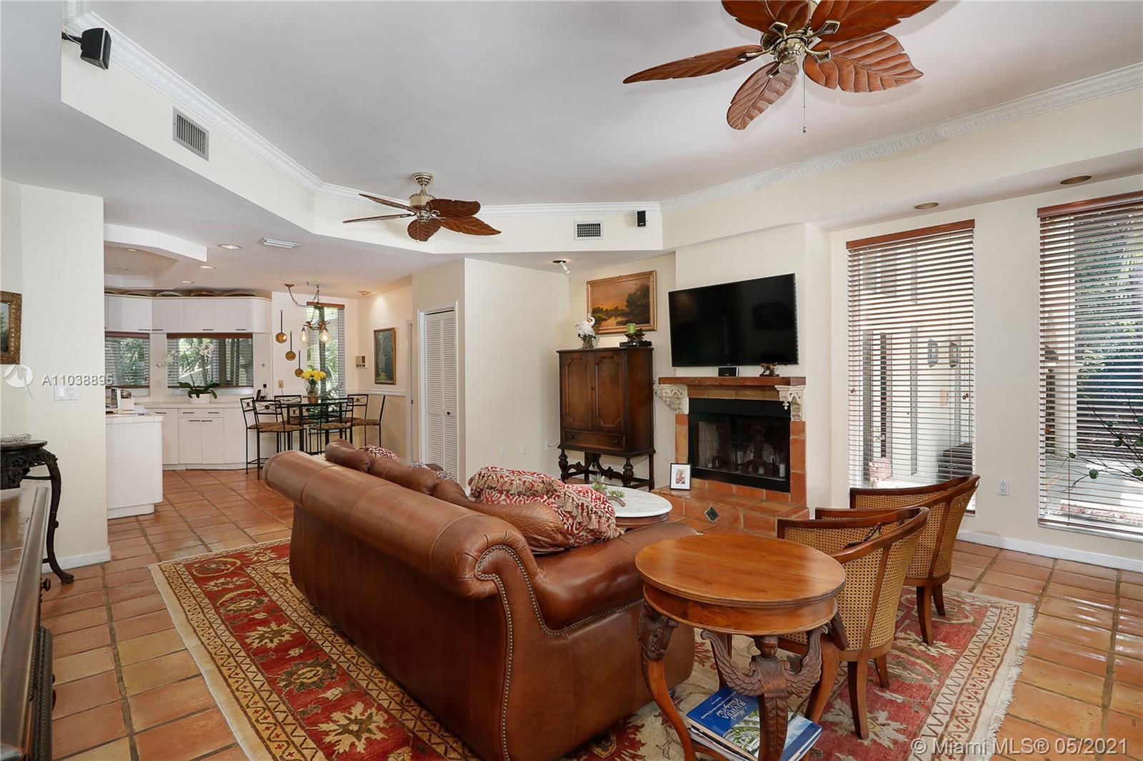 Tucked away on an ultra-lush 25,700 SF lot in guard-gated Hammock Lakes, this Art Deco-style 5 BR, 3.5 BA home is a wonderful opportunity! Designed for entertaining inside & out, it includes a foyer entry that leads to large formal liv & din rooms, the kitchen has gorgeous garden views, center island w/ gas range, & breakfast area, & is open to the spacious, sunlit fam rm. The formal & informal living spaces incl banks of French drs opening to covered patios, pool w/ fountains, & patio. 2nd floor primary suite is an oasis w/ sitting rm, large walk-in closets, marble BA w/ separate tub & shower, & private balcony. 2 more BRs upstairs & 2 down make this a true split plan. Sunset Elementary district, 2-car garage, laundry rm, roving security, circular drive, impact glass, & more!
