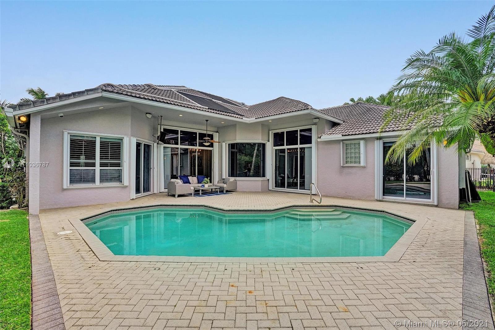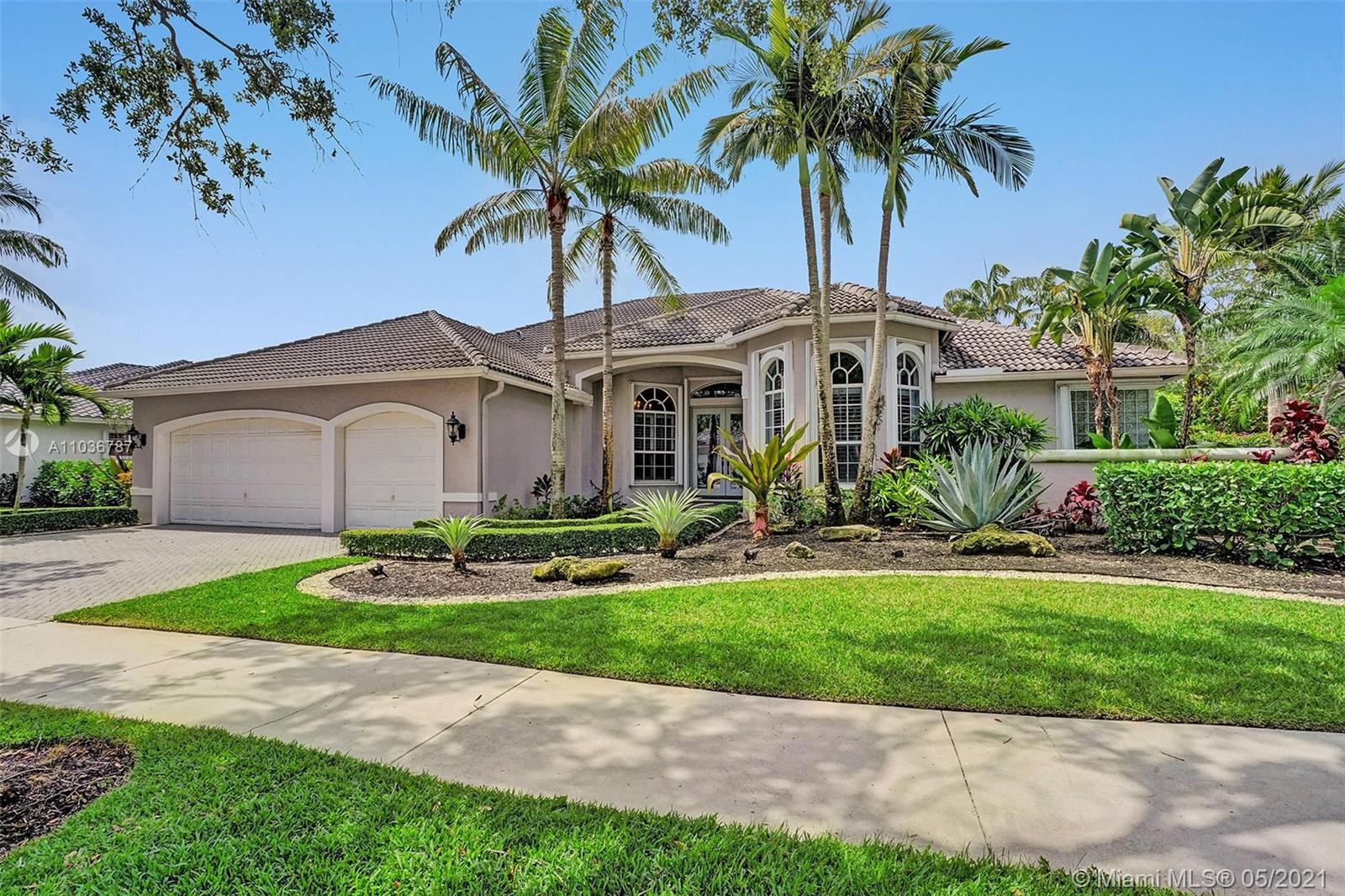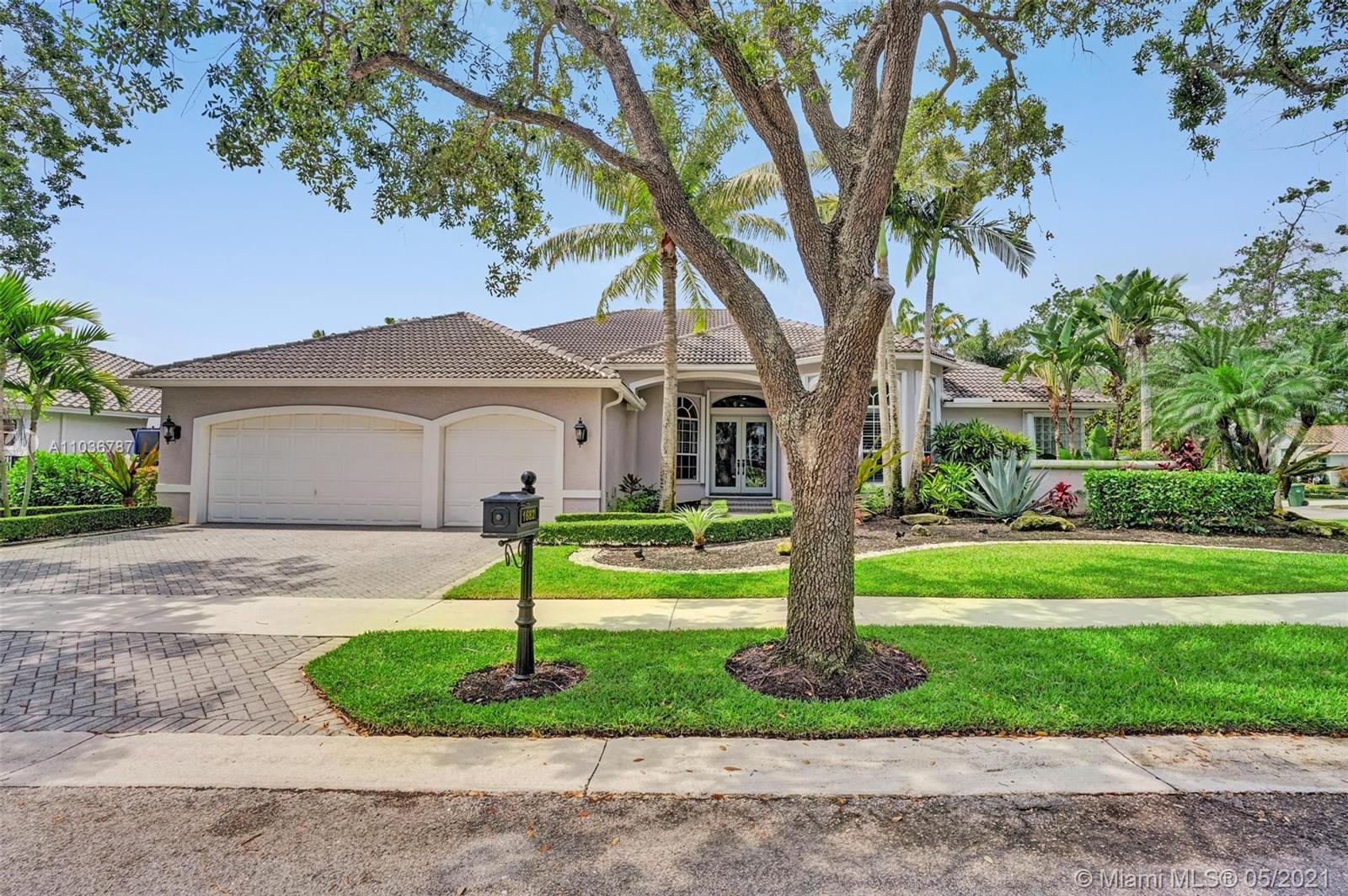 Beautiful 4 bedroom, 3 bathroom + a Den & Media Room! This large corner lot pool home is in the desirable gated community “The Islands”, in Weston, FL. Very spacious and bright, this residence offers 3,845 living area Sq.Ft, has an updated, open gourmet kitchen with stainless steel appliances and quartz countertops. Other features include a three car garage, porcelain "wood like" floors, lots of storage and walk-in closets, and sliding glass doors that lead to the covered patio and lushly landscaped backyard. The main suite accesses the patio and has views of the pool, along with two walk-in closets and a bathroom with dual sinks, separate tub, and shower. Live in one of the best school districts and be close to everything you need.