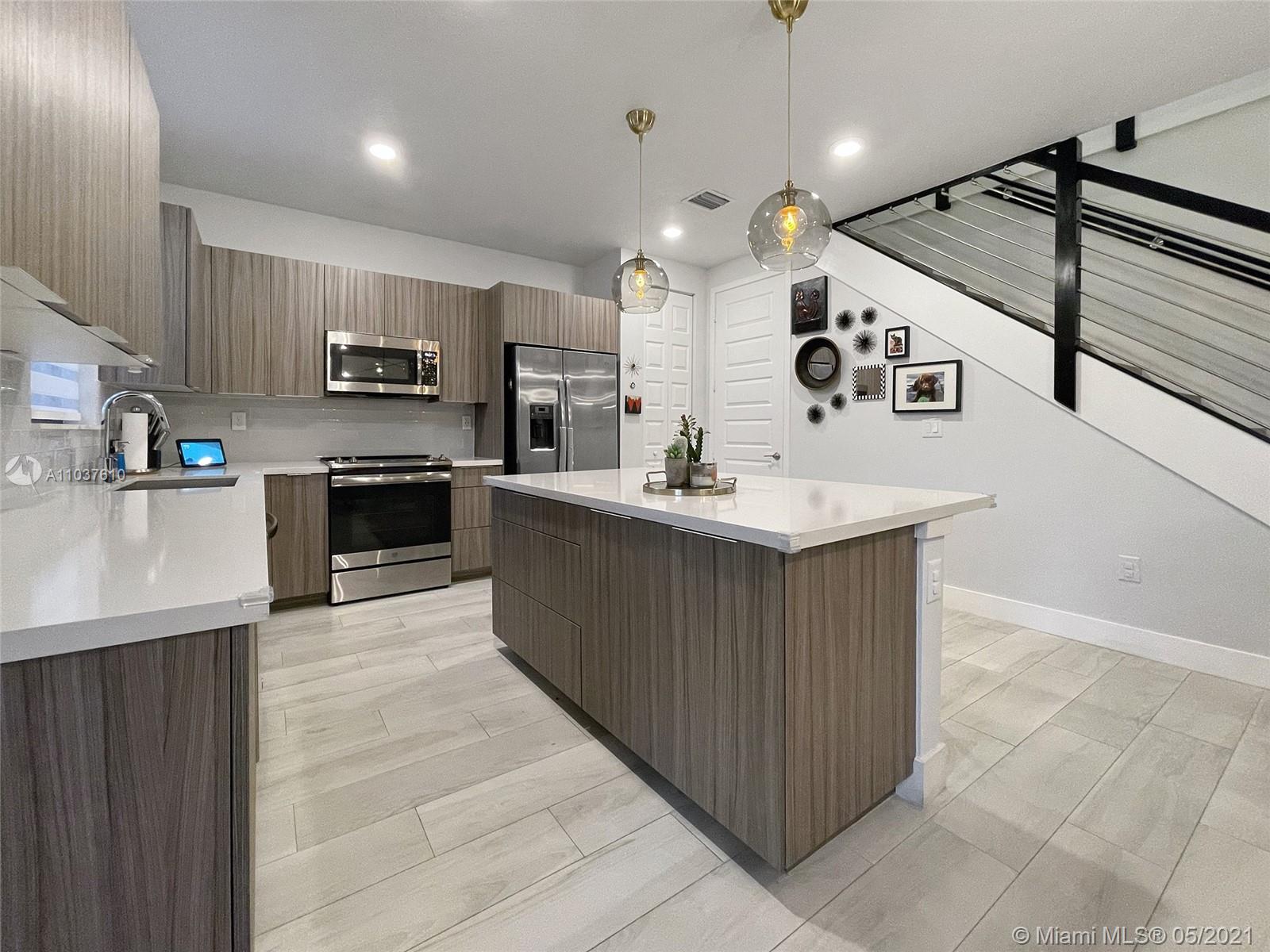 beautifully maintained townhome in the desired Summit at Park Central. Three bedrooms two full baths and one-half bath. Spanish tile throughout the first floor, laminate wood on stairs and second floor. Quartz countertop, Stainless Steel appliances, great pantry.Patio with pavers and artificial turf with 0 maintenance required - no grass to cut - Premium lot with no direct neighbors behind you!! Close to supermarkets, restaurants, shops, banks, schools, and airports. Included with the association you can enjoy the Grand Central Clubhouse with resort-like amenities, waterpark for the kids, amazing gym, sauna, playground for the kids, party room, billiard room, internet lounge, gathering room, with catering kitchen, tennis, soccer field, basketball courts, BBQ pavilion, huge pool and more!