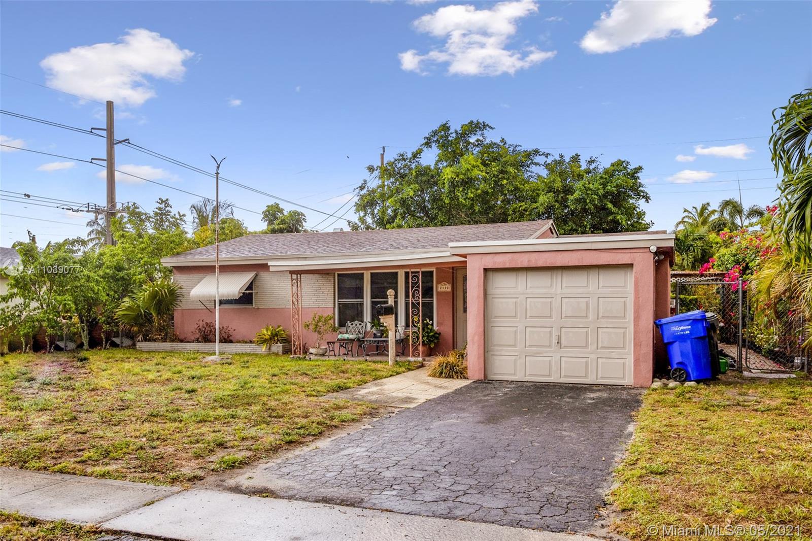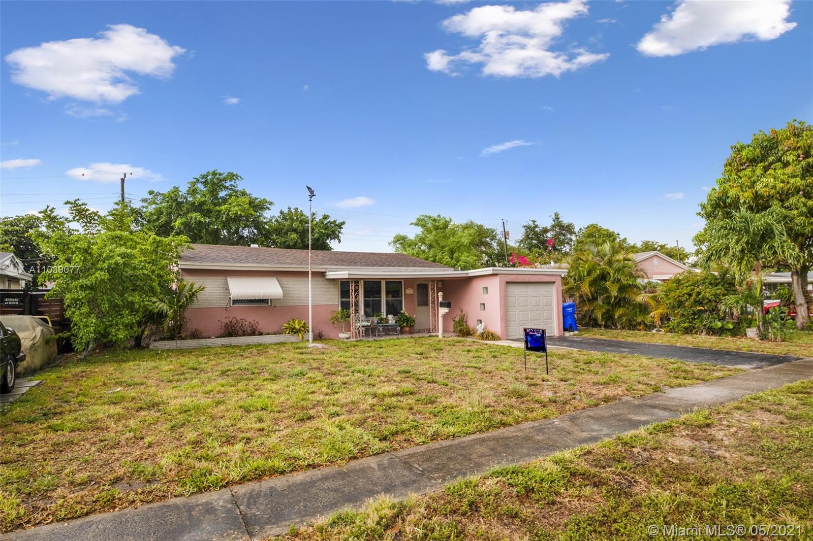 Great location to enjoy your new home. This 2 bedroom 1 bath home is ready for its new owners. It has terrazzo floor throughout and easy to take care of - It has a nice open Great Room with the Kitchen and Dining area to the back. There is a Florida room that takes you out back to the big fenced in yard for your family and pets. It also has a one car garage. This location is walking distance to restaurants, shopping centers, gyms and 5 minutes away from the Hard Rock Cafe and 15 minutes from the beach. Come check this one out.