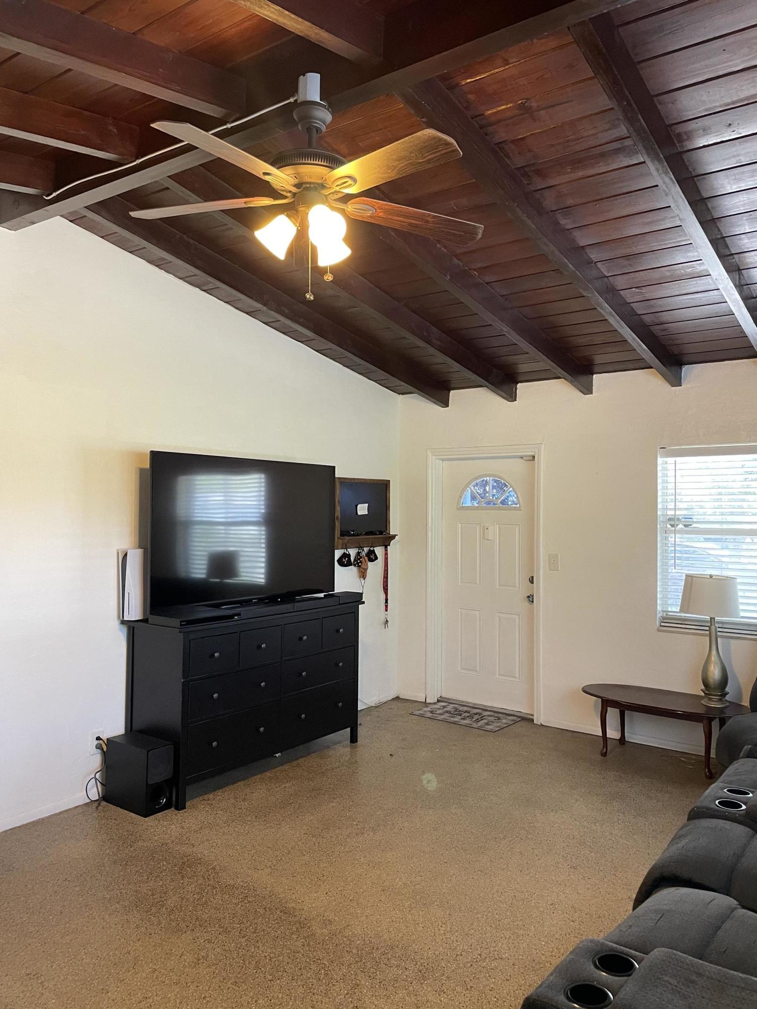 Beautiful 3 bedroom, 3 bathroom single family home with ''bonus room'' in the back. Freshly painted inside & out, this home has vaulted wood ceilings, terrazzo flooring, & textured wall finish all throughout. Kitchen offers granite counter tops & new stainless steel refrigerator. WASHER/DRYER on premises. Property is move-in ready. Oversized lot with paver driveway & paver patio provides ample parking for cars, trucks, boats, and trailers. Seller is flexible on closing timeframe & terms. Hurry to show this one, it should go fast!
