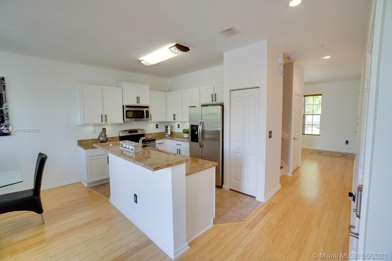 Luxury corner unit townhome with stunning water views. Watch the video! Over 2000 sqft of open and modern living space. Numerous impact windows. The open floor plan features a white kitchen with under cabinet lighting, stainless steel appliances, and granite countertops. Second floor has been tiled all throughout with gorgeous wood plank style tile. Unbelievable large master bedroom portrays dazzling water views. Master bathroom has been exquisitely remodeled with dual sinks, black marble countertops, walk in shower and rain head shower system, large tub, and beautiful Spanish style flooring. Two additional bedrooms. This townhome definitely feels like a two story single family home. Original outdoor AC unit was replaced with bigger unit to provide for better efficiency. Won't last!