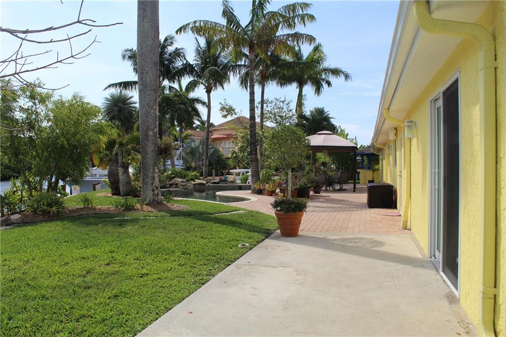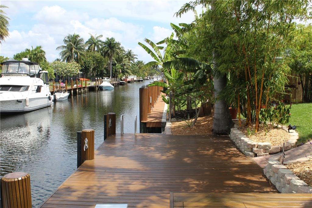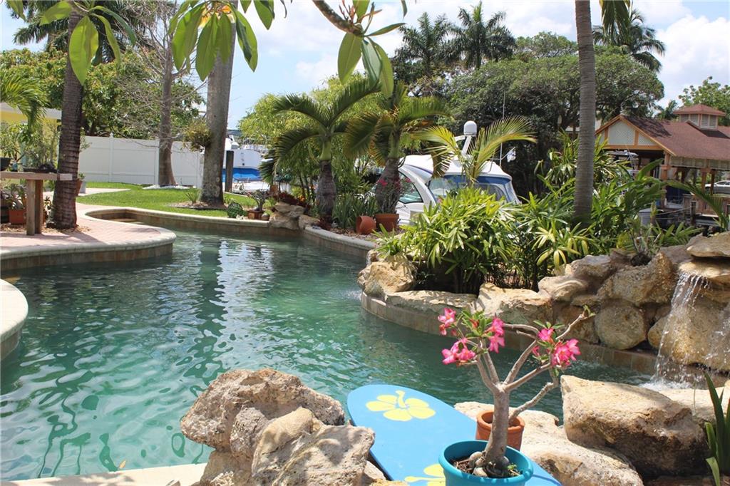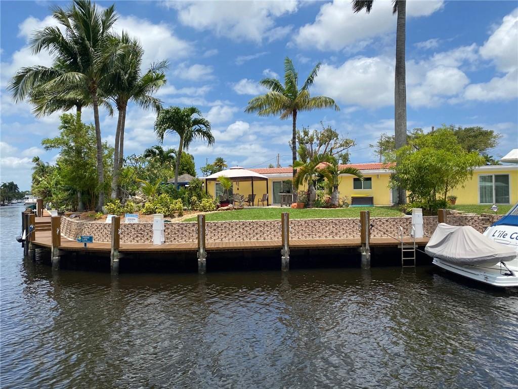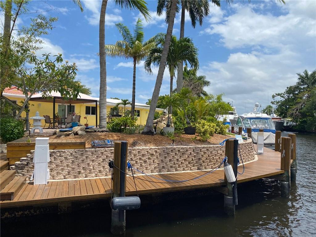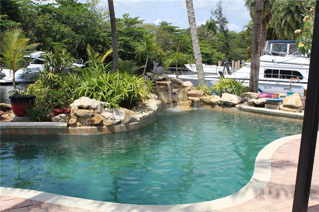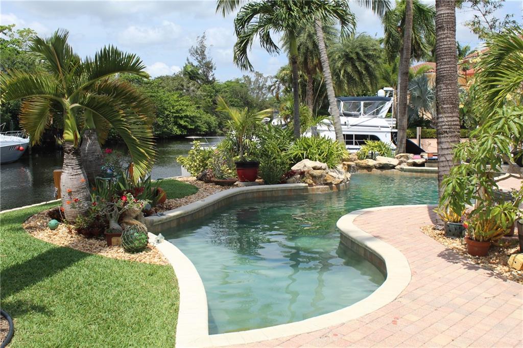 Paradise awaits! Premier point lot in Lauderdale Isles on cul-de-sac w/Apx 160'wff. Upgraded elevation, portico entry, koi pond, 2-car garage with attic/stairs, amazing Ldscpg w/separate H20 meter, underground electric, auto sprinklers, paver driveway, lg patio, custom lagoon style pool w/waterfalls. Apx 143' of dock with 3 elec/water trees, 12x22 upper deck, attached gazebo & util shed, exterior lighting, etc. Interior substantially upgraded. Rear master suite w/luxurious ensuite bathroom, additional bonus rm/ofc and amazing river views. Watch boats go by from this luxurious estate with sweeping 180 degree views of river, while providing privacy and tranquility. Minutes away from the FLL Int'l airport, downtown, schools, shopping, beaches and direct ocean access by boat via the New River.